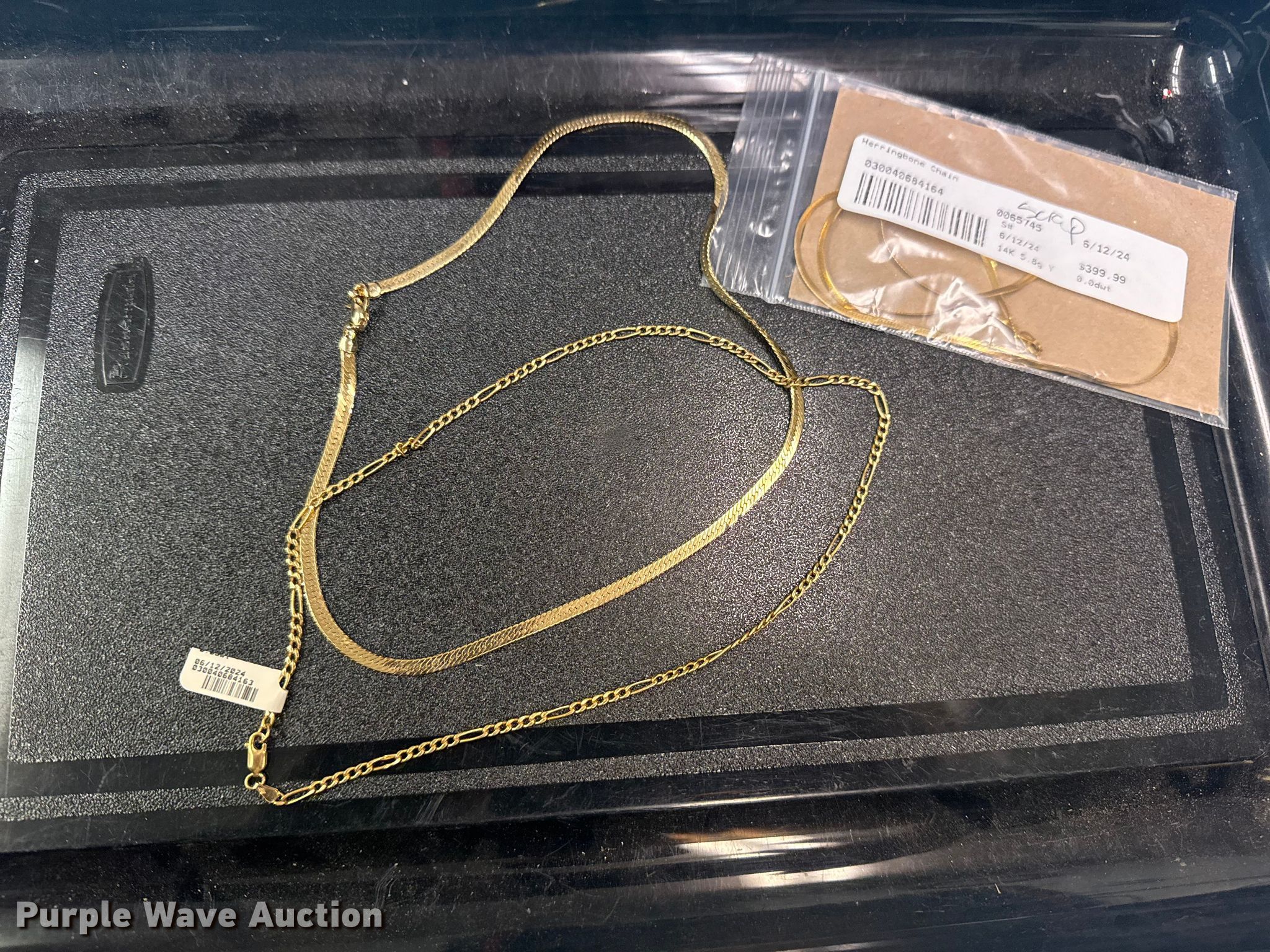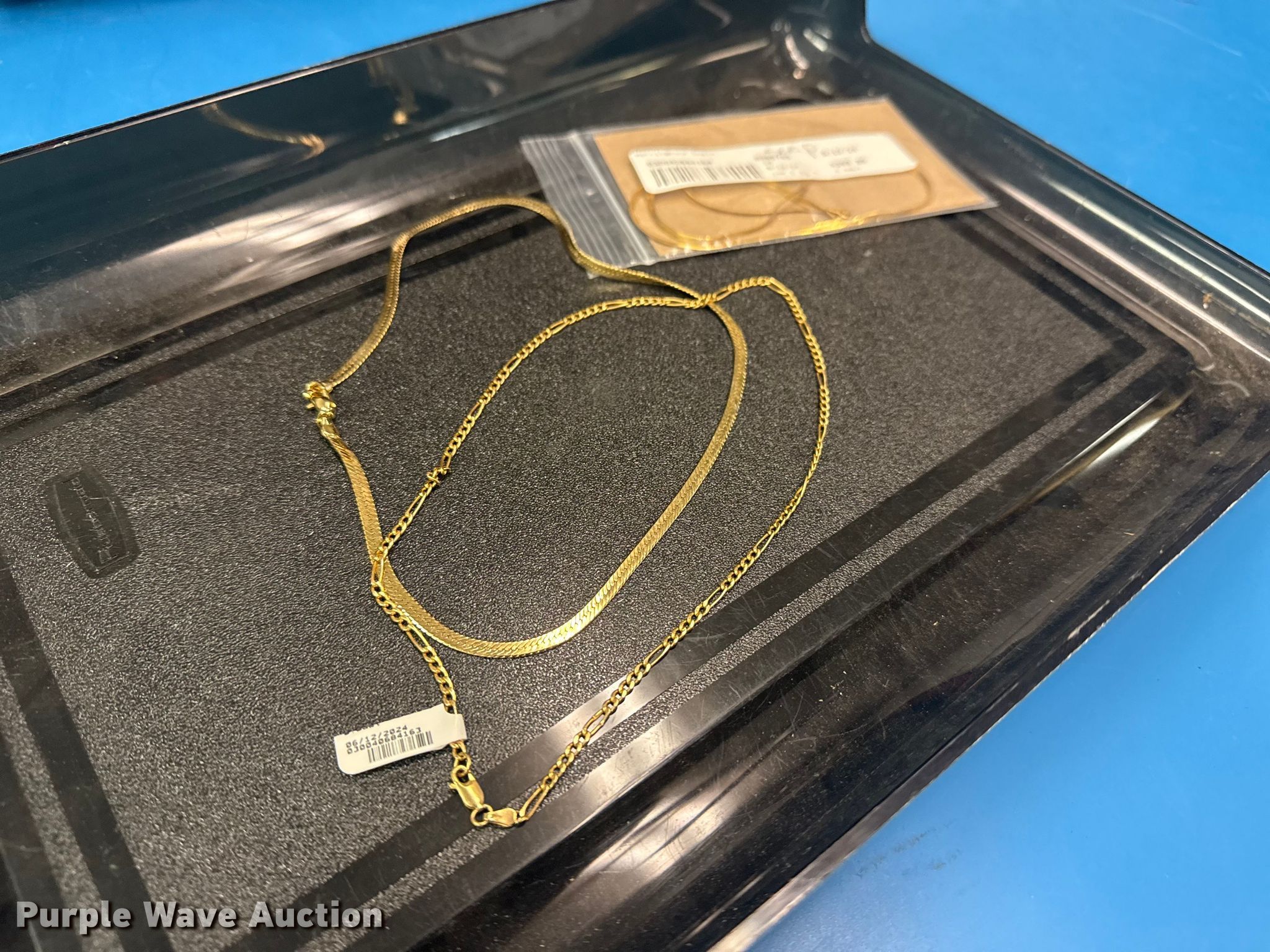 Purple Wave is selling a used Jewelery in Oklahoma. This item is a (3) 14k gold necklaces with the following: Approx. 19.5 grams, Unit #: 2044