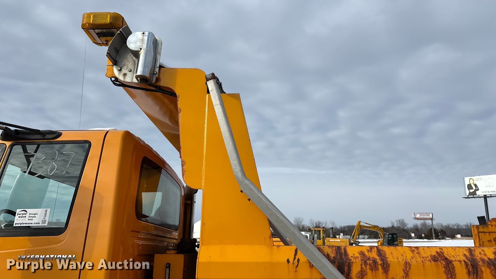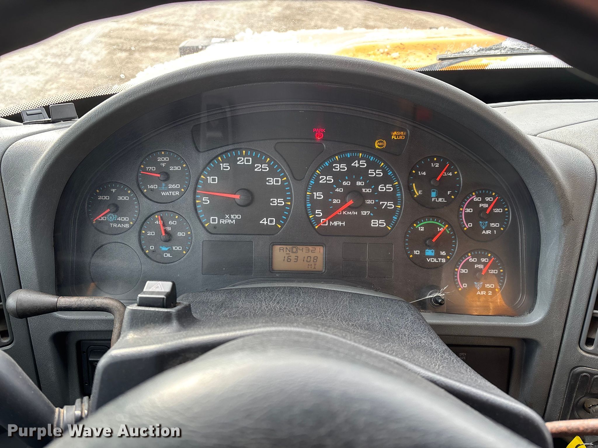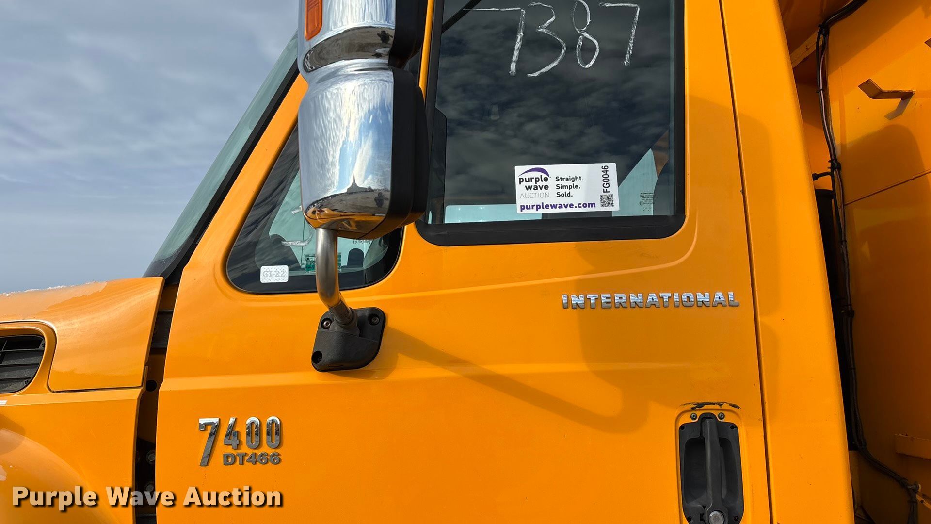 2006 International 7400 dump truck. Miles: 163,108 on odometer, Hours: 11,474 on meter, VIN: 1HTWDAAR36J324714, Unit #: 7387. Engine International, Displacement: 7.6L, Cylinders: 6, Fuel type: Diesel. Transmission Automatic. Chassis Axles: Single, Suspension: Spring, Brakes: Air, Front mount PTO. Interior AC, Heat, Heated mirrors, Power windows. Features Bed Dump bed, Length: 10', Width: 96", Side height: 24", Bed type: Steel, Bed vibrator, Roll tarp, Ram: Single, End gate: Air operated. Tires Front: 315/80R22.5, Rear: 11R22.5. Notes Tailgate issues, latch stuck, On spot chain parts missing, Wire issues, loose, Bed vibrator issues, Dash warning indicator: ABS, Jump start required during on-site data collection. Missouri title. Title distribution may be delayed up to 14 days from verification of funds. New Bloomfield, MO 65063