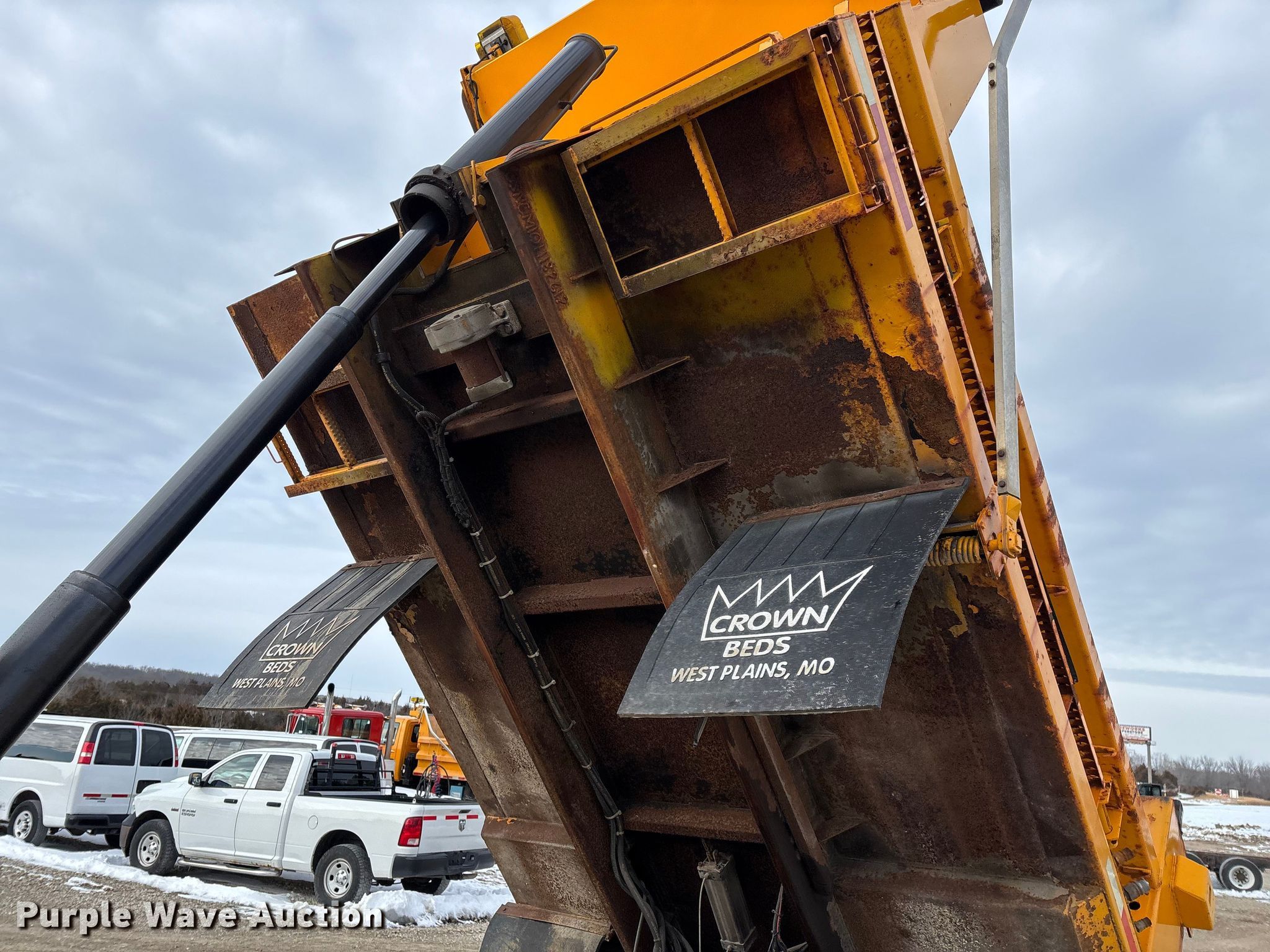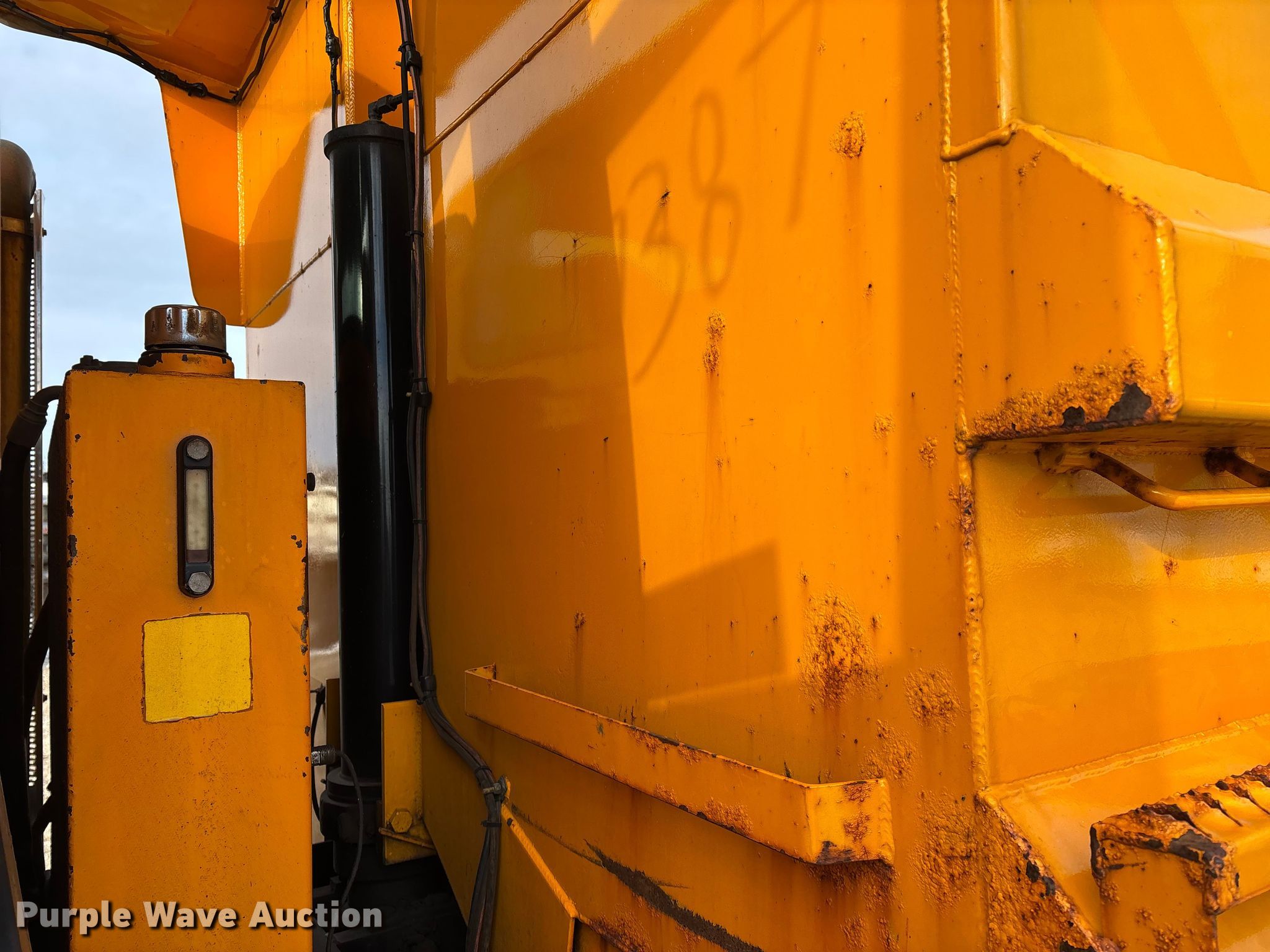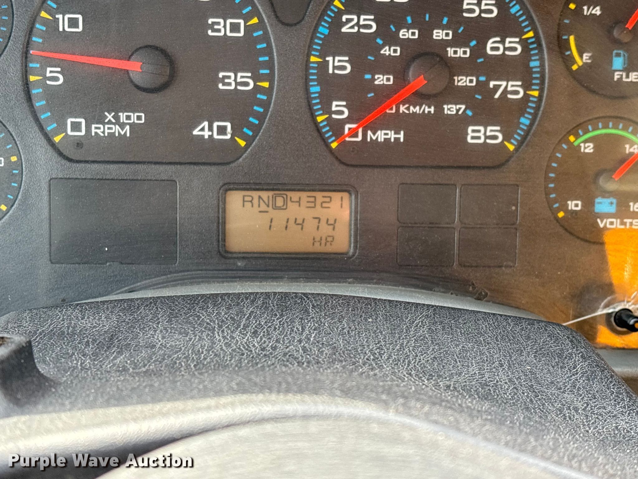 2006 International 7400 dump truck. Miles: 163,108 on odometer, Hours: 11,474 on meter, VIN: 1HTWDAAR36J324714, Unit #: 7387. Engine International, Displacement: 7.6L, Cylinders: 6, Fuel type: Diesel. Transmission Automatic. Chassis Axles: Single, Suspension: Spring, Brakes: Air, Front mount PTO. Interior AC, Heat, Heated mirrors, Power windows. Features Bed Dump bed, Length: 10', Width: 96", Side height: 24", Bed type: Steel, Bed vibrator, Roll tarp, Ram: Single, End gate: Air operated. Tires Front: 315/80R22.5, Rear: 11R22.5. Notes Tailgate issues, latch stuck, On spot chain parts missing, Wire issues, loose, Bed vibrator issues, Dash warning indicator: ABS, Jump start required during on-site data collection. Missouri title. Title distribution may be delayed up to 14 days from verification of funds. New Bloomfield, MO 65063