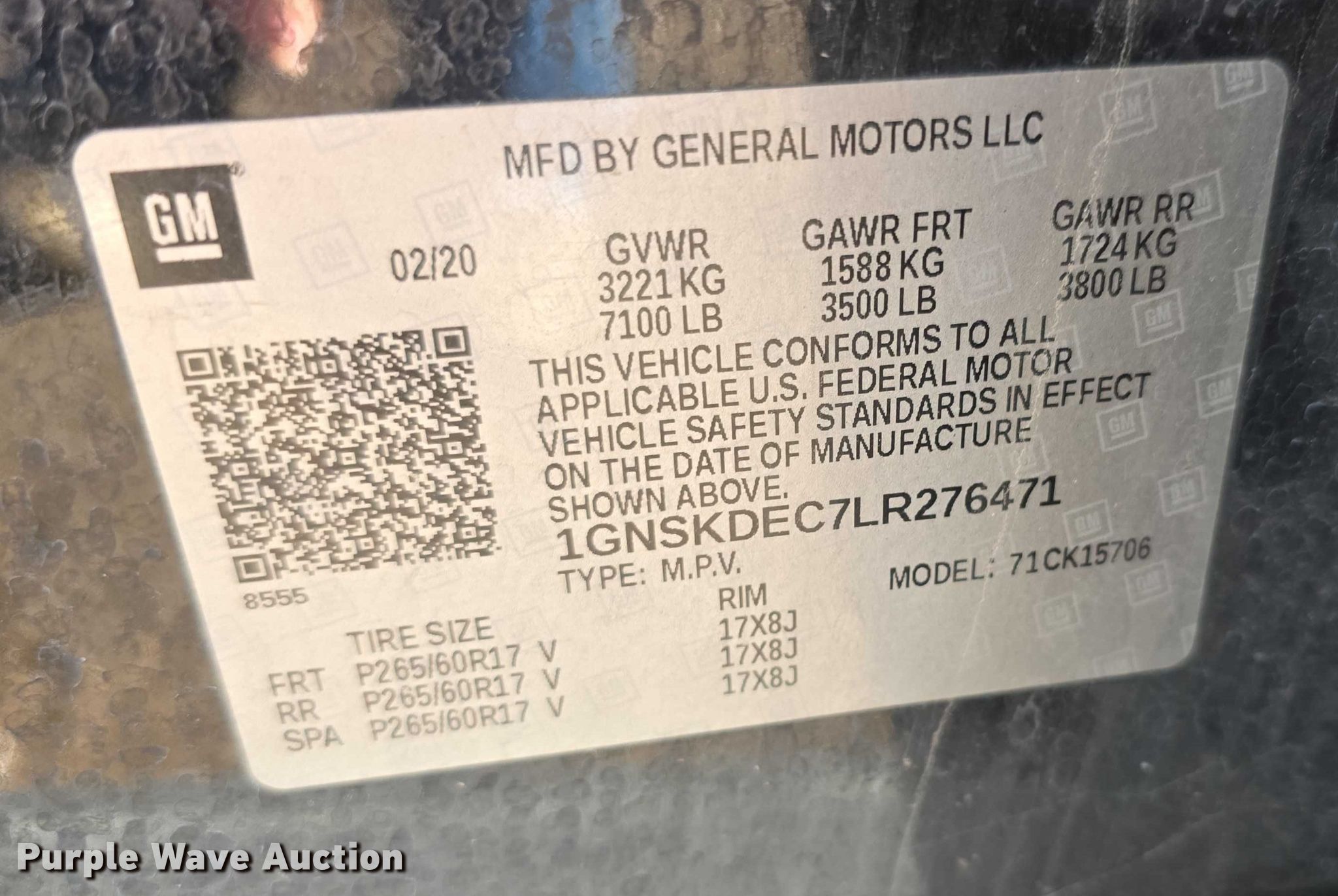 - VIN: 1GNSKDEC7LR276471