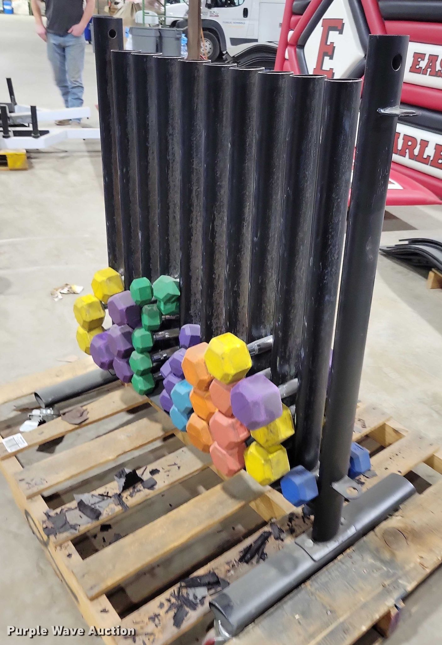 Purple Wave is selling a used Sporting Goods in Iowa. This item is a Weight rack with the following: Weights