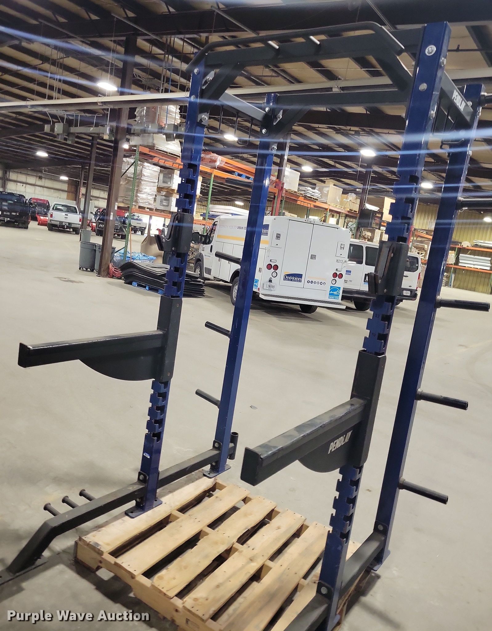 Purple Wave is selling a used Sporting Goods in Iowa. This item is a Pendlay squat rack with the following: Pendlay squat rack. Des Moines Public Schools. Des Moines, IA 50316