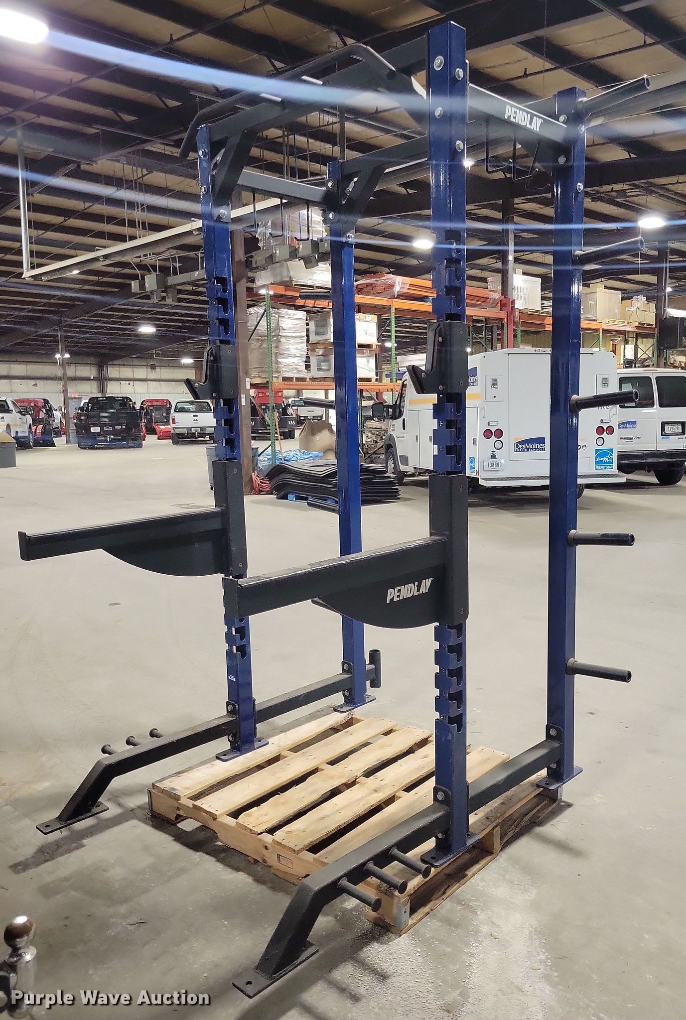 Purple Wave is selling a used Sporting Goods in Iowa. This item is a Pendlay squat rack with the following: Pendlay squat rack. Des Moines Public Schools. Des Moines, IA 50316