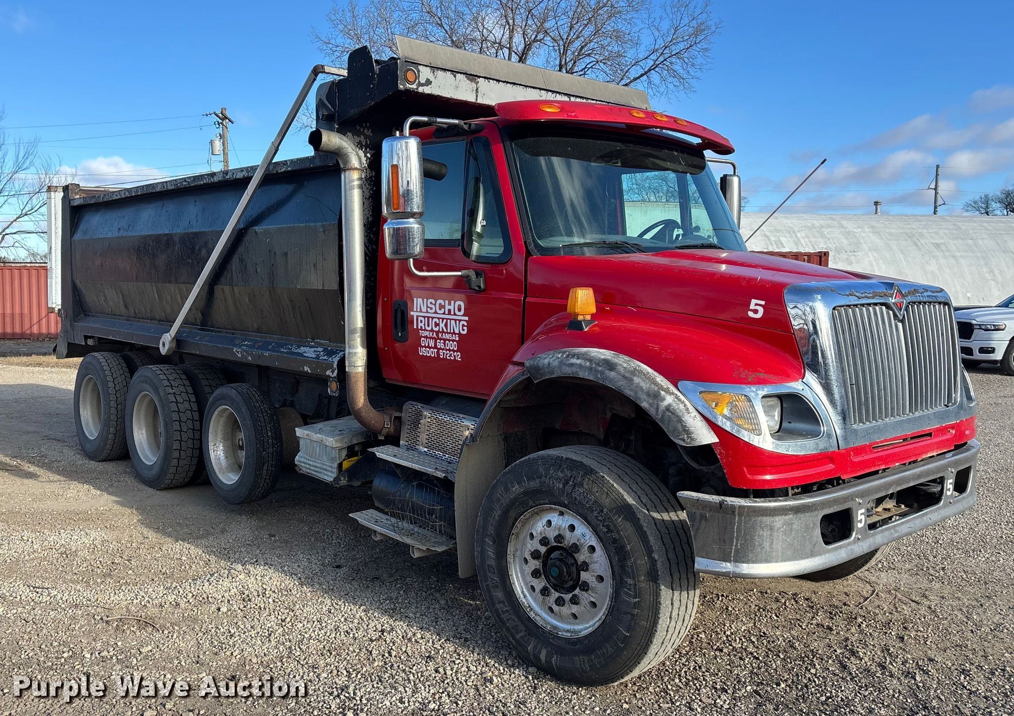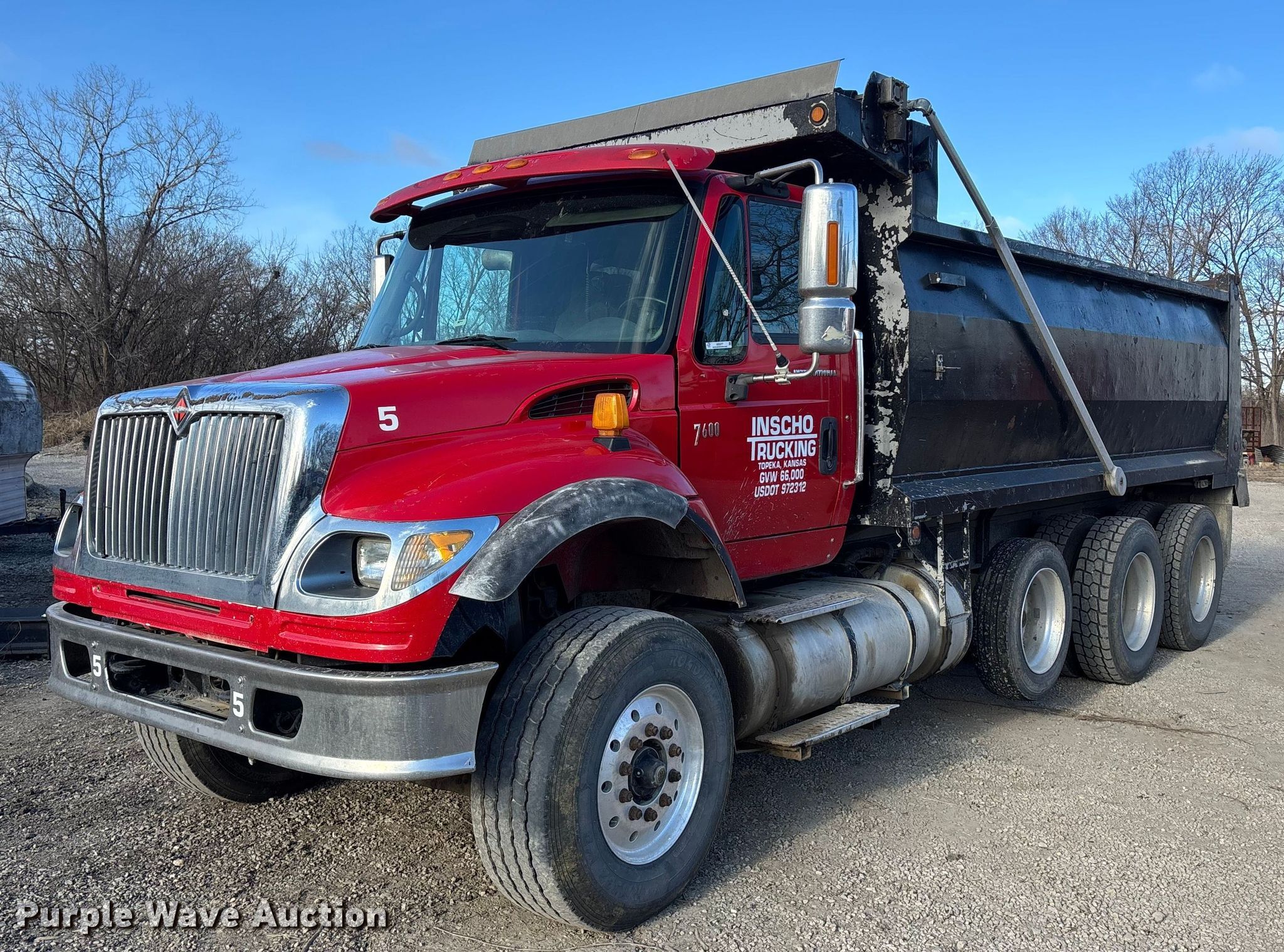 2005 International 7600 dump truck. An erroneous bid was placed in the last moments of bidding on this asset in our February 26 auction. At Purple Wave's discretion this asset has been moved here to allow a natural conclusion to the bidding. Miles: 738,361 on odometer, Hours: 34,345 on meter, Miles or hours may vary, unit still in use, VIN: 1HTWYSBTX5J153365. Engine Caterpillar C13 Acert, Displacement: 12.5L, Cylinders: 6, Fuel type: Diesel, Engine brake. Transmission Eaton Fuller, Manual, Speed: 8. Chassis Axles: Triple, Pusher axle, Differential lock: Inter-axle, Suspension: Spring over walking beam, Brakes: Air, PTO, GVWR: 86,000 lbs FAWR: 20,000 lbs, RAWR: 23,000 lbs, Lift axle GAWR: 20,000 lbs. Interior AC, Heat, Heated mirrors, Power windows, Cruise control. Features Bed Dump bed, Summerset Ts20517, Length: 17', Width: 8', Side height: 54", Bed type: Steel, Roll tarp, End gate: Air operated. Tires Front: 385/65R22.5, Rear: 11R24.5, Lift axle: 255/70R22.5. Notes Dash warning indicator: Check engine, Non-operational fuel gauge. Kansas title. Title distribution may be delayed up to 30 days from verification of funds. Inscho Trucking. Topeka, KS 66607