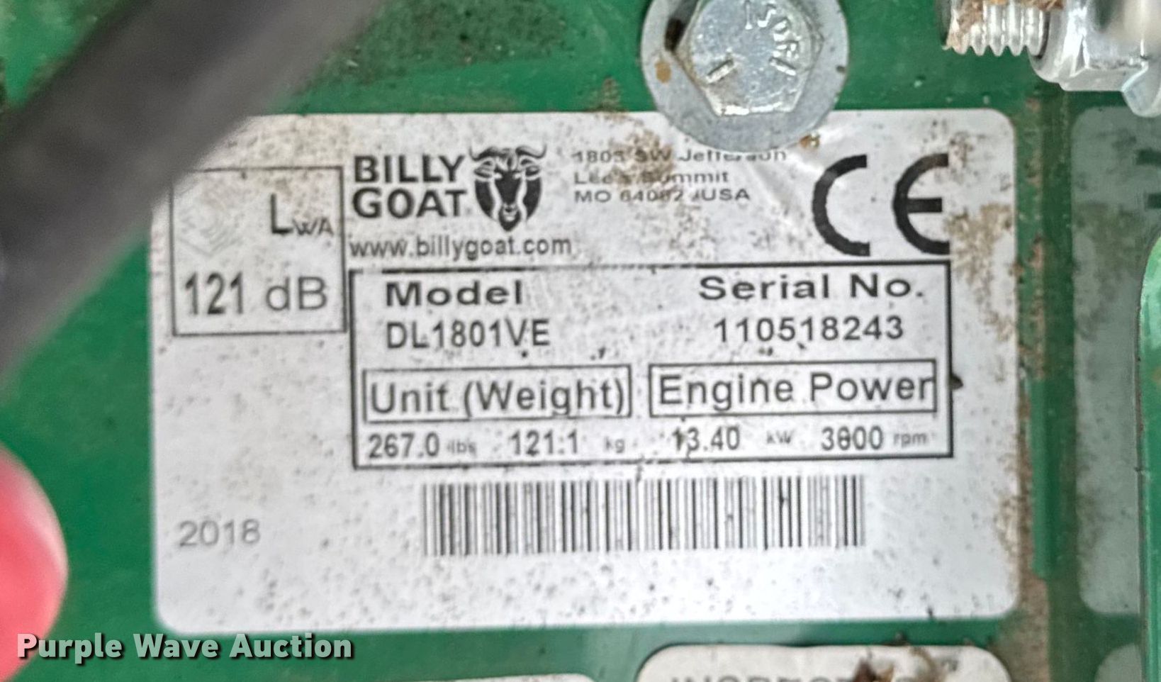 Take a look at this used Billy Goat DL1801VE debris vacuum being sold on March 3rd, 2026 in the Tuesday March 03 Government Auction made by Billy Goat. Take a look at all of the item information below or take a look at similar auctions for Lawn and Garden.