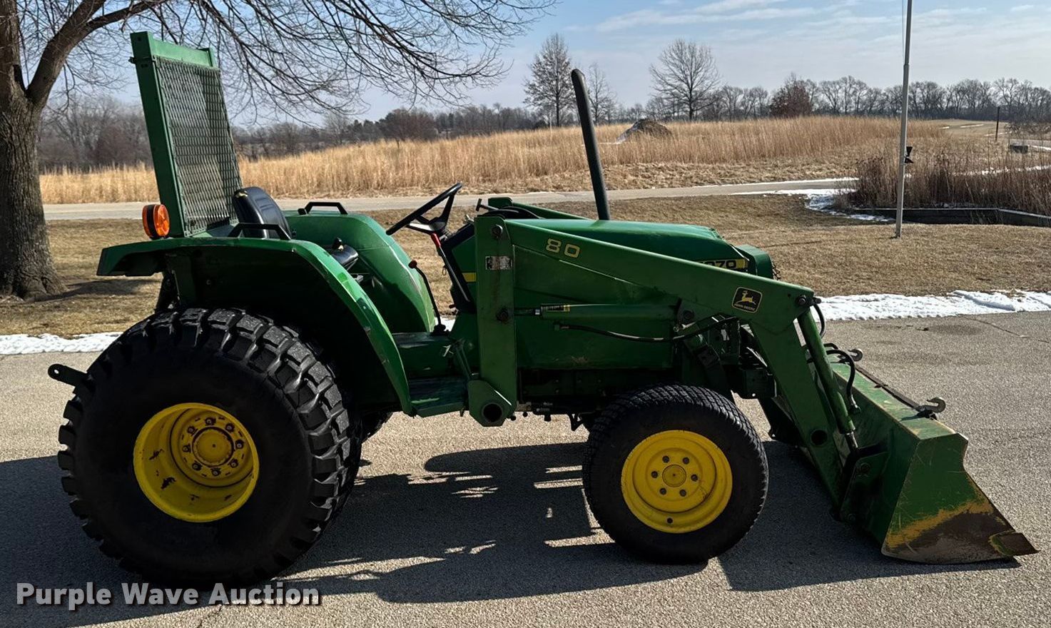 John Deere 1070 MFWD tractor. Hours: 1,979 on meter, Hours: Unknown, Serial: M01070A002408. Engine John Deere 4TN84-RJX, Serial: 002502, Displacement: 1.9L, Cylinders: 4, Fuel type: Diesel. Transmission 9F - 3R, Differential lock. Features PTO: 540, Three point Top link, Rear: 1, Loader John Deere 80, Controls: Joystick, Bucket Width: 62".. Tires Front: 27x10.5-15, Rear: 21.5L-16SL. Scott County Conservation. Long Grove, IA 52756