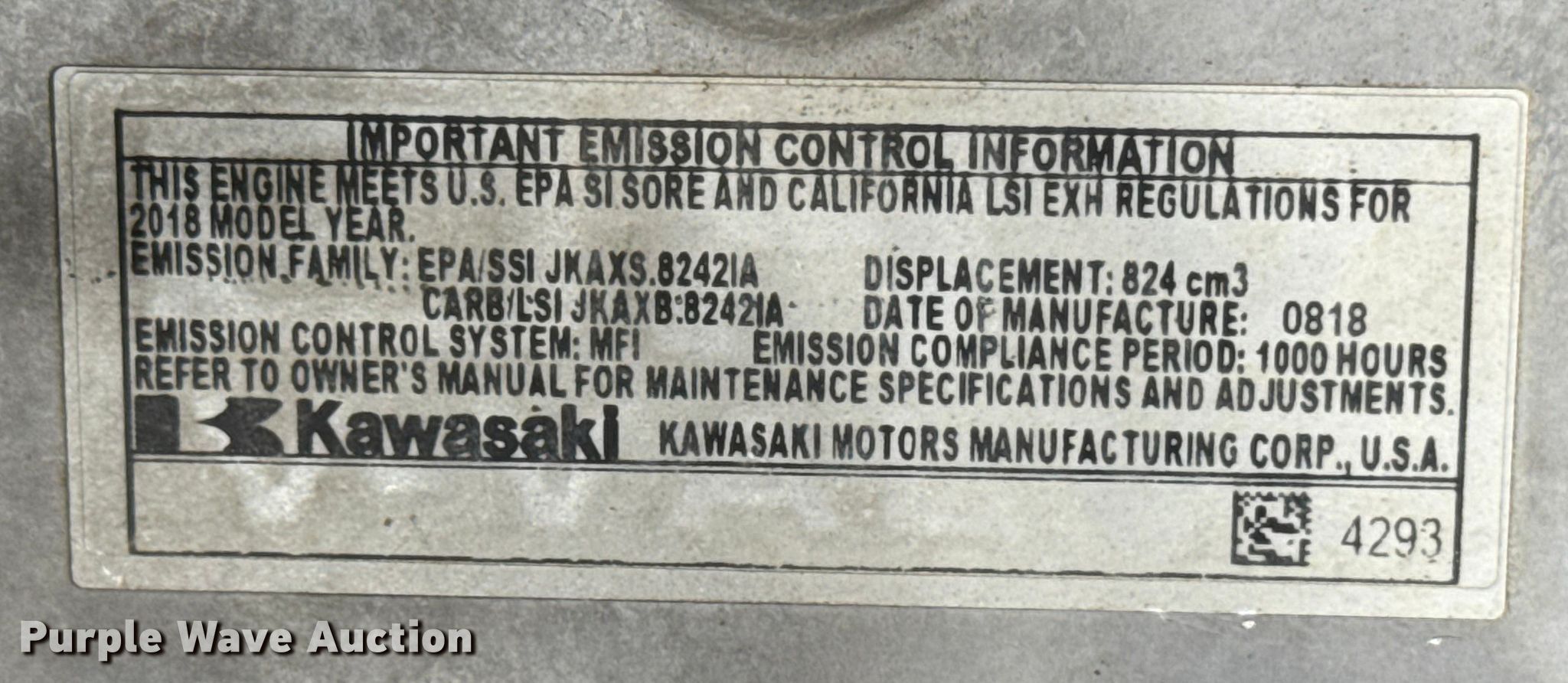 Ventrac 4500P lawn mower. Hours: 1,504 on meter, Cutting width: 83", Serial: AJ09044. Engine Kawasaki, Displacement: 824cm3, Cylinders: 2, Fuel type: Gas. Transmission Hydrostatic. Chassis Four wheel drive, PTO. Features Counter weights, Rear drawbar. Tires Size: AT22x12-8. Scott County Conservation. Long Grove, IA 52756