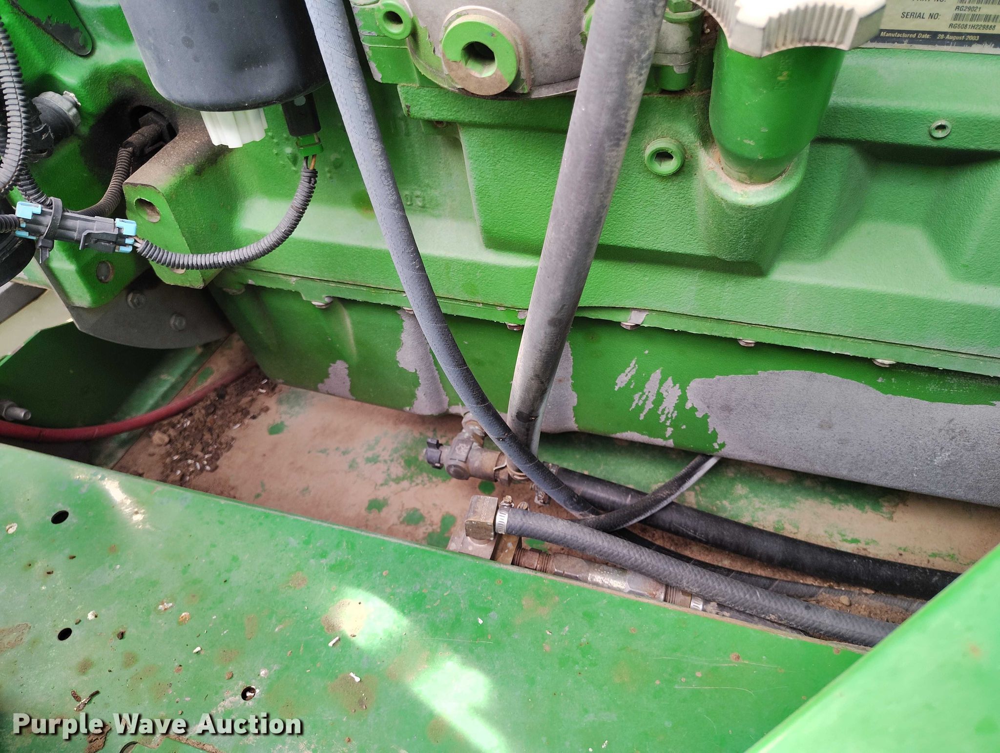 2004 John Deere 9660 STS combine. Engine hours: 4,898 on meter, Separator hours: 3,434 on meter, Serial: H09660S705755. Engine John Deere 6081HH013, Cylinders: 6, Fuel type: Diesel. Transmission Hydrostatic, 3F - 3R. Operators station AC, Heat, John Deere Green Star, Display. Features Operator manual, Single point header coupler, Feederhouse: Variable speed, Reverser, Concaves: Round, Small wire, Chaff spreader, Bin: Extensions. Tires Front: 20.8R38, Rear: 18.4-26. Fritzler Farms. Flagler, CO 80815