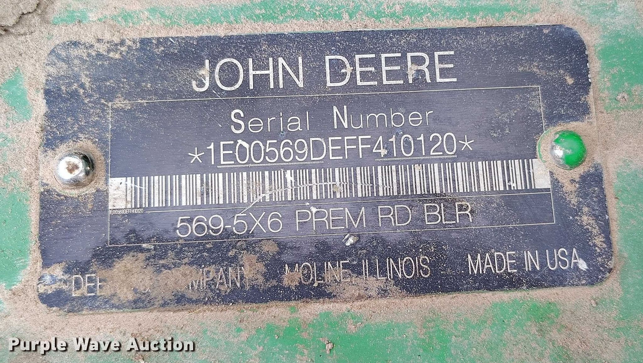 Purple Wave is selling a used Round Baler in Colorado. This item is a John Deere 569 Premium round baler with the following: Bale count: 17,401, Serial: 1E00569DEFF410120