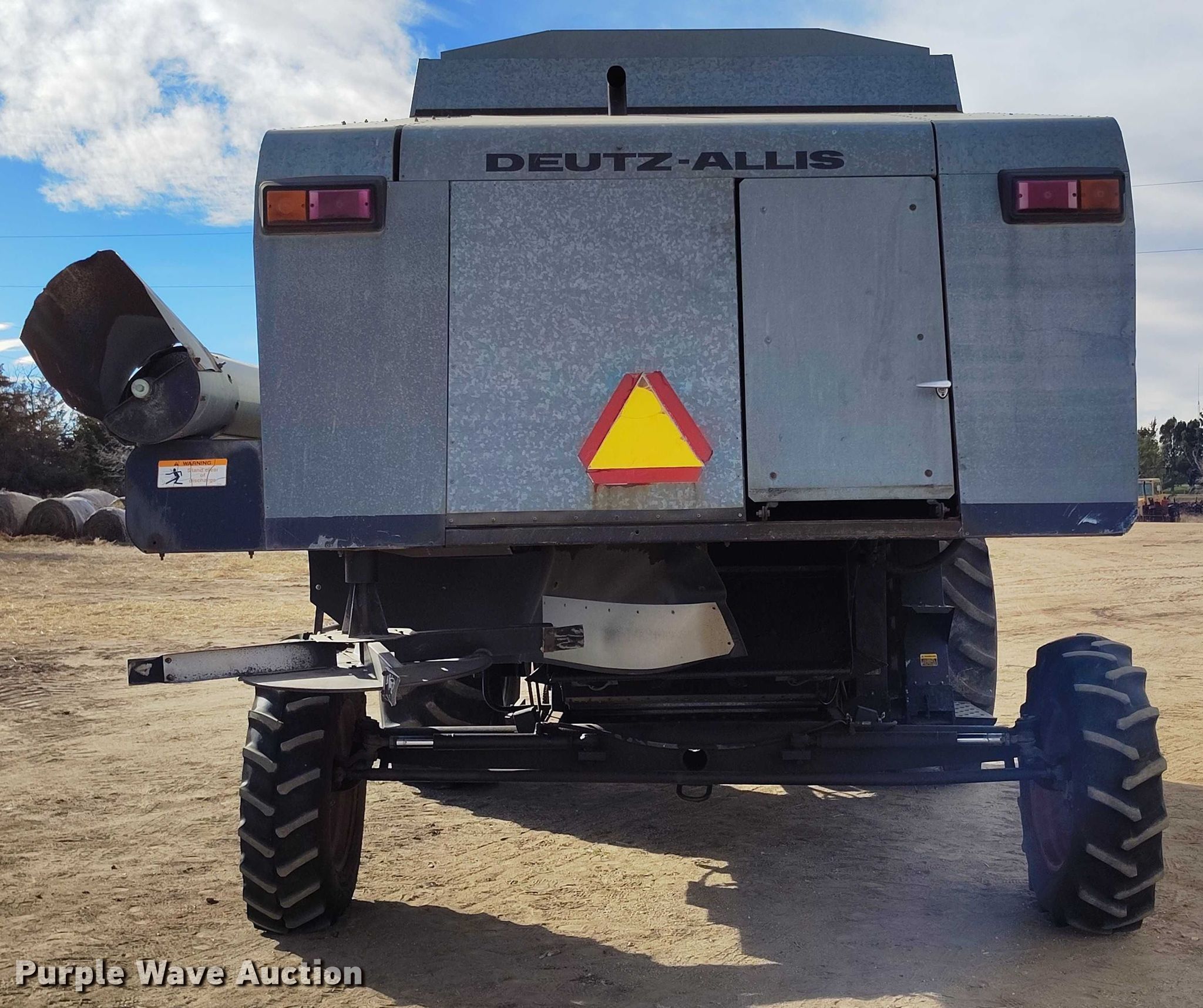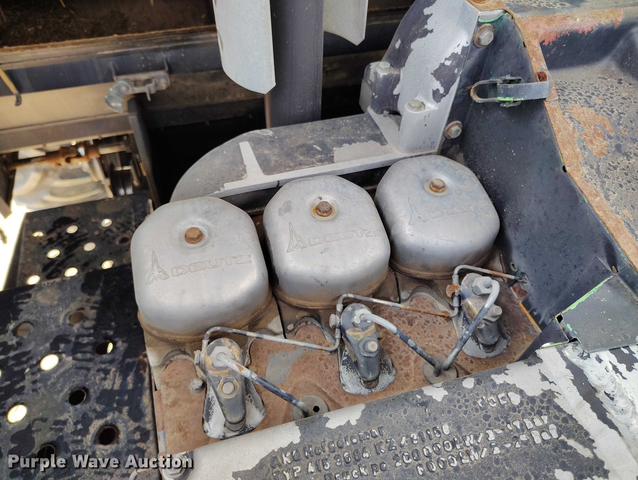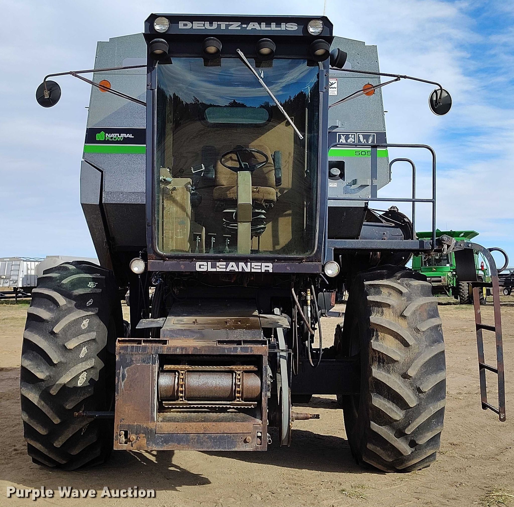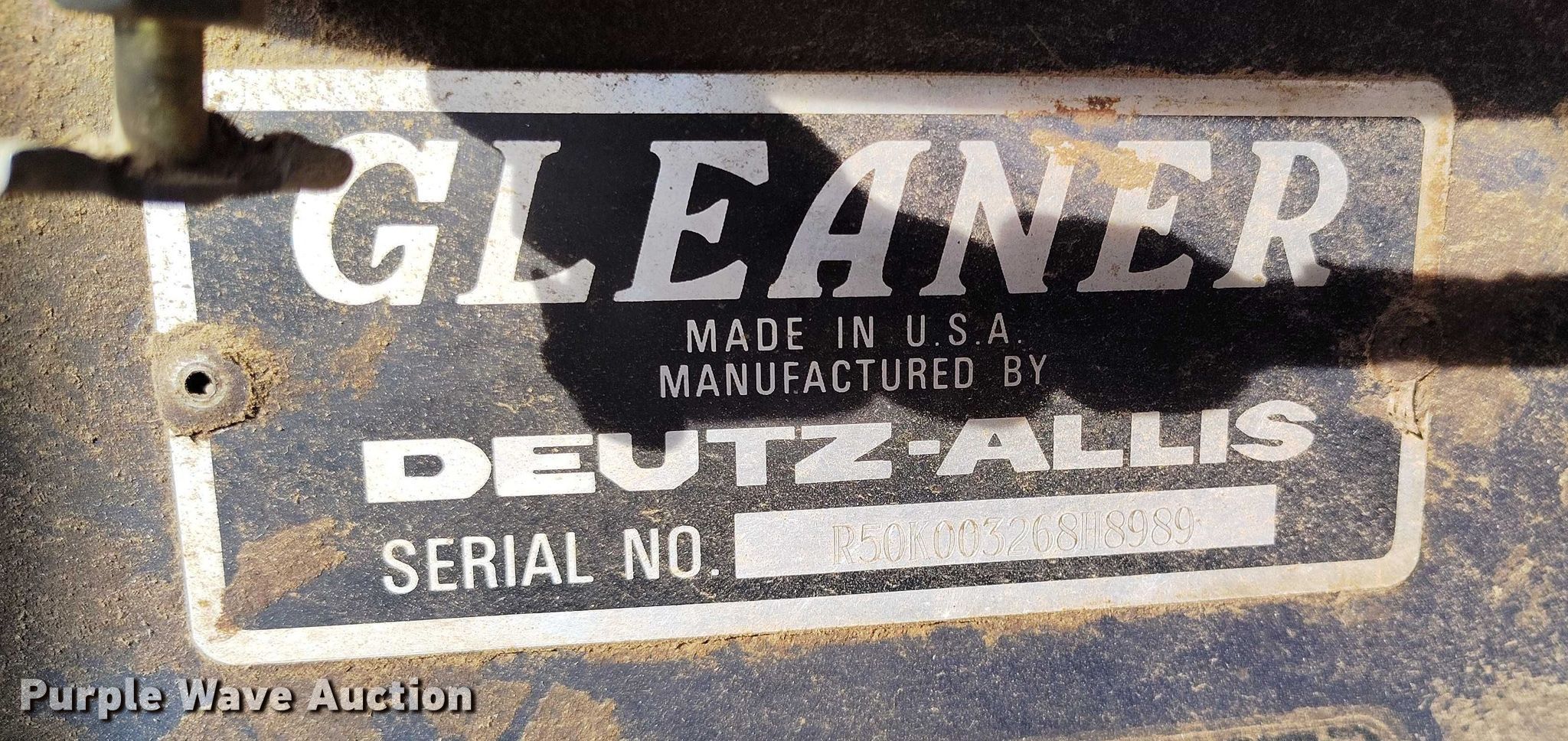 Gleaner R50 combine. Engine hours: 4,815 on meter, Separator hours: 3,477 on meter, Serial: R50K003268H8989. Engine Deutz Air Diesel KHD, Cylinders: 6, Fuel type: Diesel. Transmission Hydrostatic, 4F - 4R. Operators station AC, Heat. Features Feederhouse: Reverser, Concaves: Small wire, Unloading auger length: 14'. Tires Front: 24.5-32, Rear: 12.4-25. Notes Possible AC issues, needs recharged, Auger hydraulic issues, snap ring needs replaced. Fritzler Farms. Flagler, CO 80815