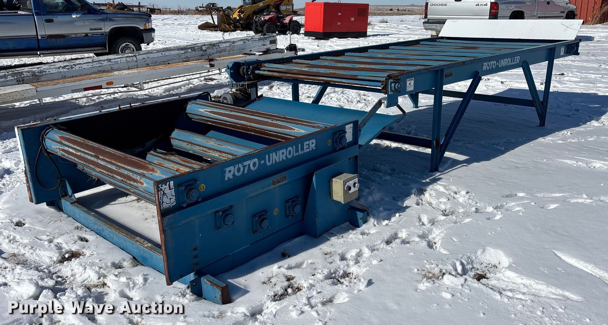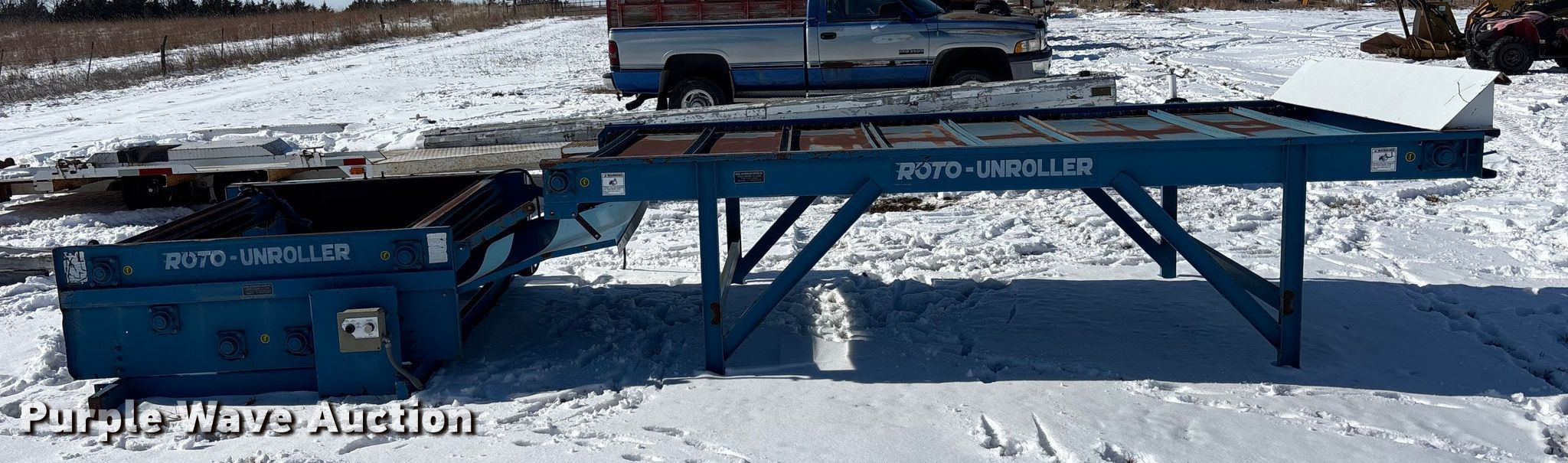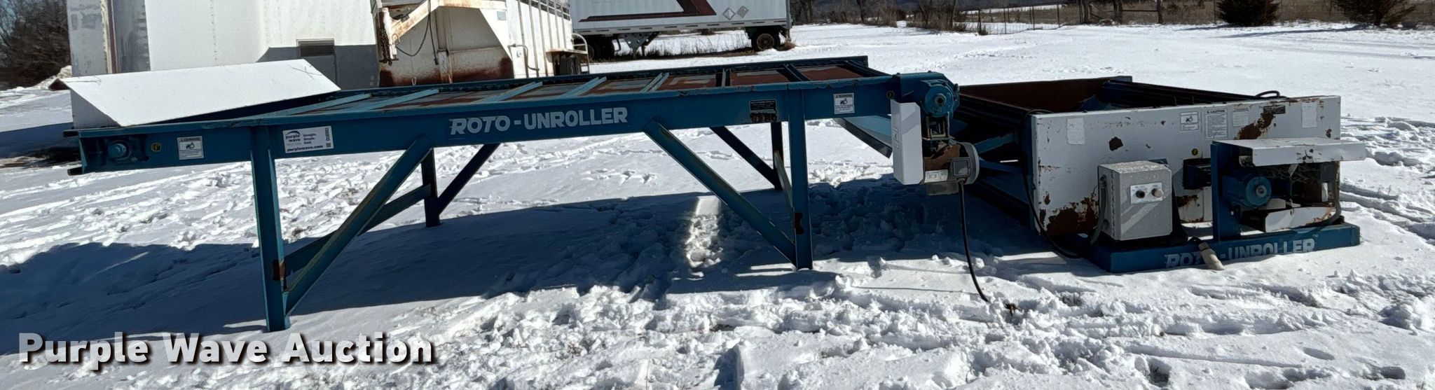 Purple Wave is selling a used Hay Equip. Attach. in Kansas. This item is a Roto round baler unroller with the following: Length: 12', Width: 64", Forward Reverse, Speed: 1, Volts: 220, Phase: Single