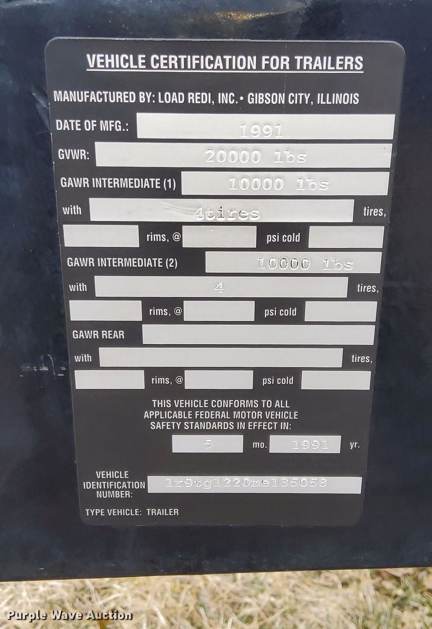 Purple Wave is selling a used Grain Cart or Gravity Wagon in Illinois. This item is a 1991 Load Redi gravity wagon with the following: VIN: 1R9TG1220ME135058