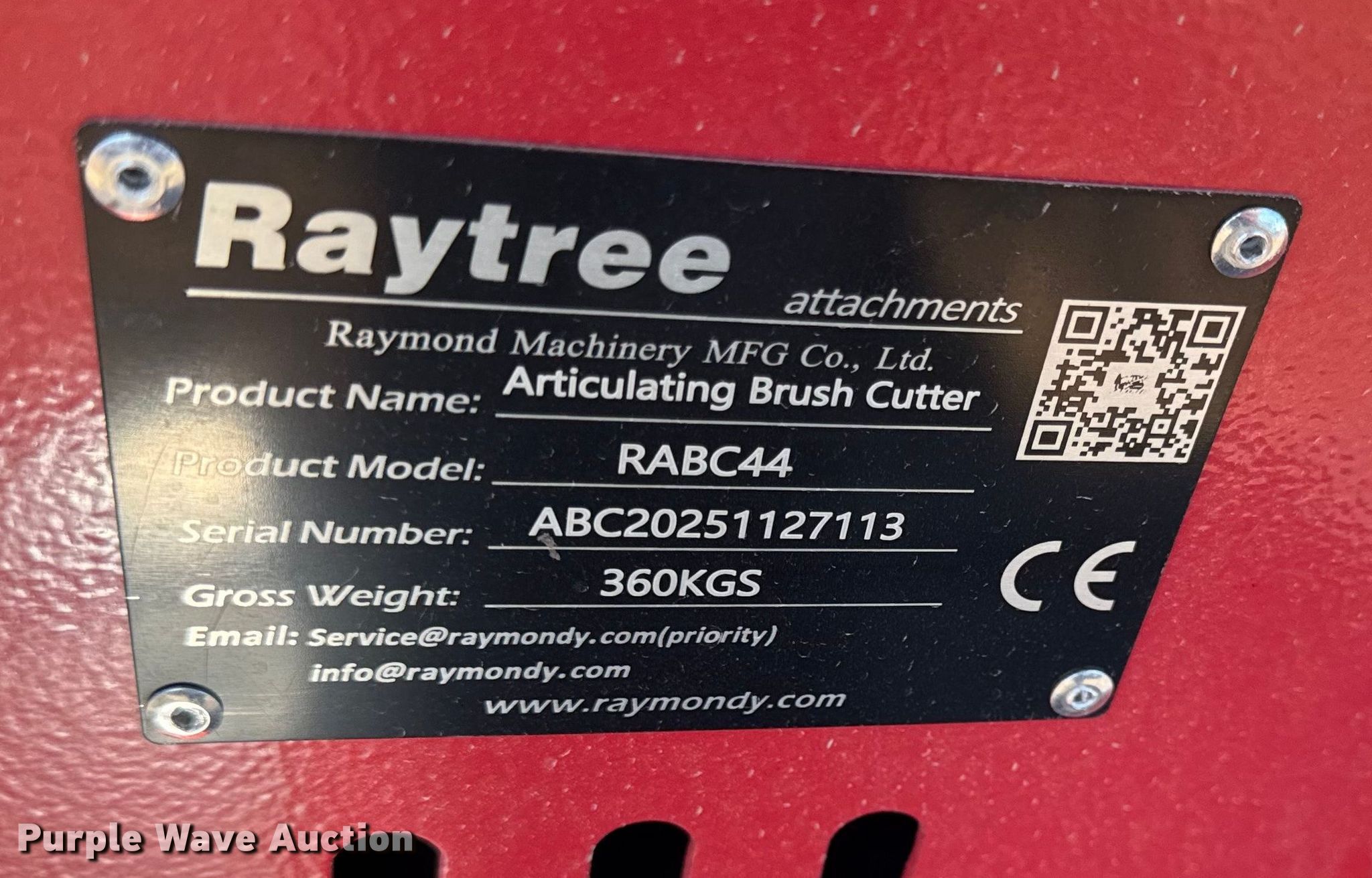 Purple Wave is selling a used Skid Steer Attach. in Kansas. This item is a 2025 Raytree Articulating brush cutter skid steer rotary mower with the following: Serial: ABC20251127113, Width: 44"