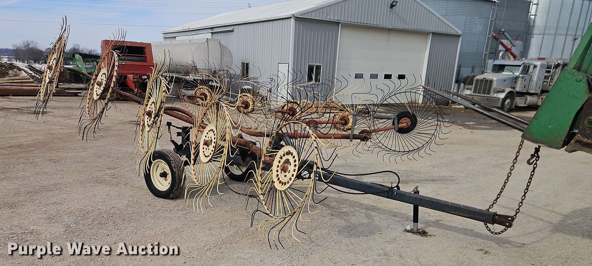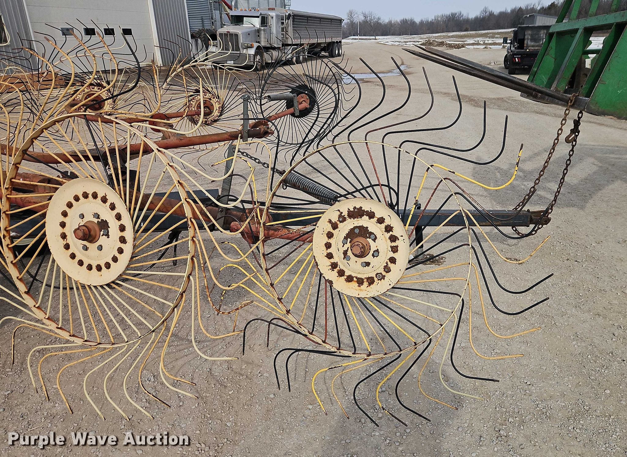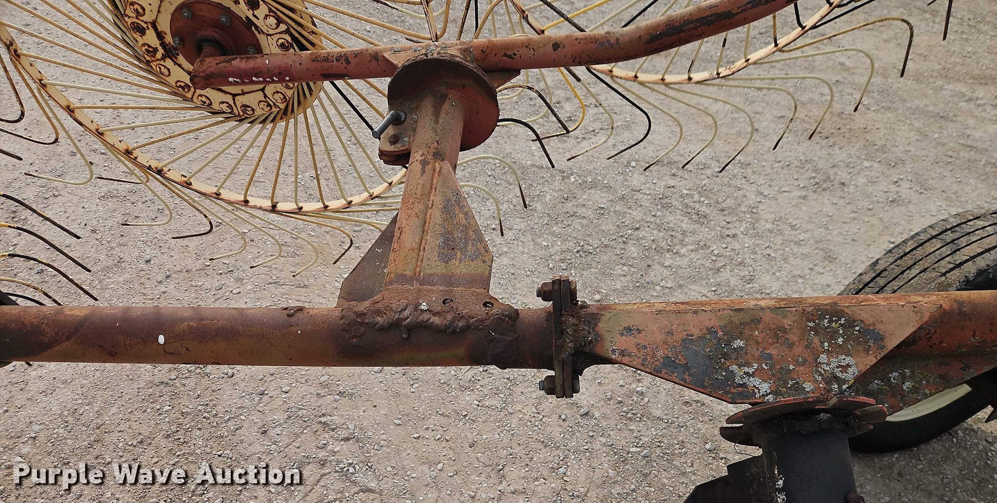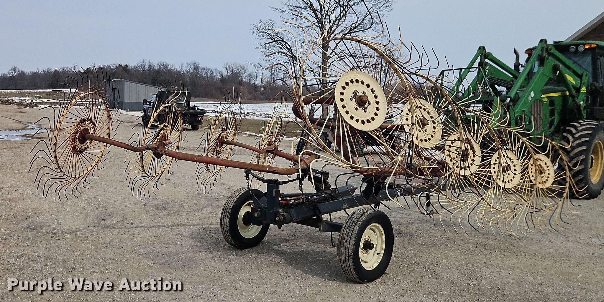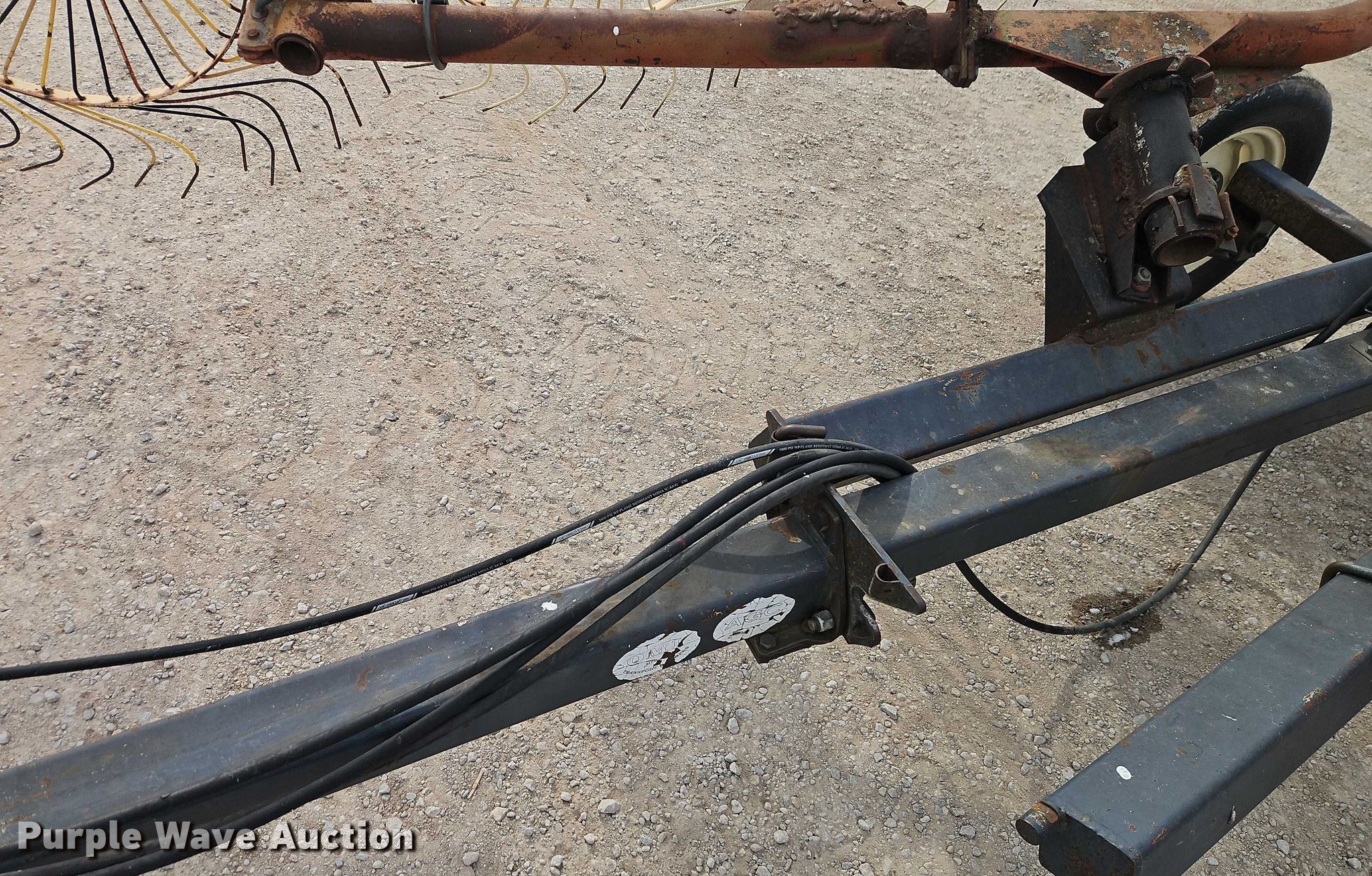 Purple Wave is selling a used Hay Rake in Missouri. This item is a OMI hay rake with the following: Wheels: 10, Diameter: 53", Hydraulic fold, Ground driven
