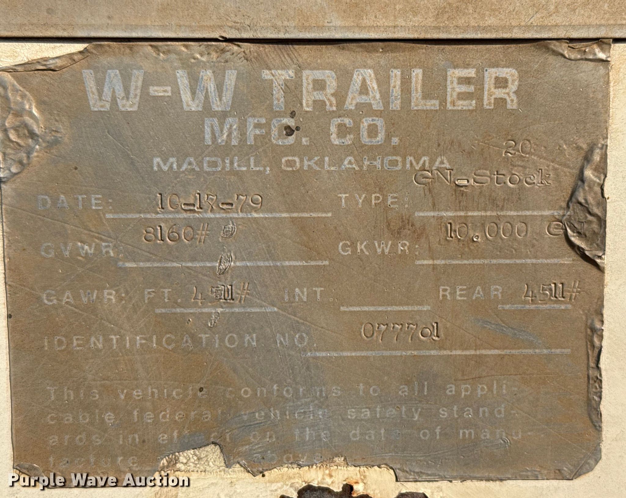 Purple Wave is selling a used Livestock Trailer in Oklahoma. This item is a 1979 W-W livestock trailer with the following: VIN: 077701