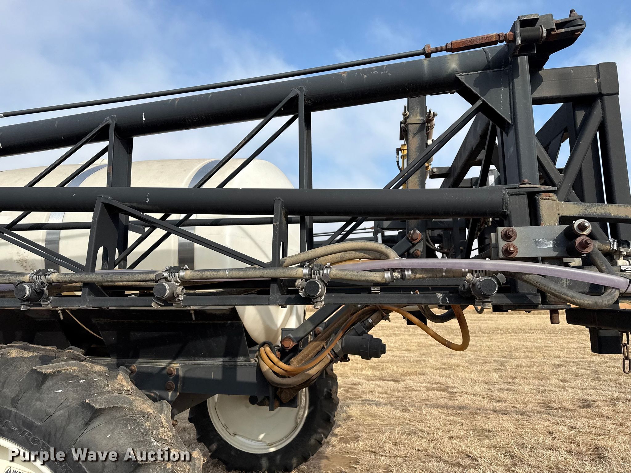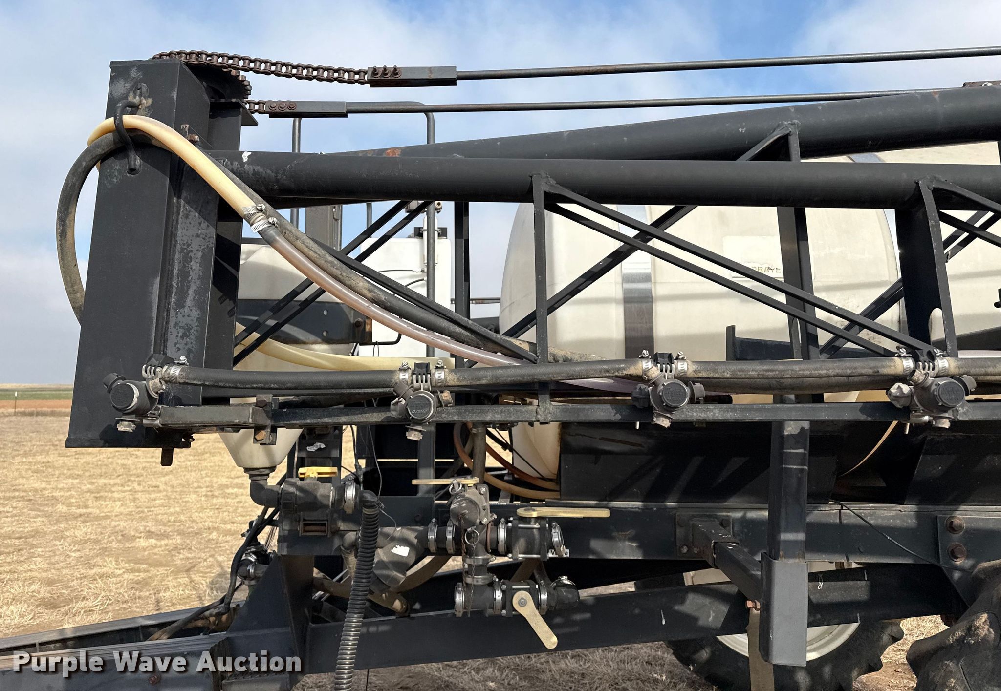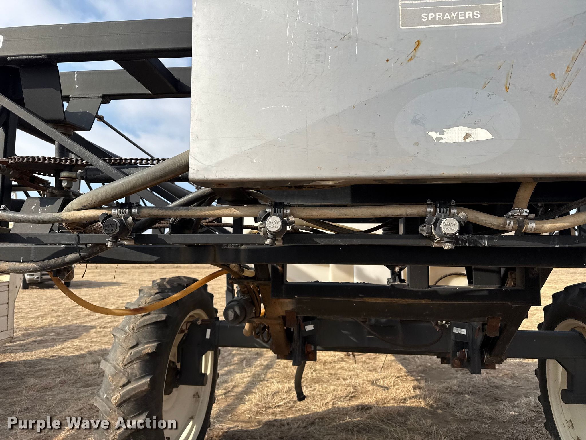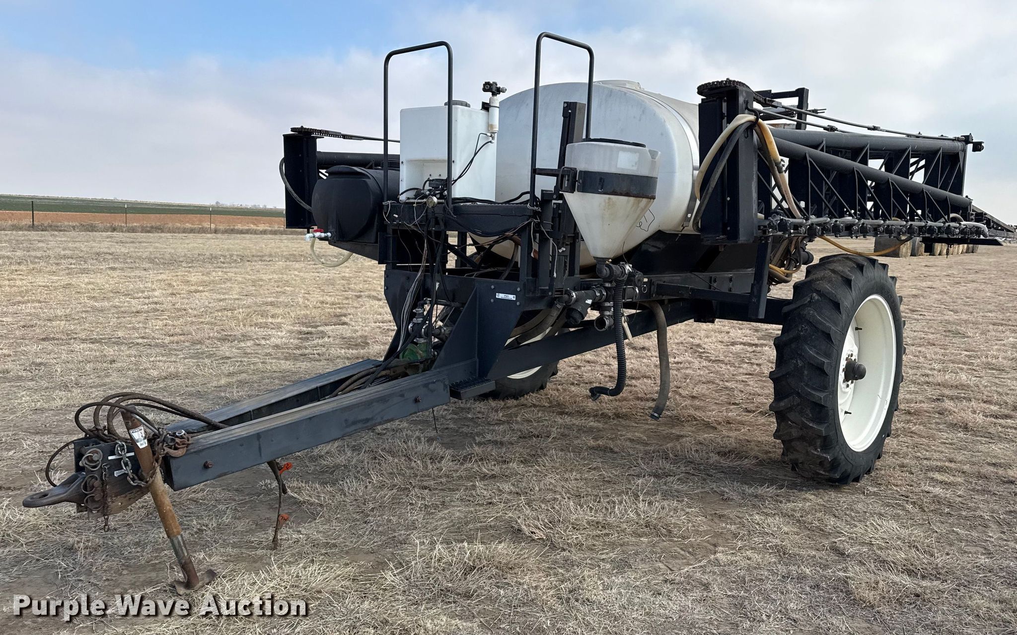 Purple Wave is selling a used Applicator Pull Type in Oklahoma. This item is a Wylie sprayer with the following: Solution tank, Capacity: 1,000 gallons, Type: Poly, Chemical eductor, Foam markers, Boom, Width: 80', Sections: 3, Hydraulic fold, Hydraulic height control, Nozzles, Spacing: 15", Nozzle bodies: 3-way,, Electronics, Rate controller, Raven,