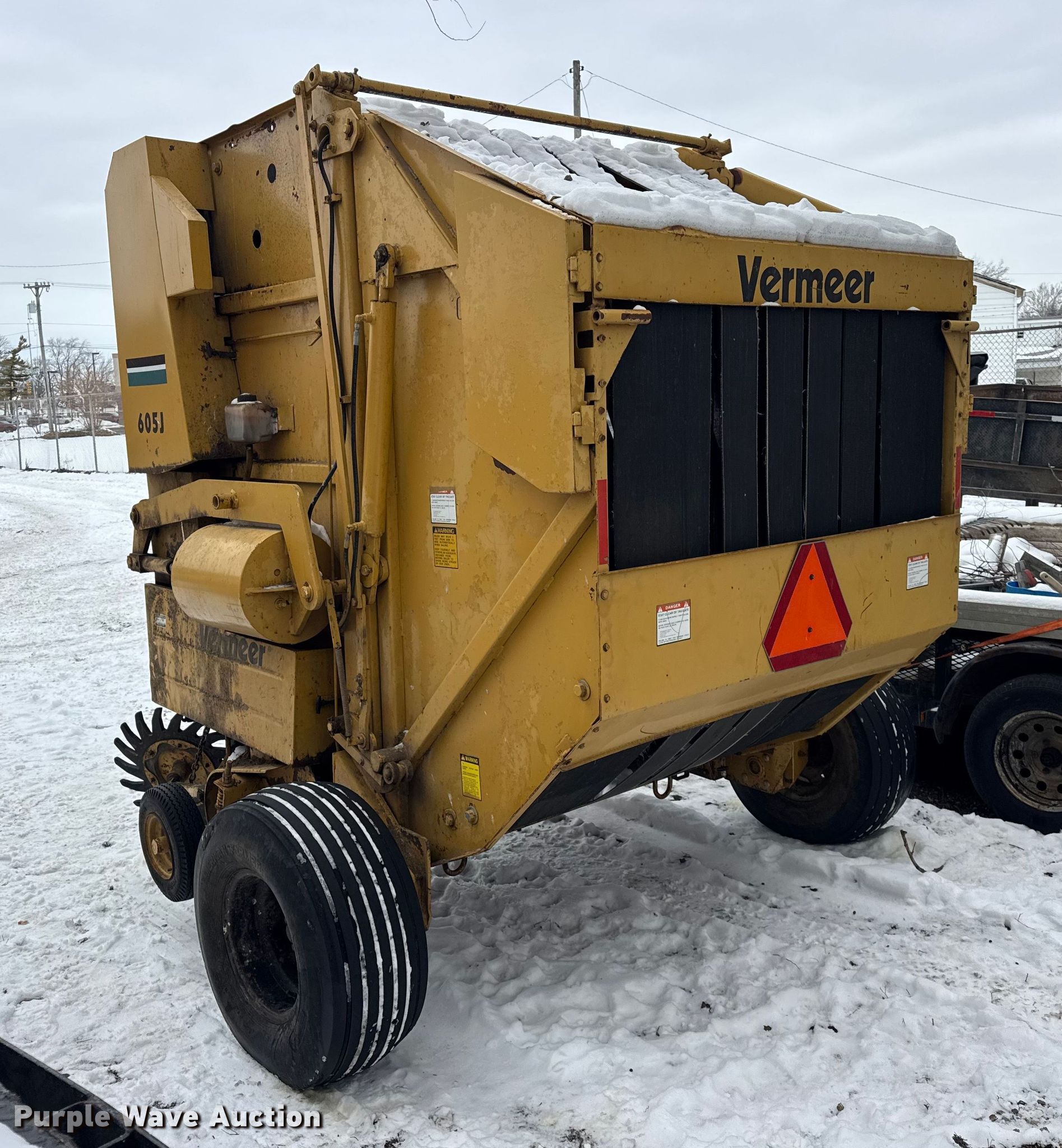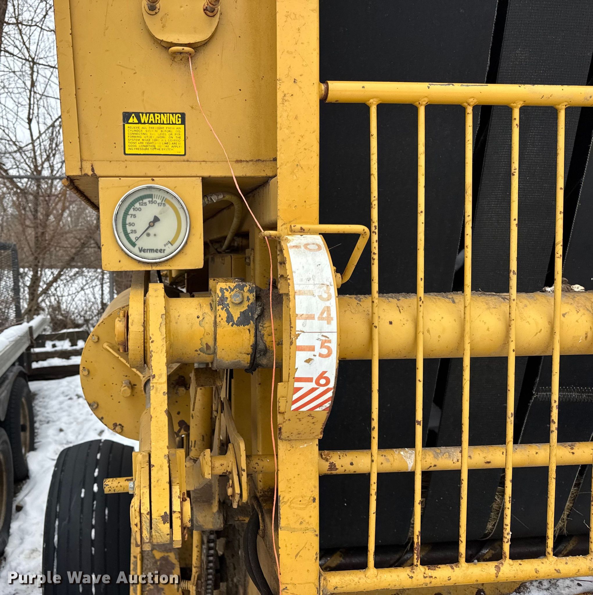 2018 Vermeer 605J round baler. Serial: 1VRA121R9J1001606. Features PTO: 540, Gauge wheels, Hydraulic pickup lift, Bale size: 5' x 6', Twine tie. Tires Size: 31x13.50-15. Notes PTO half shaft missing. JTC Construction. Springfield, IL 62702