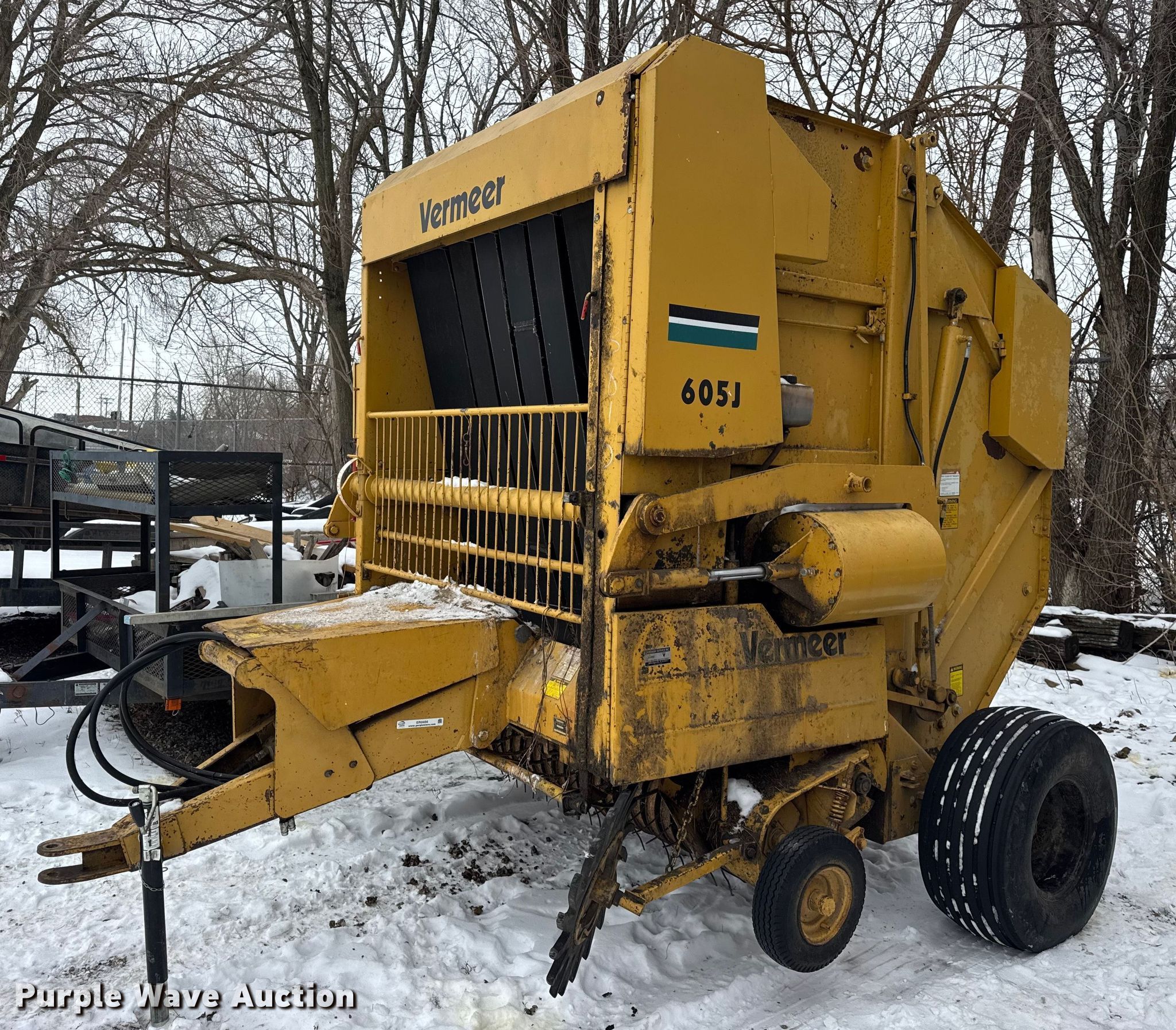 Purple Wave is selling a used Round Baler in Illinois. This item is a 2018 Vermeer 605J round baler with the following: Serial: 1VRA121R9J1001606