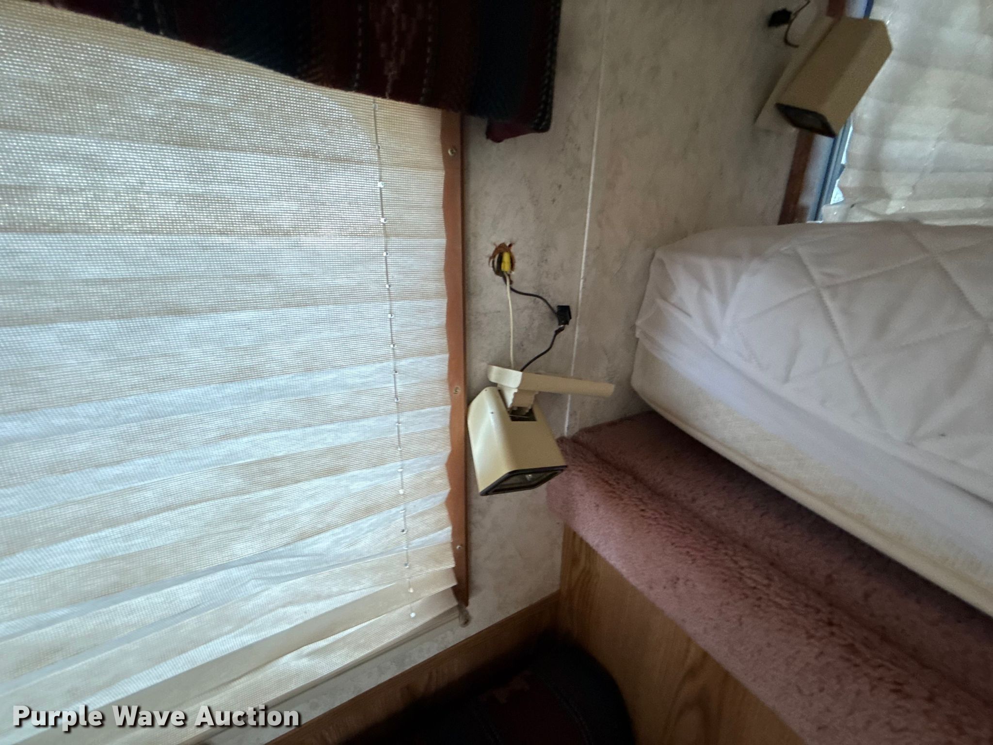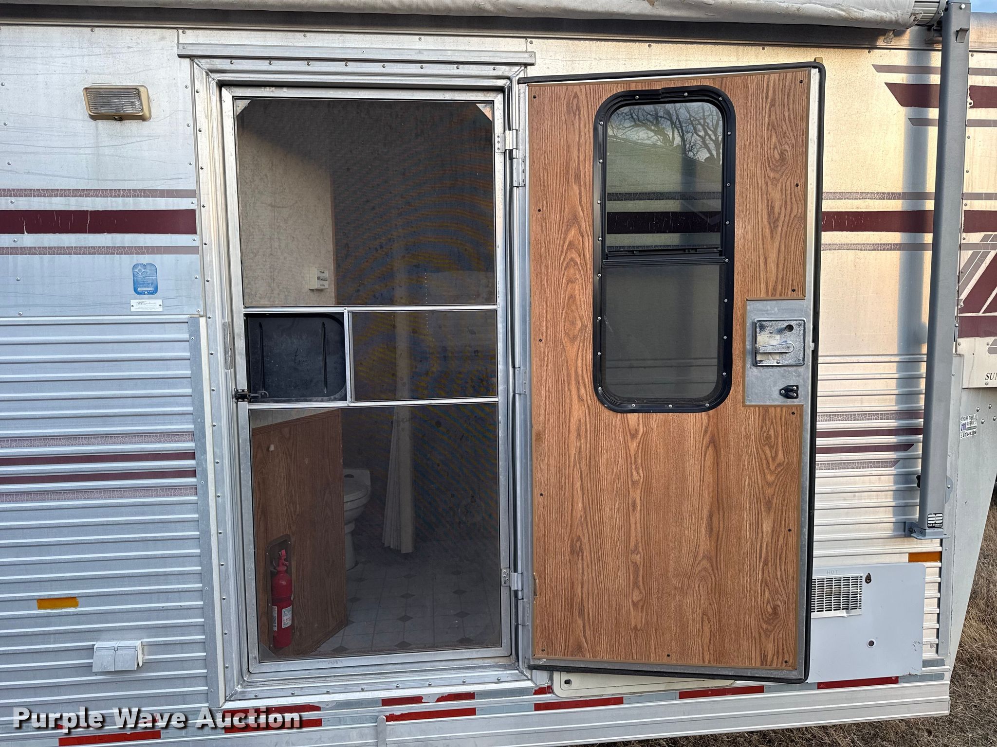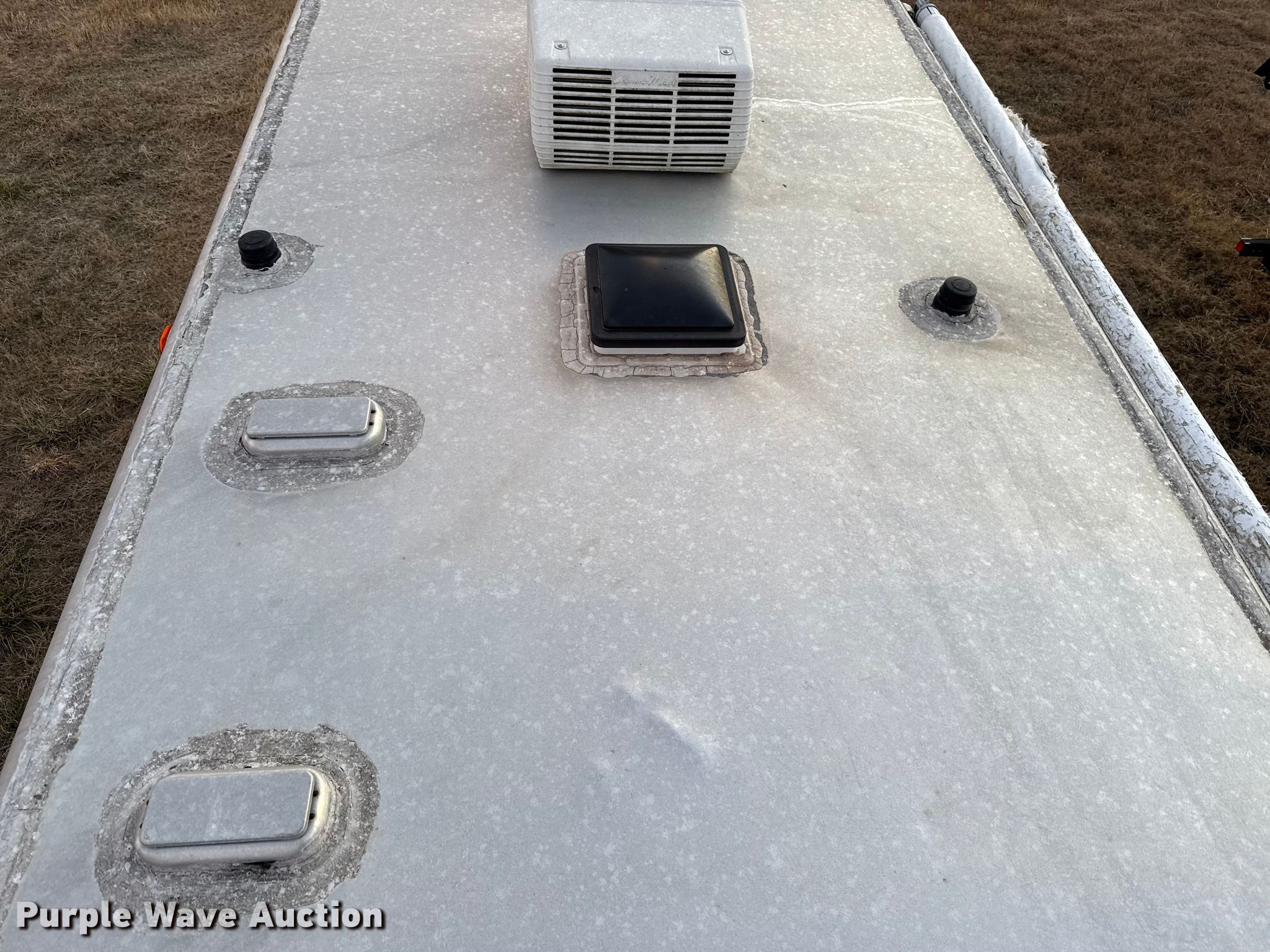 1996 Sundowner SunLite H horse trailer. VIN: 13SAH2821T1628350, Insurance salvage unit claim #: 5-817189. Dimensions Overall Length: 28', Width: 102", Body Length: 13' 6", Width: 96", Side height: 7'. Interior Kitchen: Sink, Refrigerator, Living room: Pull out couch, Bathroom, Sound system, Heater, AC units: 1. Features Horse capacity: 3, Center gates: 2, Rubber floor mat. Chassis Hitch: Gooseneck, Landing gear: Single, Suspension: Torsion, Brakes: Electric, Axles: Tandem, GVWR: 12,700 lbs, GAWR: 5,080 lbs. Tires Steel wheels, Size: ST225/75R15. Notes Hail damage. Oklahoma title. Title distribution may be delayed up to 14 days from verification of funds. Oklahoma Farm Bureau Insurance. Seminole, OK 74868