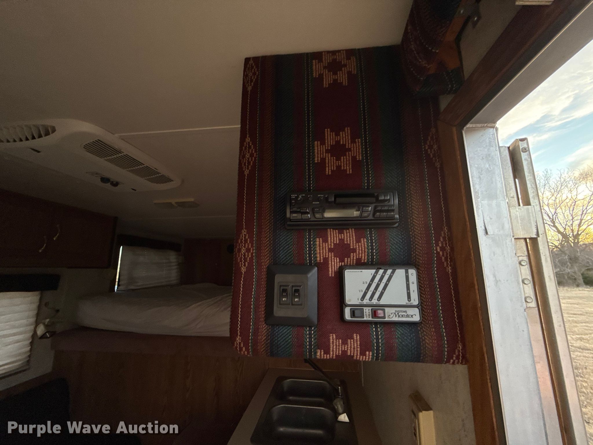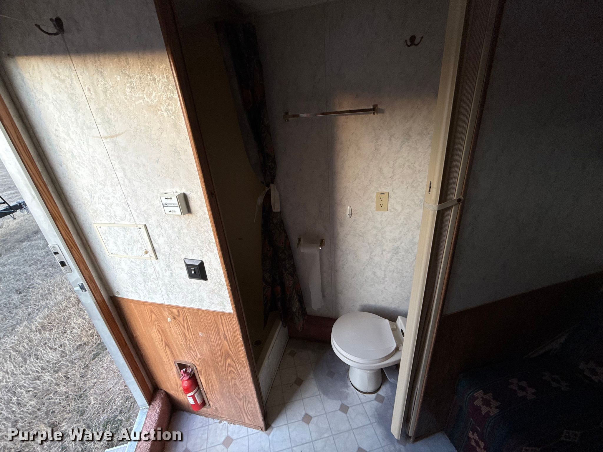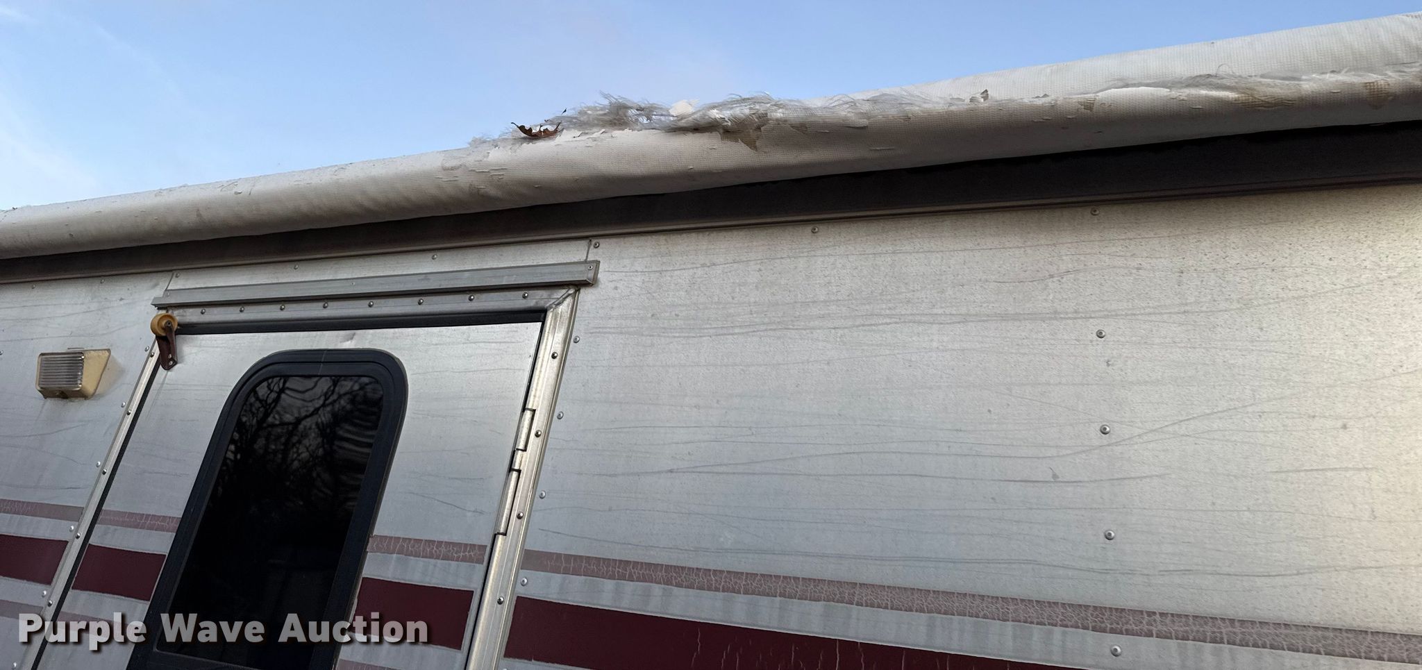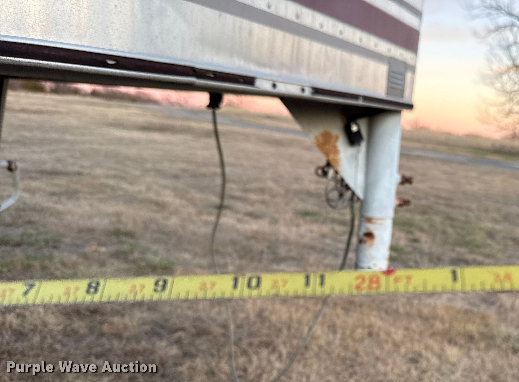 1996 Sundowner SunLite H horse trailer. VIN: 13SAH2821T1628350, Insurance salvage unit claim #: 5-817189. Dimensions Overall Length: 28', Width: 102", Body Length: 13' 6", Width: 96", Side height: 7'. Interior Kitchen: Sink, Refrigerator, Living room: Pull out couch, Bathroom, Sound system, Heater, AC units: 1. Features Horse capacity: 3, Center gates: 2, Rubber floor mat. Chassis Hitch: Gooseneck, Landing gear: Single, Suspension: Torsion, Brakes: Electric, Axles: Tandem, GVWR: 12,700 lbs, GAWR: 5,080 lbs. Tires Steel wheels, Size: ST225/75R15. Notes Hail damage. Oklahoma title. Title distribution may be delayed up to 14 days from verification of funds. Oklahoma Farm Bureau Insurance. Seminole, OK 74868
