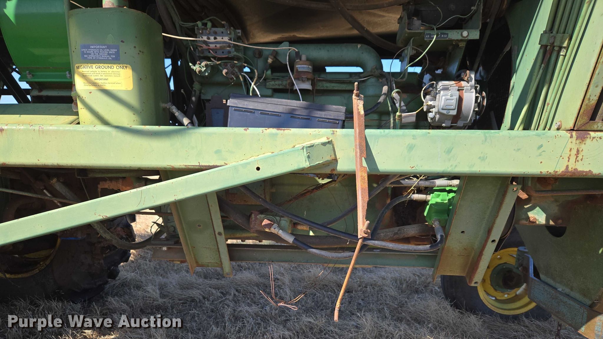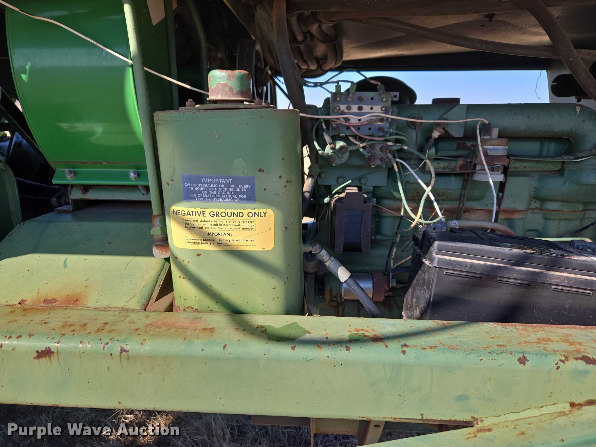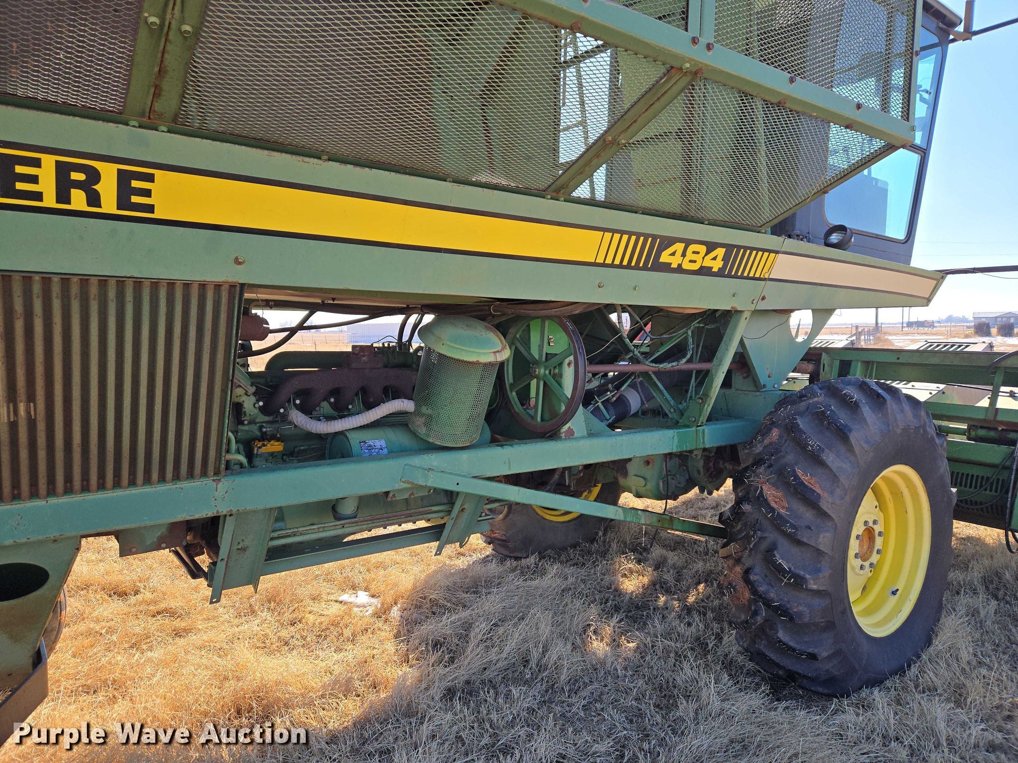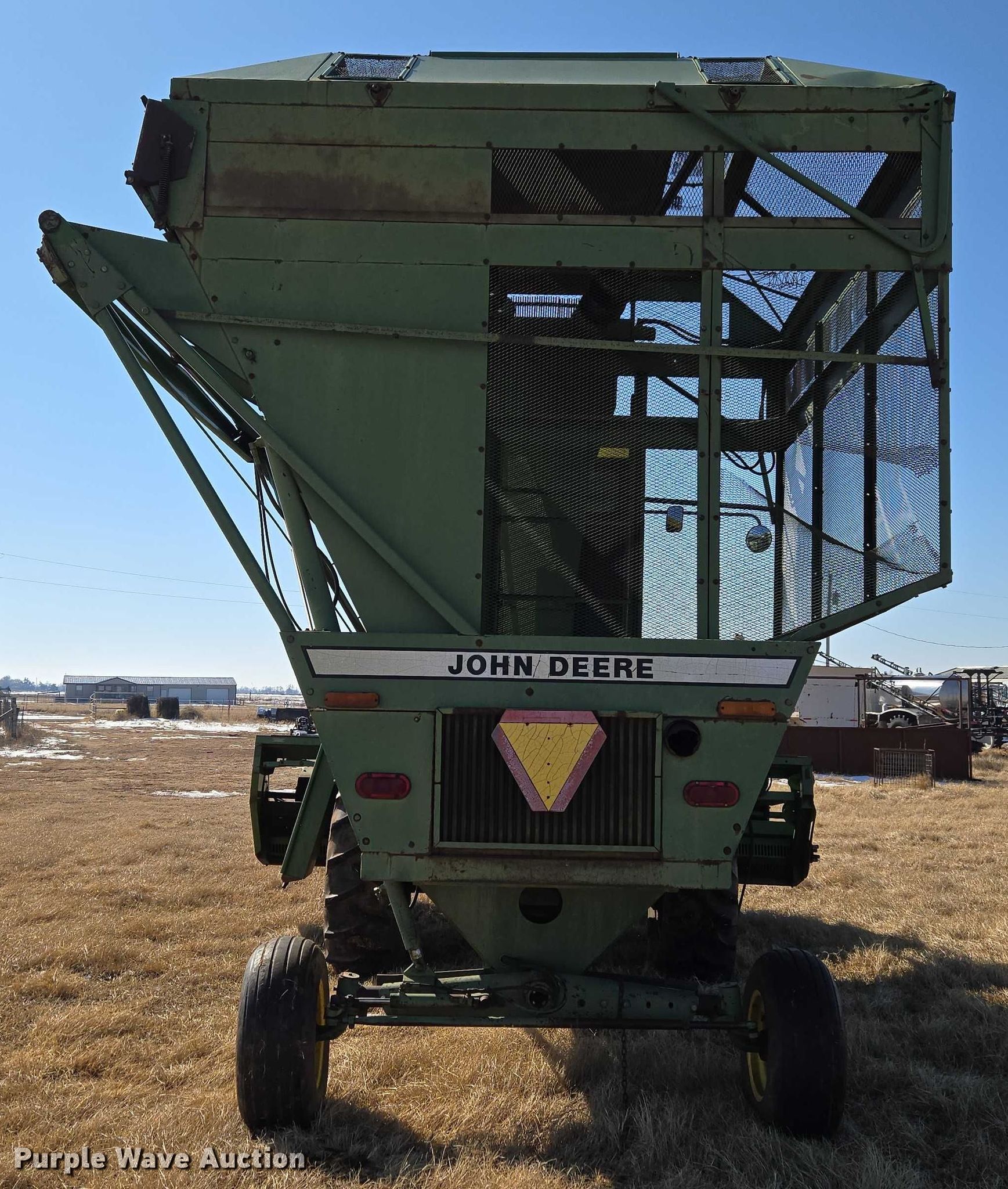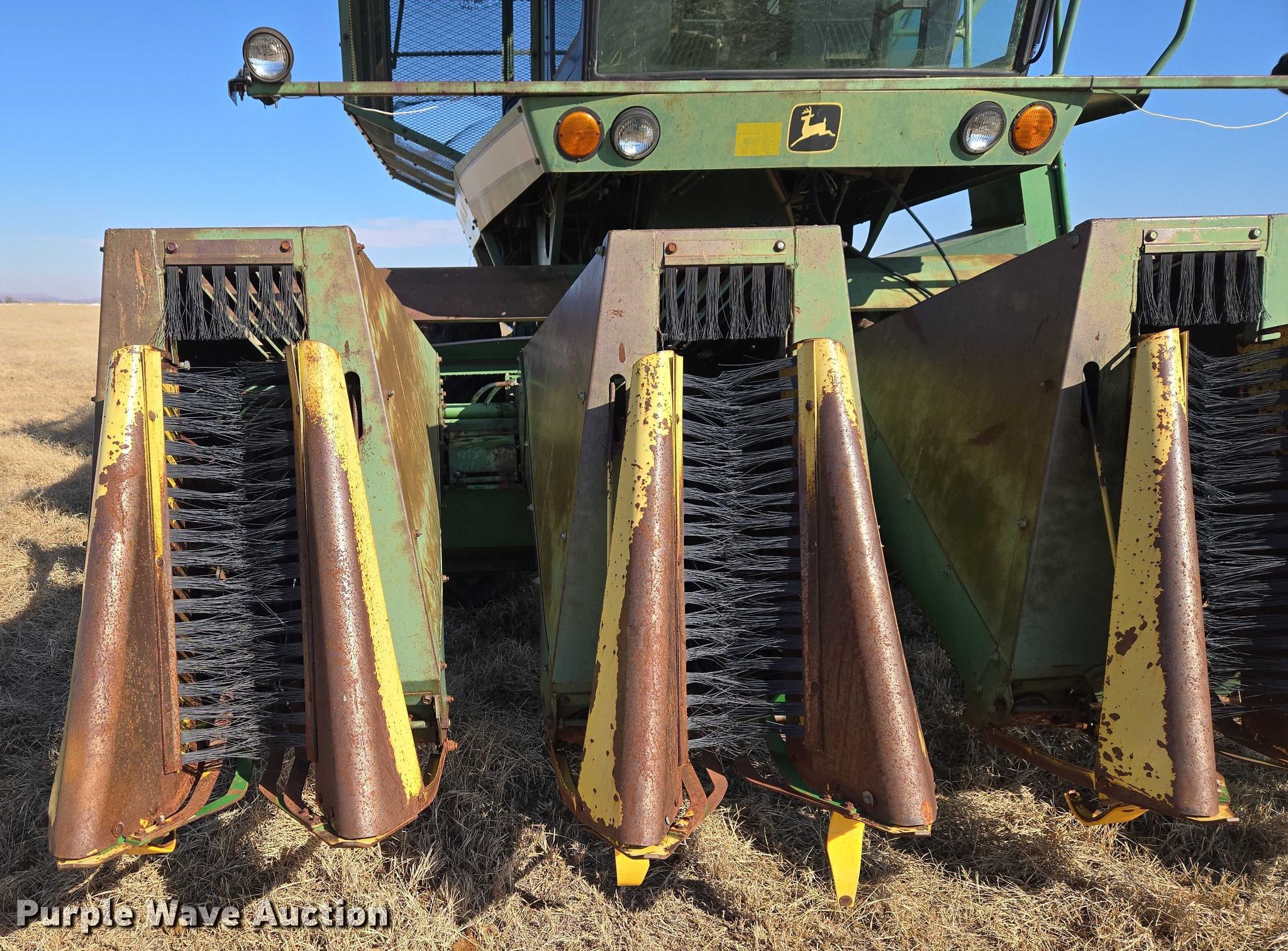 Purple Wave is selling a used Cotton Harvester Equip. in Oklahoma. This item is a John Deere 484 cotton stripper with the following: Engine hours: 2,987 on meter, Serial: 000973N