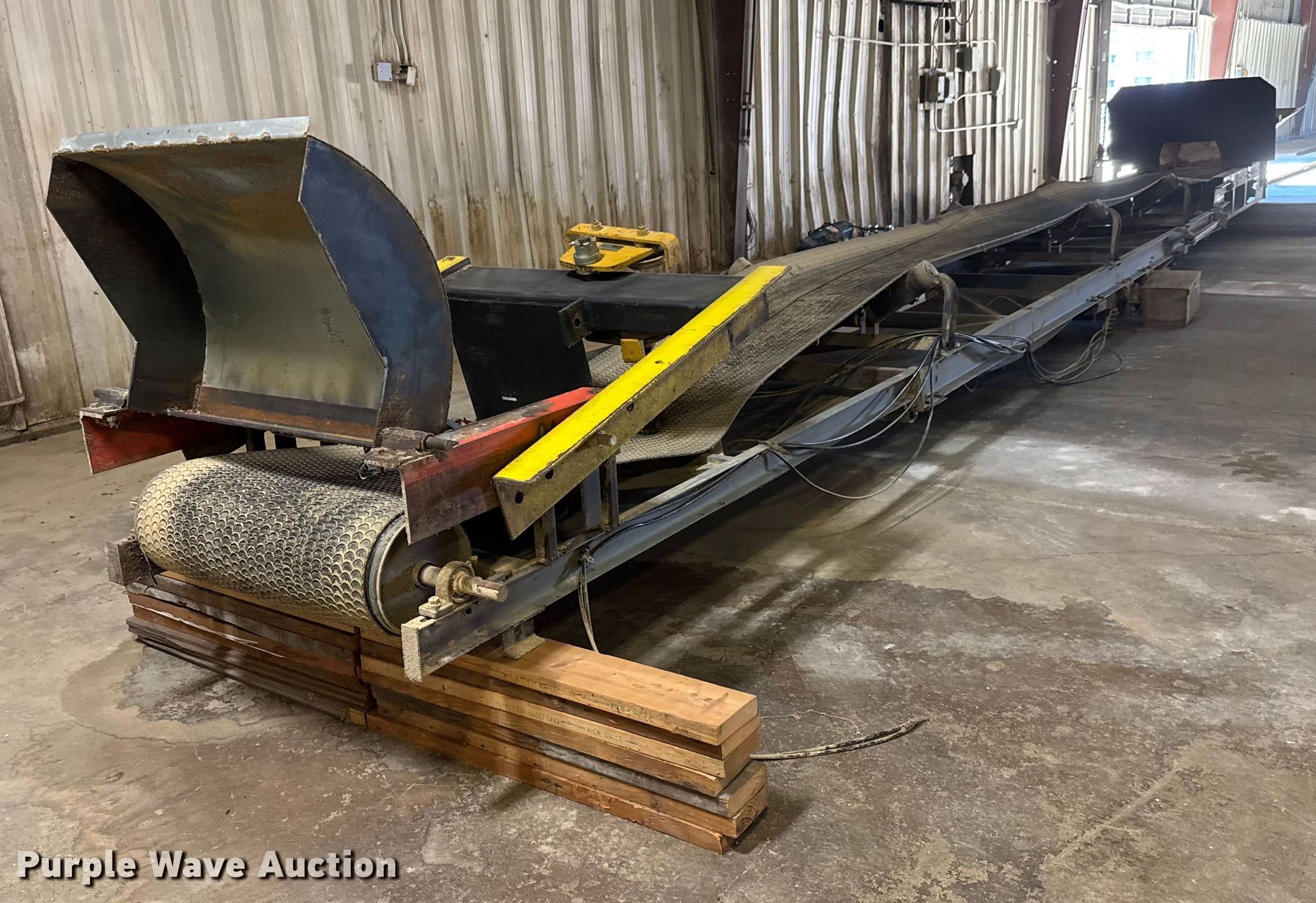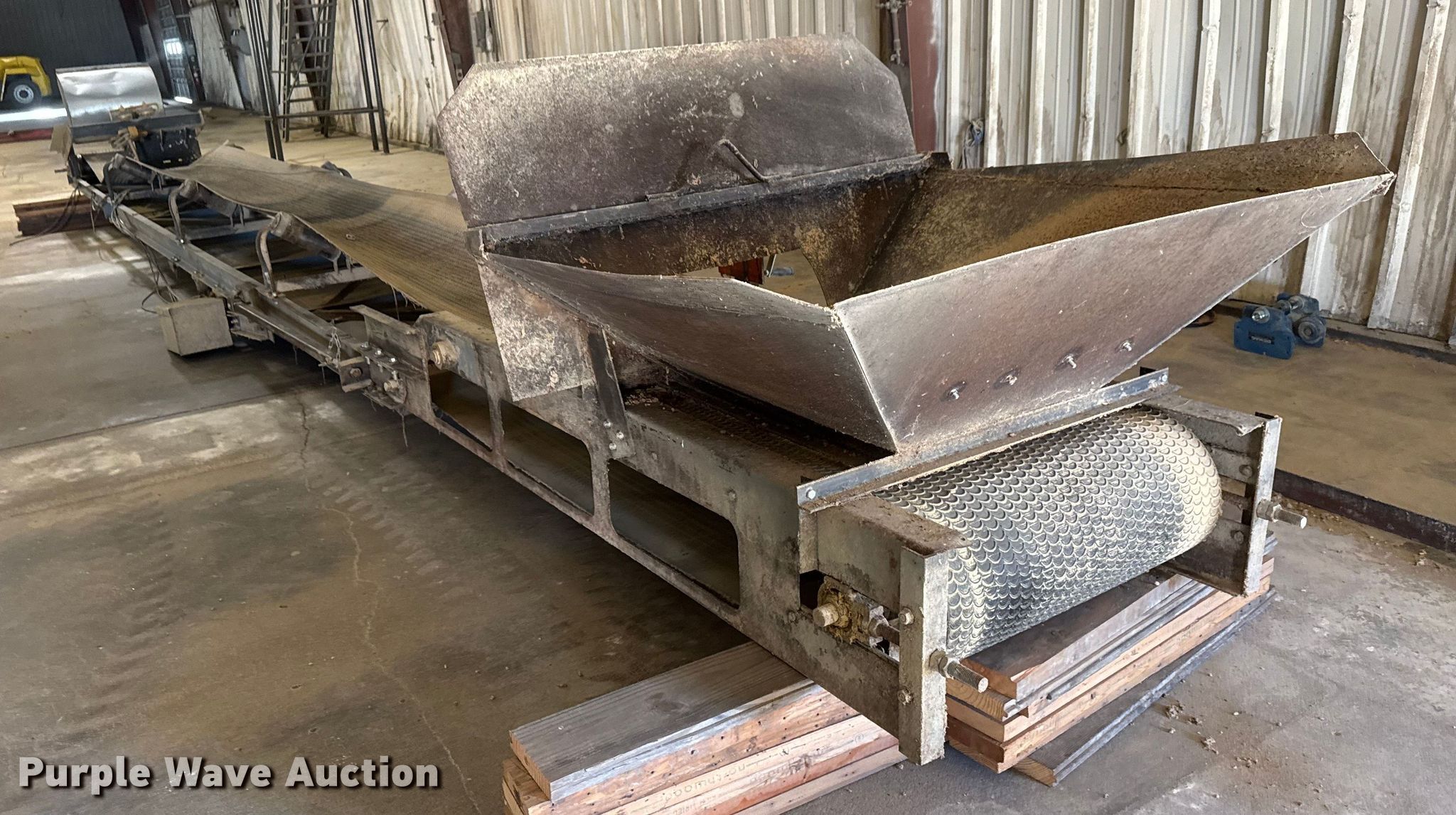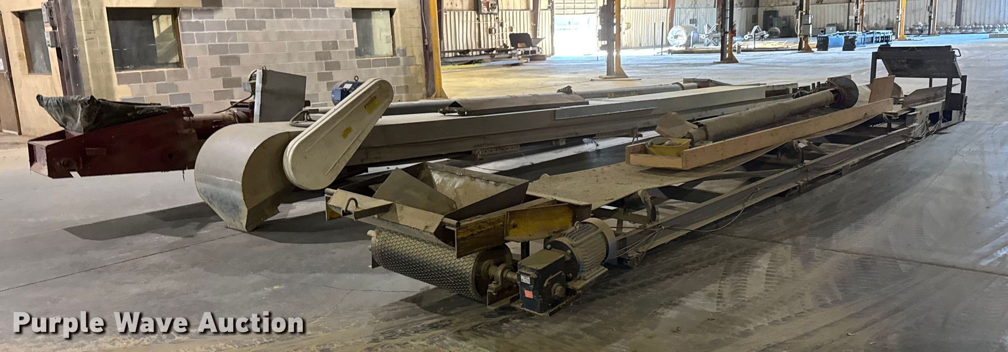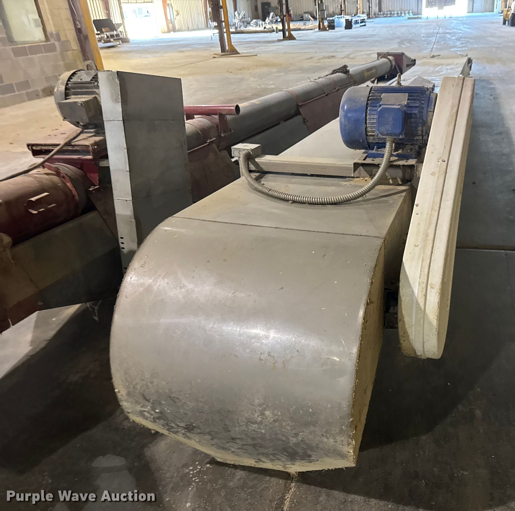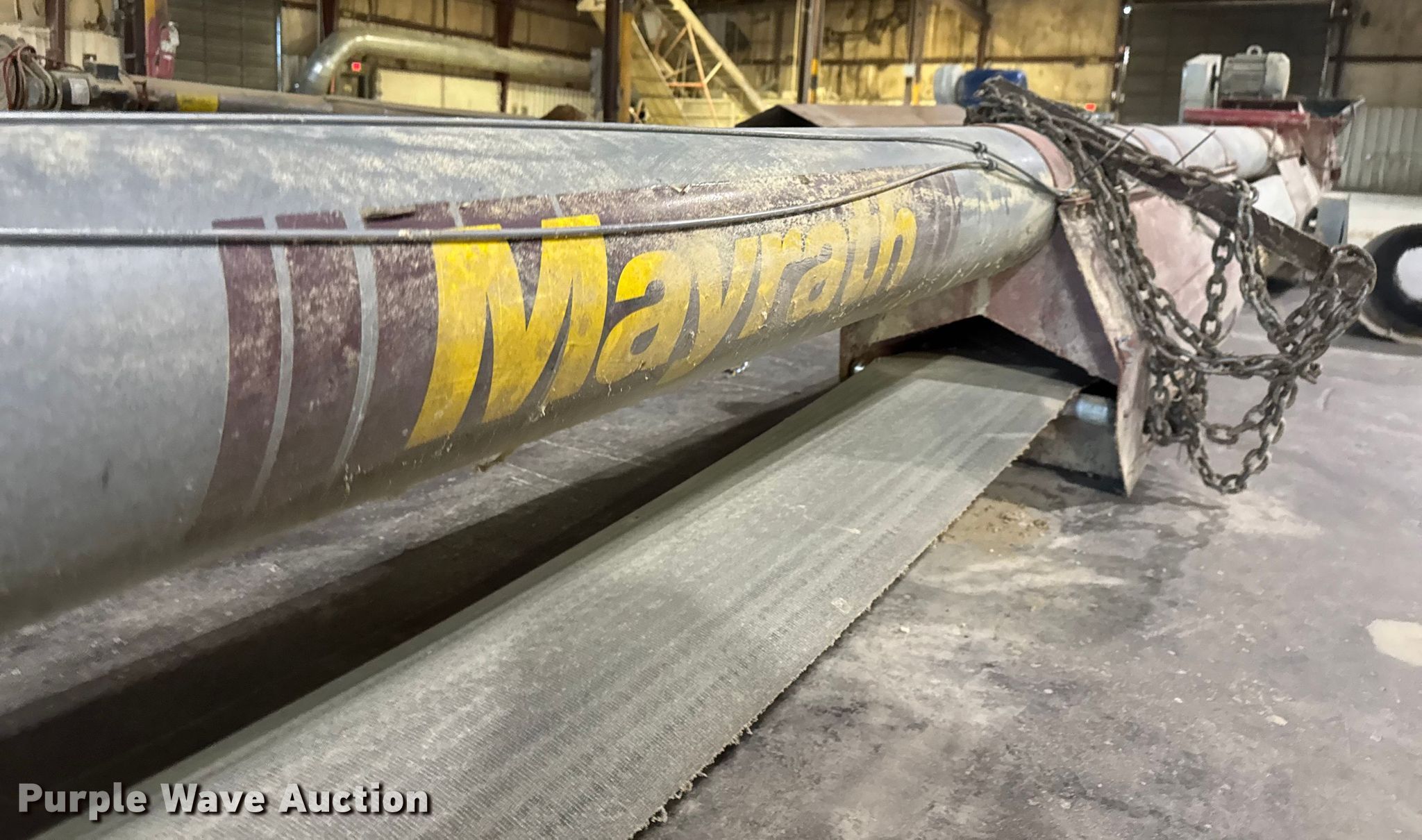 Purple Wave is selling a used Auger or Conveyor in Kansas. This item is a (3) conveyors and (2) augers with the following: Conveyor with I-beam and trolley, 36'L x 30" W, Motor, Model: Hyundai PKP184PR235B, Phase: 3,, Conveyor, 32' 6" L x 24" W, Motor, Torque Master, Phase: 3,, Conveyor, 33' 8" L x 30" W, Motor, Phase: 3,, Mayrath belt auger, 37'L x 9" diameter, Motor, Lincoln, Phase: 3, HP: 7.5,, Auger, 10'L x 6" diameter, Motor, World Wide, Phase: Single,