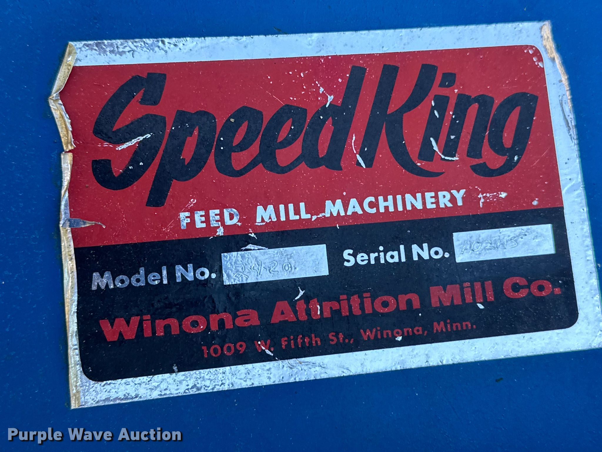 Purple Wave is selling a used Other Grain or Fertilizer Handling in Kansas. This item is a Speed King 2420 hammer mill with the following: Serial: 102115