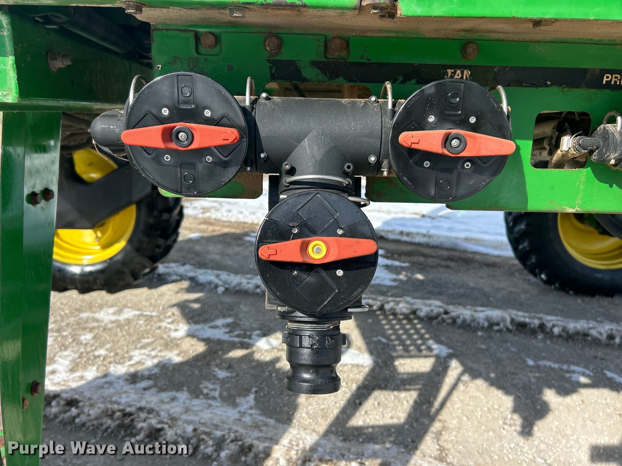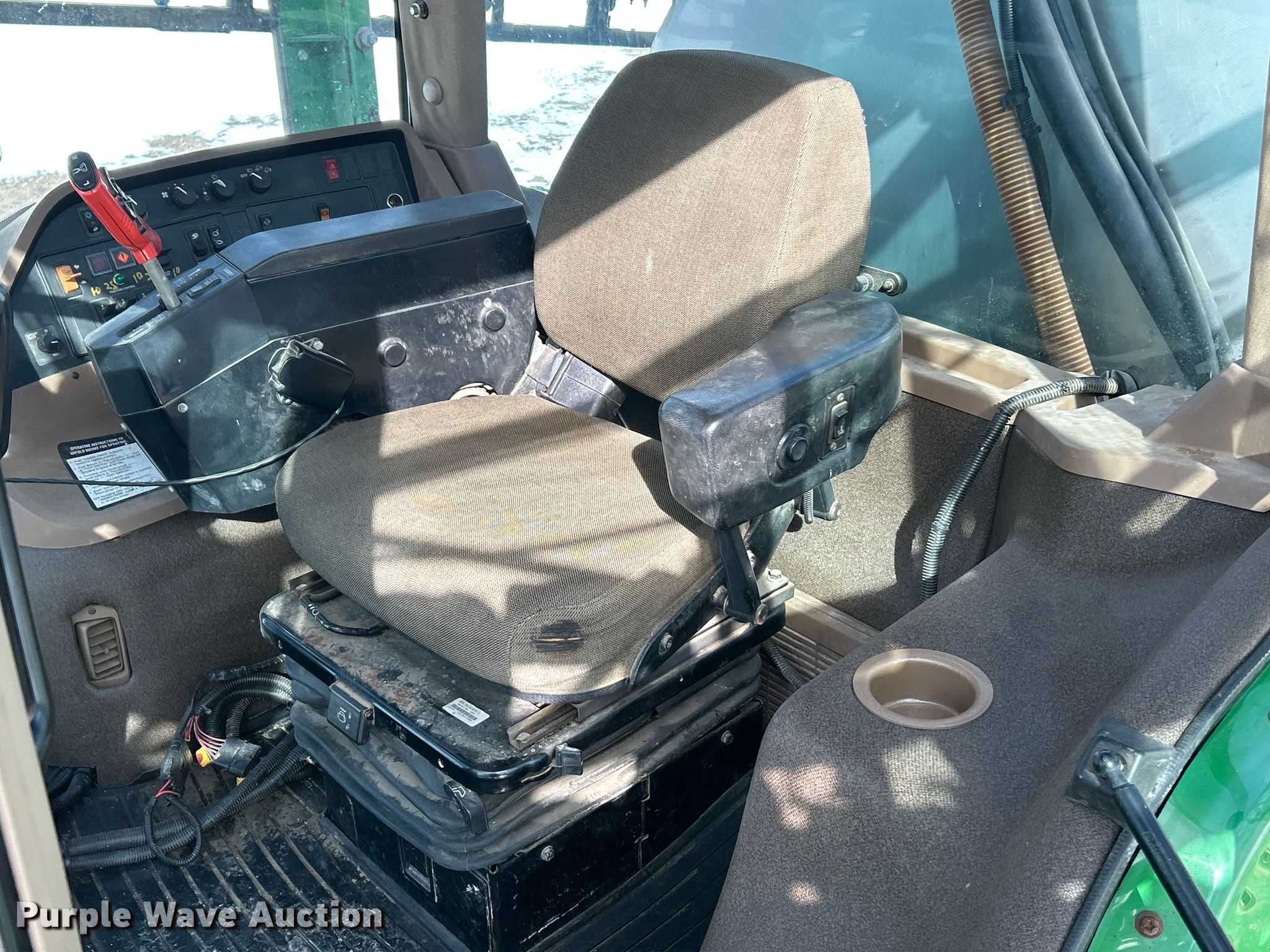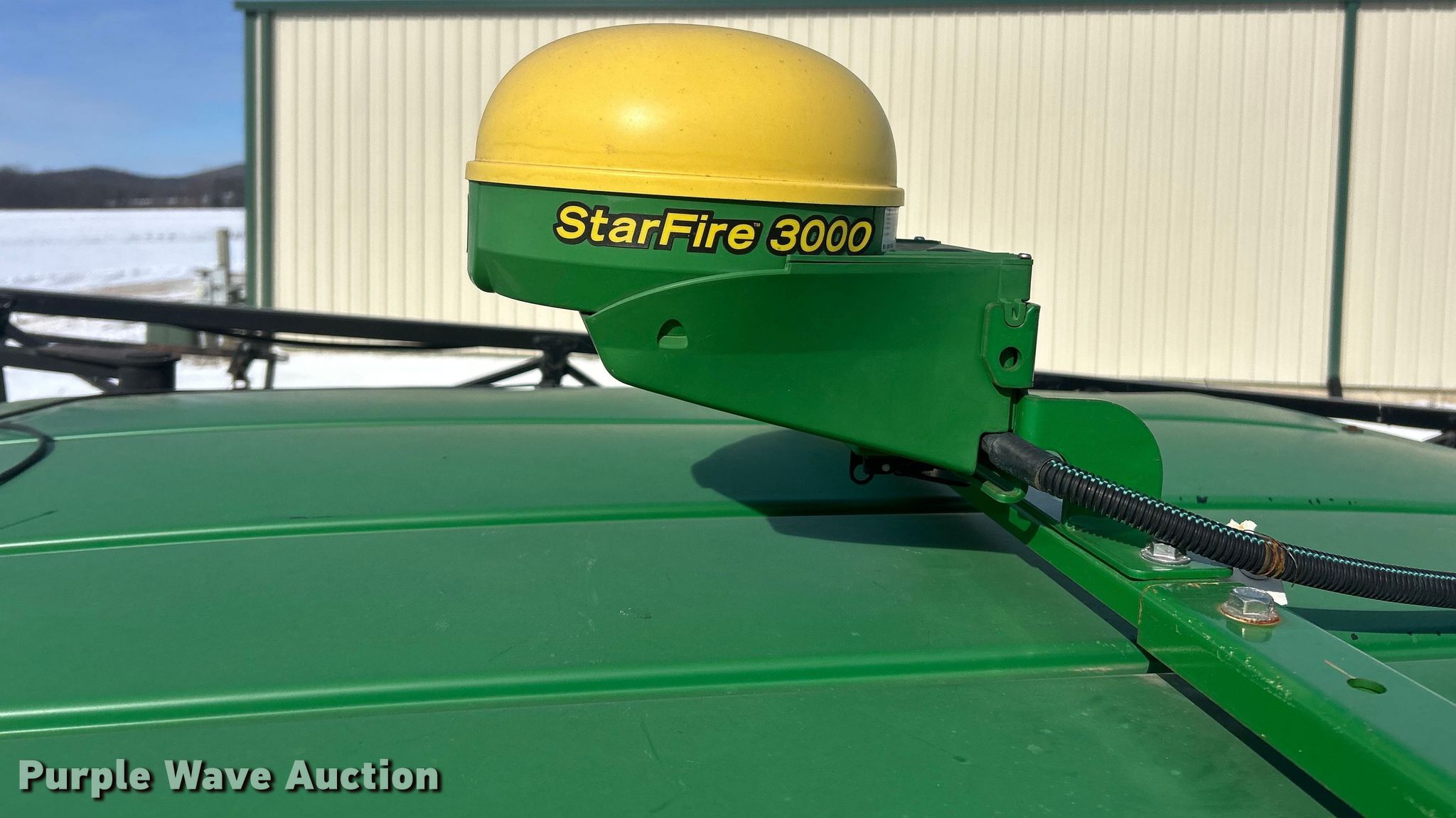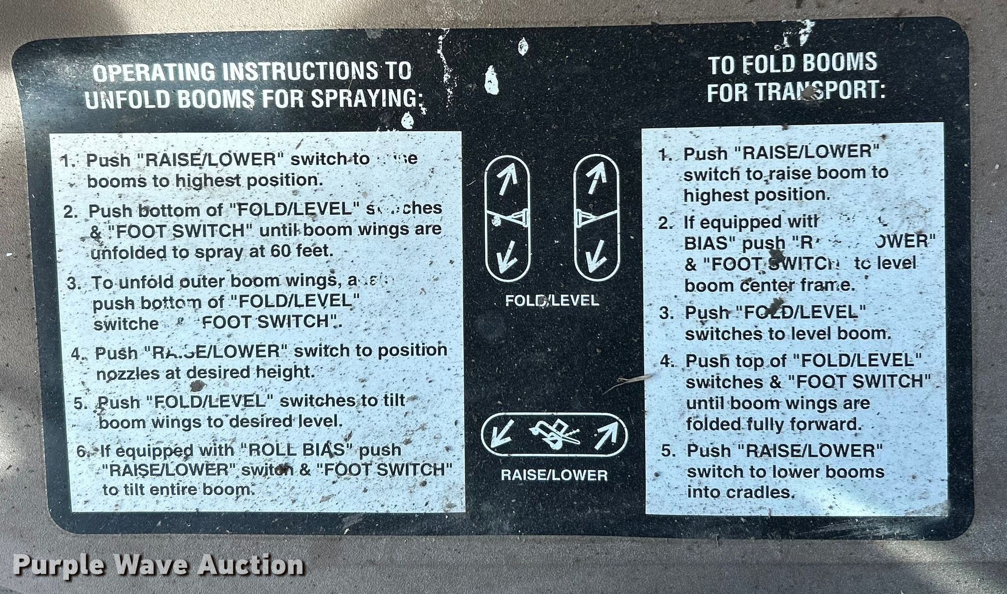 1998 John Deere 4700 sprayer. Engine hours: 4,898 on meter, Serial: N04700X002581. Engine John Deere 6068TN050, Displacement: 6.8L, Cylinders: 6, Fuel type: Diesel. Transmission Hydrostatic. Operators station AC, Heat. Features Solution tank Capacity: 750 gallons, Type: Stainless Steel, Chemical eductor Capacity: 6.5 gallons, Type: Poly, Rinse tank, Clean water tank, Boom Width: 80', Sections: 4, Boom breakaway, Hydraulic boom fold, Hydraulic height control, Nozzle Spacing: 16", Nozzle bodies: 3-way, Electronics GPS monitor John Deere, GPS receiver John Deere Starfire 3000, Spray controls Raven, Auto steer. Tires Front: 380/85R34, Row crop tires. Elsberry, MO 63343