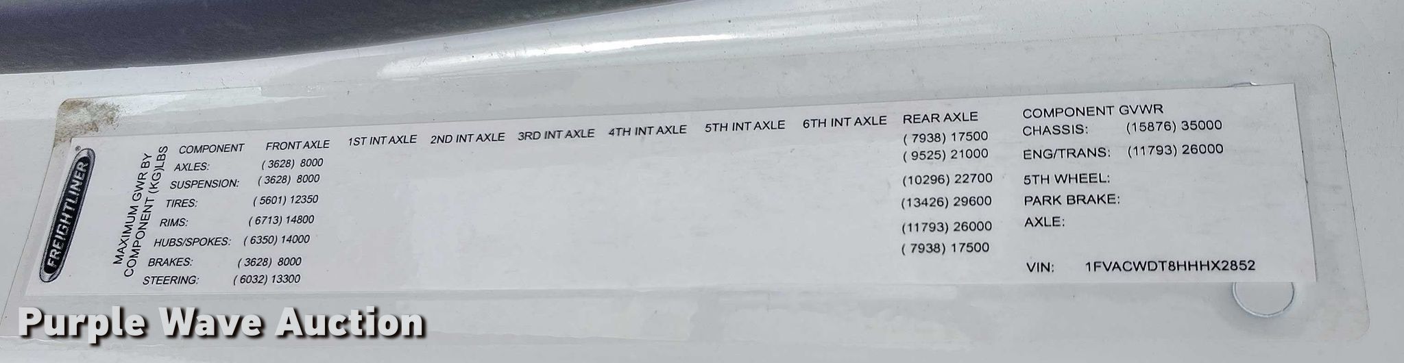 - VIN: 1FVACWDT8HHHX2852