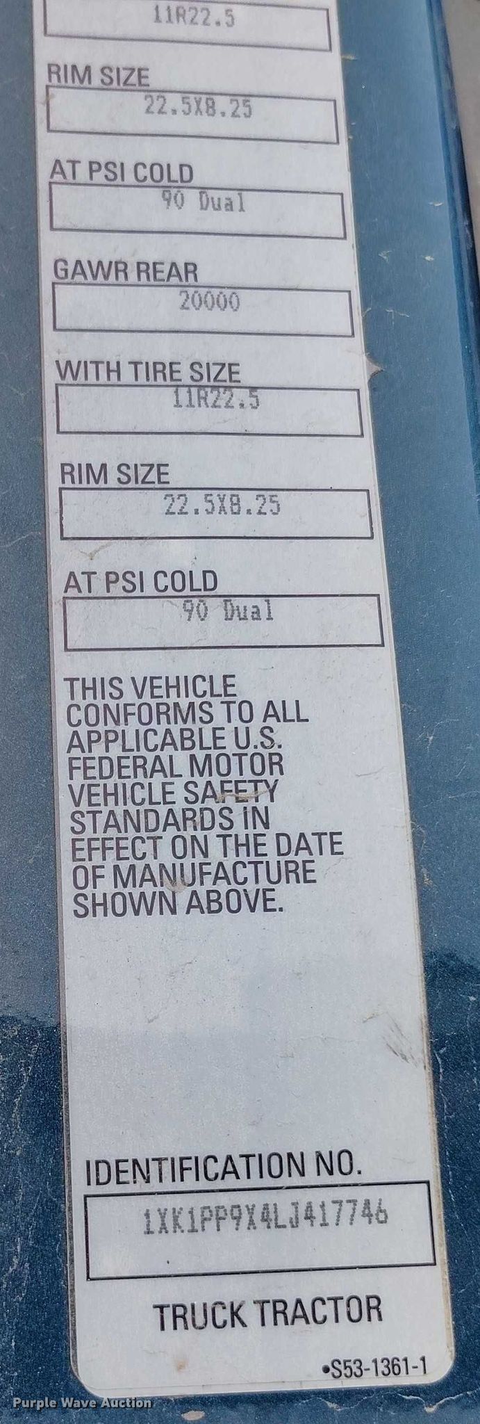 - VIN: 1XK1PP9X4LJ417746