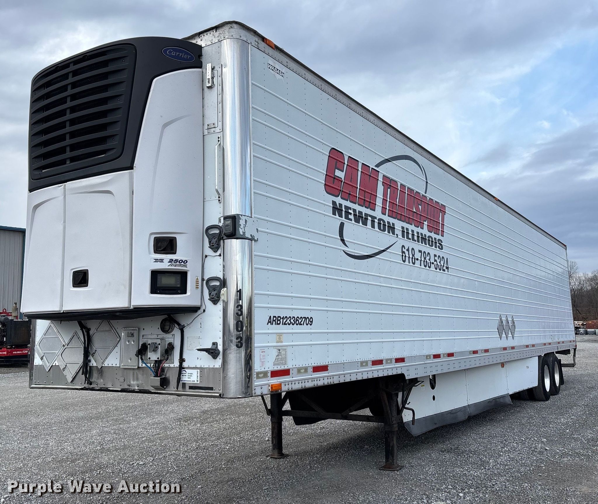 2013 Wabash refrigerated van trailer. VIN: 1JJV532B9DL761192, Unit #: 1303. Dimensions Overall Length: 53', Width: 8' 6". Features Deck type: Aluminum, Refrigeration unit Carrier XP 2500, Hours: 29,688, Fuel type: Diesel. Chassis Landing gear: Dual, Suspension: Spring, Brakes: Air, Axles: Tandem Sliding. Tires Aluminum wheels, Steel wheels, Size: 275/80R22.5. Notes TSM Paul G has title. Illinois title. Title distribution may be delayed up to 30 days from verification of funds. Marion, IL 62959