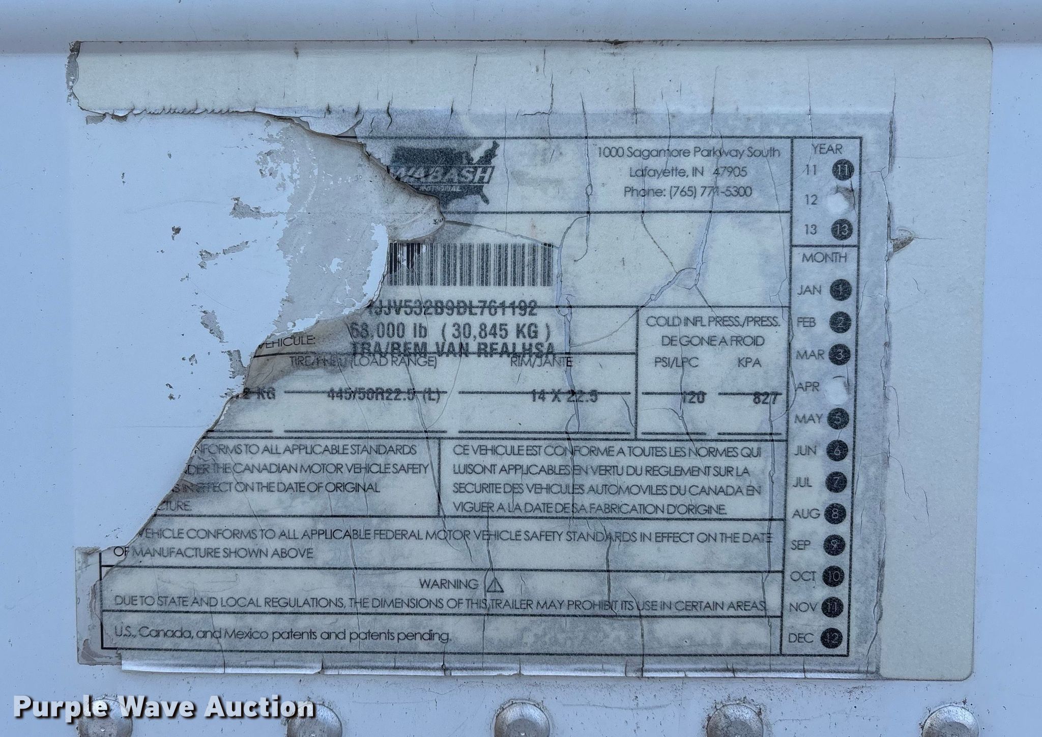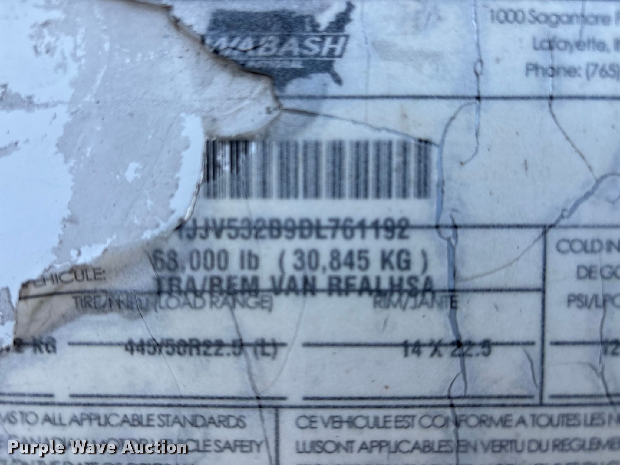 Purple Wave is selling a used Refrigerated Van Trailer in Illinois. This item is a 2013 Wabash refrigerated van trailer with the following: VIN: 1JJV532B9DL761192, Unit #: 1303