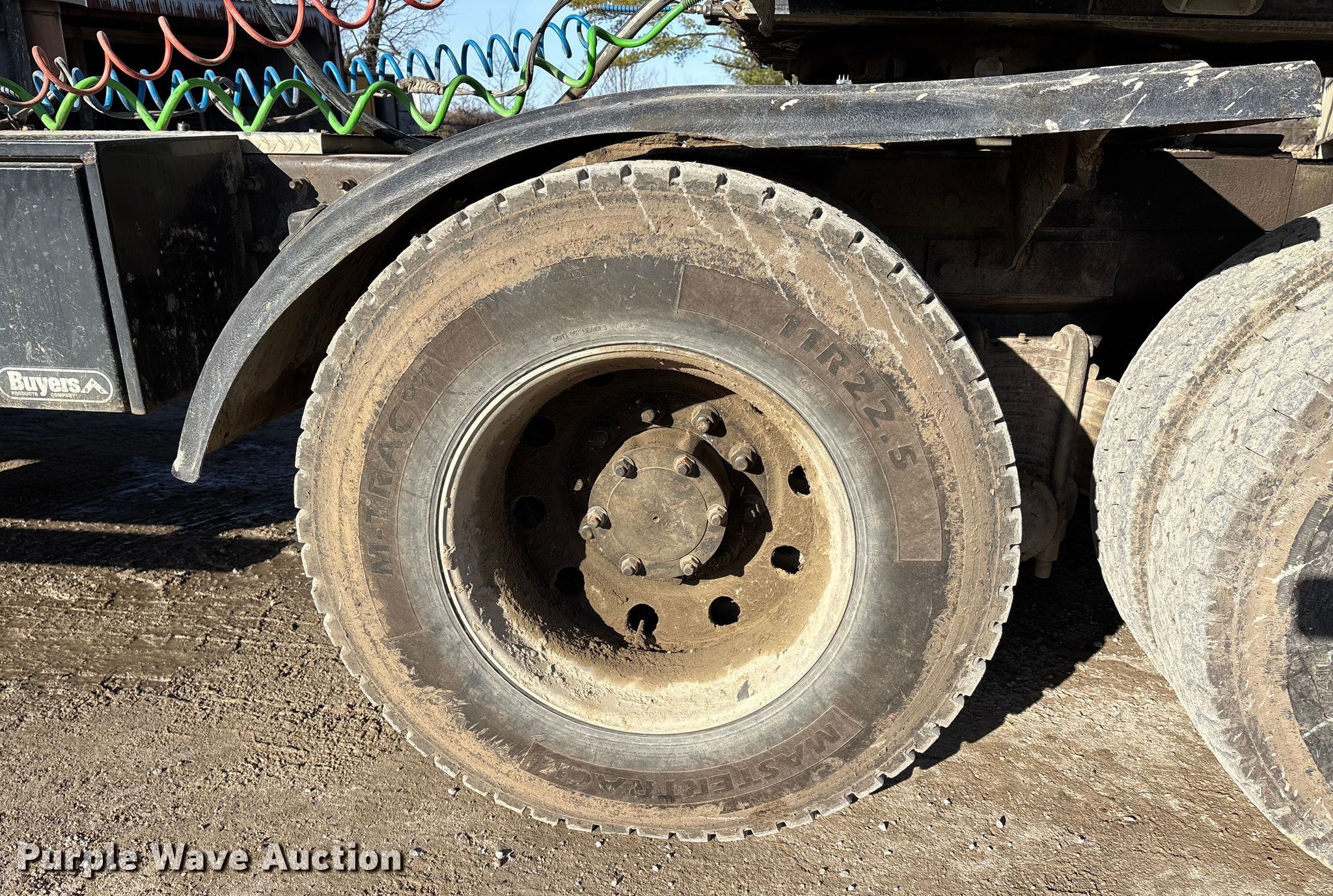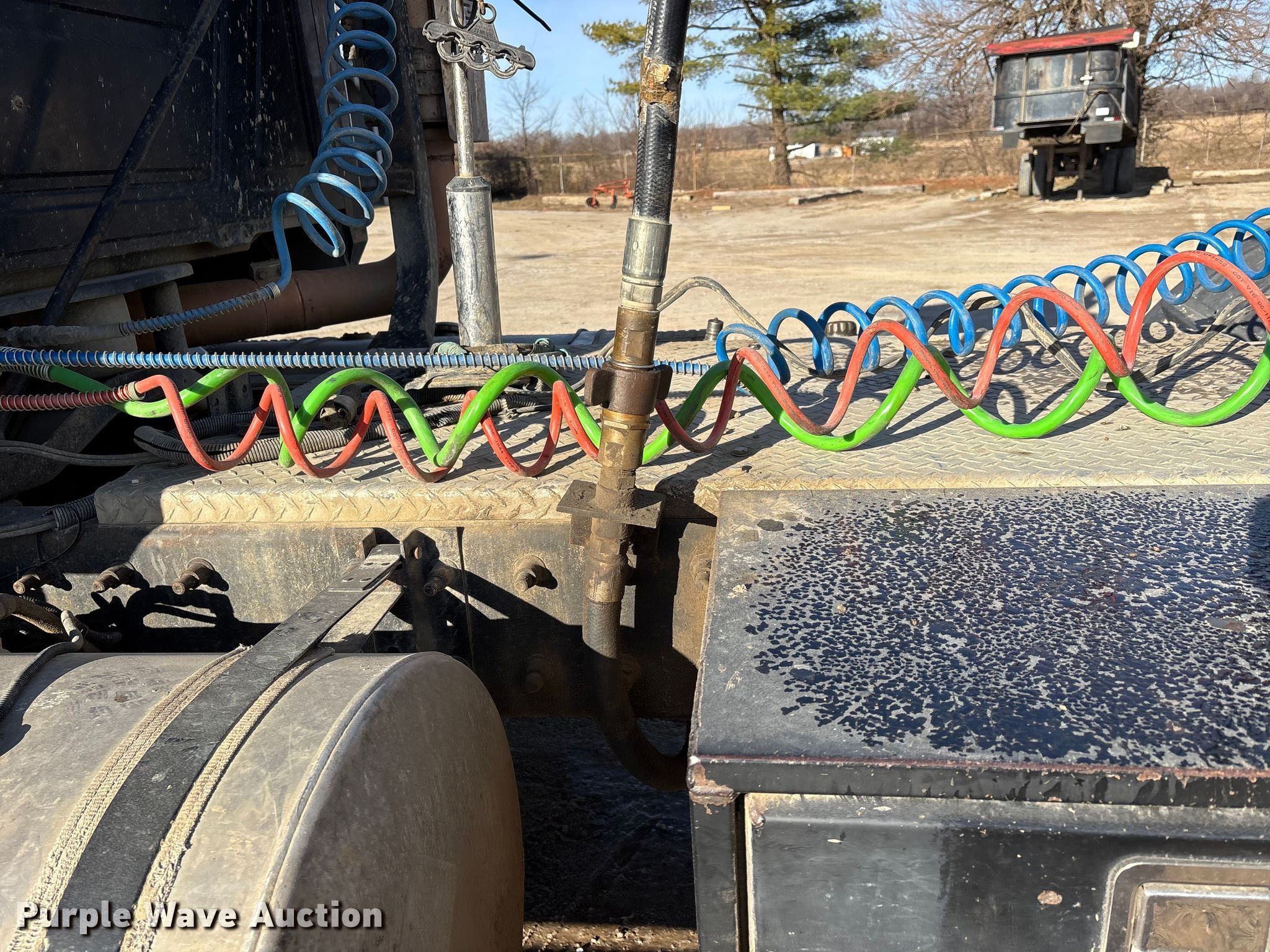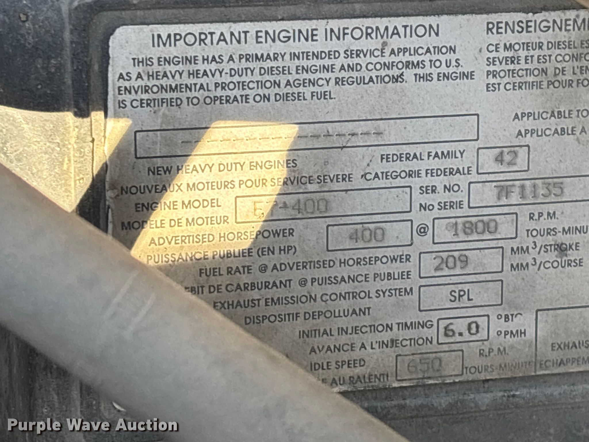 1997 Mack CH613 semi truck. Miles: 95,013 on odometer, Hours: 6,394 on meter, VIN: 1M2AA14Y7VW079450. Engine Mack E7-400, Serial: 7F1135, Displacement: 12.0L, Cylinders: 6, Fuel type: Diesel, HP: 400. Transmission Eaton Fuller, Manual, Speed: 9. Chassis Axles: Tandem, Differential lock: Inter-axle, Suspension: Camelback, Brakes: Air, PTO, Wet kit. Interior Heat, Air ride cab, Brake controller. Features Deck plate: Aluminum, Fifth wheel type: Air operated, Sliding, Fuel tank: Dual. Tires Size 11R24.5, 11R22.5, 295/75R22.5. Notes Trailer not included, Dash warning indicator: Electronic Malfunction, Windshield chipped or cracked, Frame damaged, cracked. Kentucky title. Title has a lien that will be released following the close of the auction. Title distribution may be delayed up to 30 days from verification of funds. HAZEX CONST CO. Henderson, KY 42420