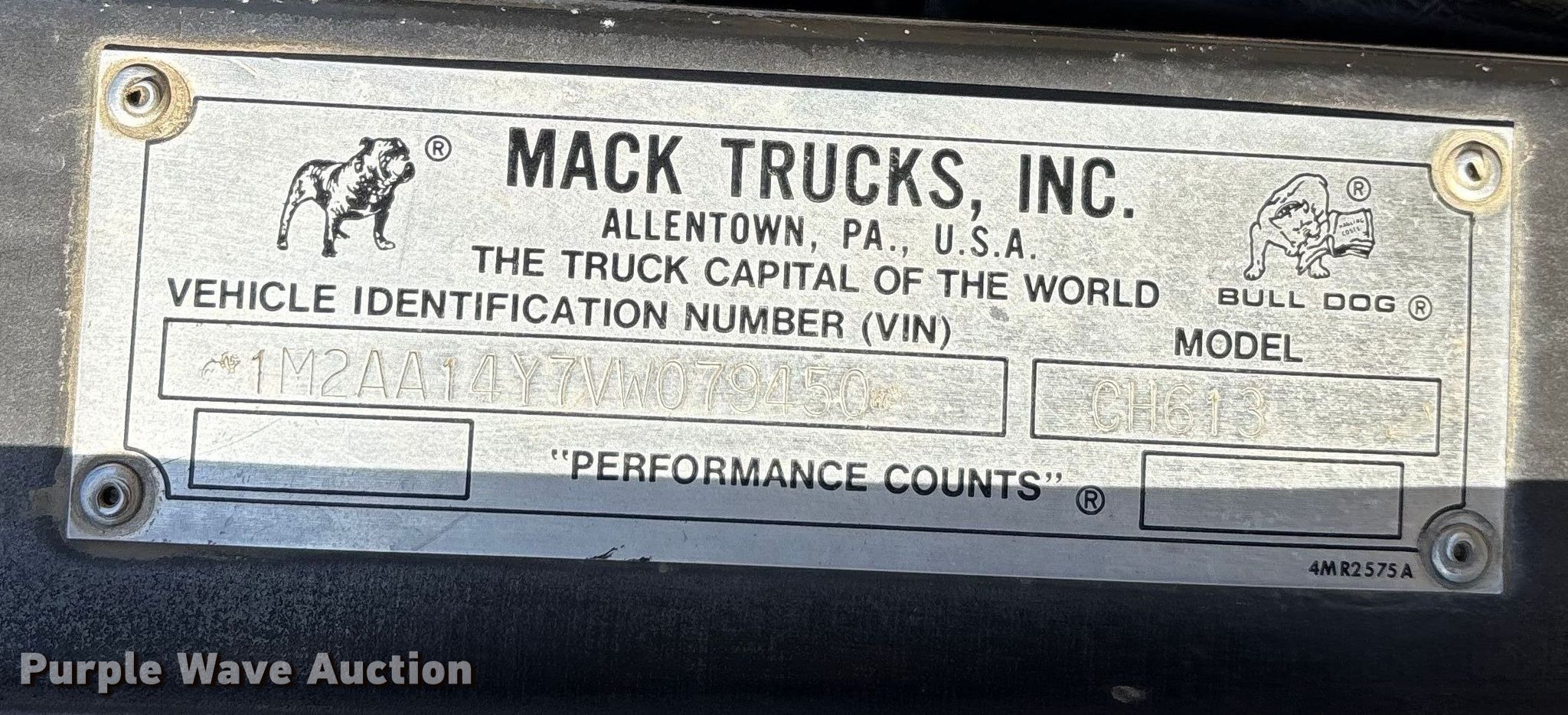 Purple Wave is selling a used Truck Tractor in Kentucky. This item is a 1997 Mack CH613 semi truck with the following: Miles: 95,013 on odometer, Hours: 6,394 on meter, VIN: 1M2AA14Y7VW079450
