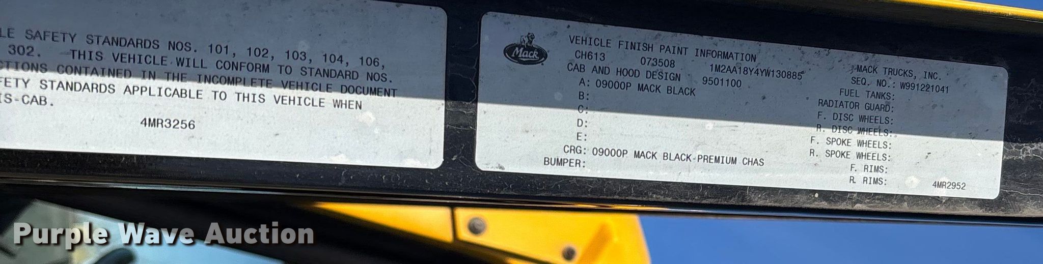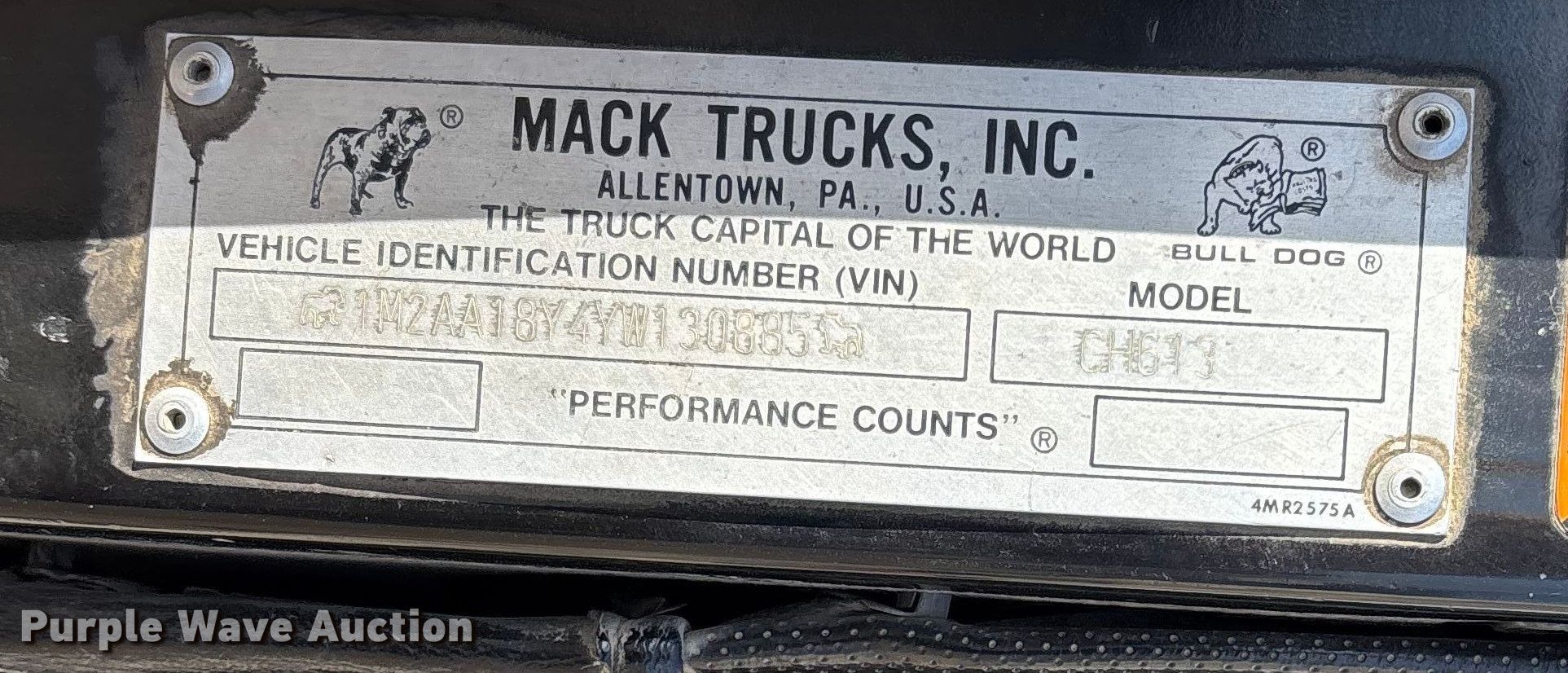 Take a look at this used 2000 Mack CH613 semi truck being sold on March 5th, 2026 in the Thursday March 05 Truck and Trailer Auction made by Mack. Take a look at all of the item information below or take a look at similar auctions for Trucks.