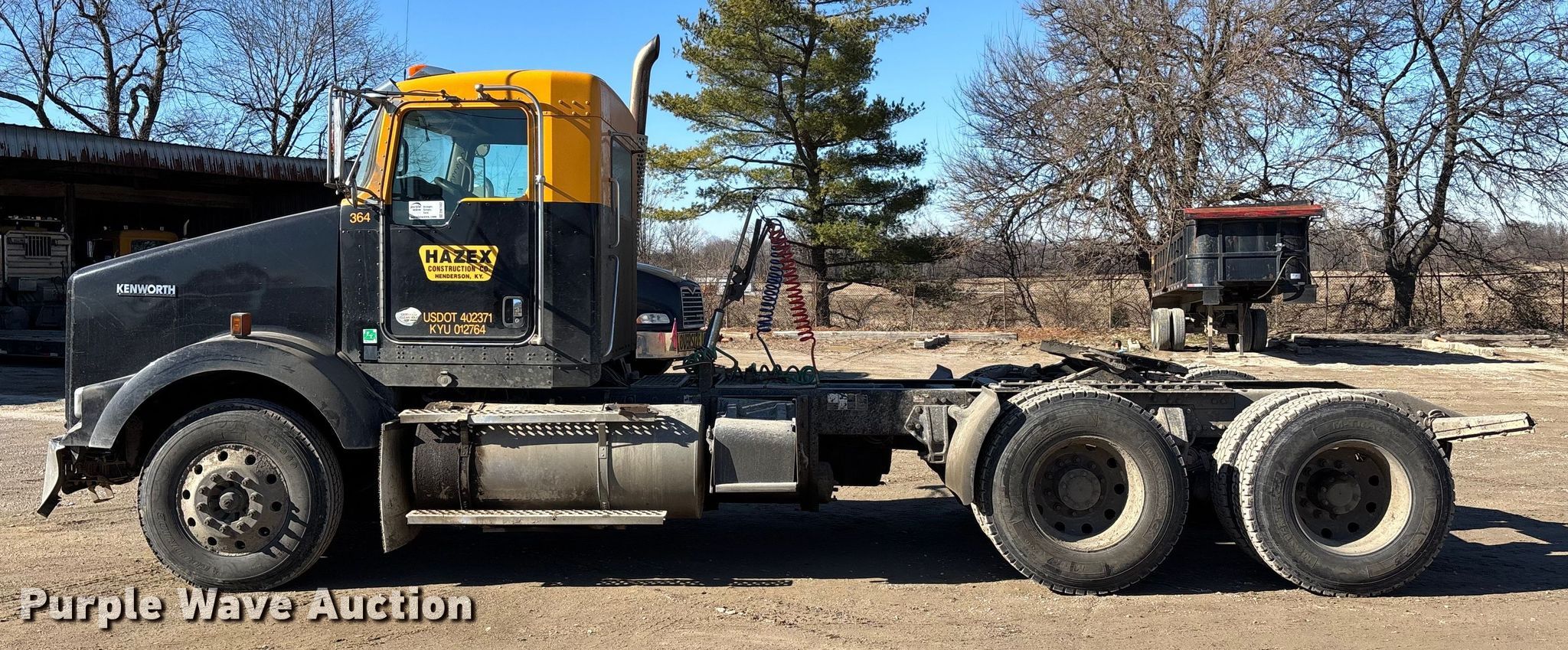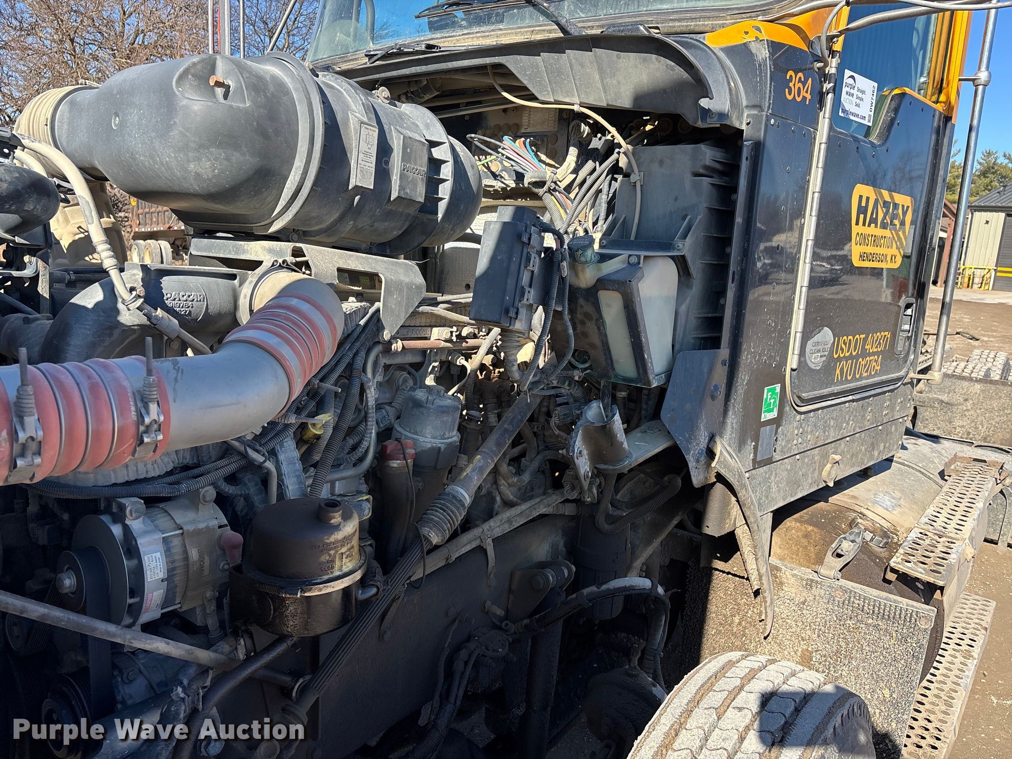 2014 Kenworth T800 semi truck. Miles: 570,747 on odometer, Hours: 2,813 on meter, Miles or hours may vary, unit still in use, VIN: 1XKDDP9X3EJ414927, Unit #: 364. Engine Paccar MX-13, Displacement: 12.9L, Cylinders: 6, Fuel type: Diesel, Engine brake. Transmission Manual, Speed: 10. Chassis Axles: Tandem, Differential lock: Inter-axle, Suspension: Air Dump valves, Brakes: Air, PTO, Wet kit, GVWR: 52,000 lbs FAWR: 12,000 lbs, IAWR: 20,000 lbs, RAWR: 20,000 lbs. Interior AC, Heat, Heated mirrors, Power windows, Power locks, Cruise control, Air ride cab. Features Deck plate: Aluminum, Fifth wheel type: Air operated, Sliding, Fuel tank: Single. Tires Size: 11R22.5. Notes Engine replaced at 281,863 miles, Windshield chipped or cracked. View repairs. Kentucky title. Title has a lien that will be released following the close of the auction. Title distribution may be delayed up to 30 days from verification of funds. HAZEX CONST CO. Henderson, KY 42420