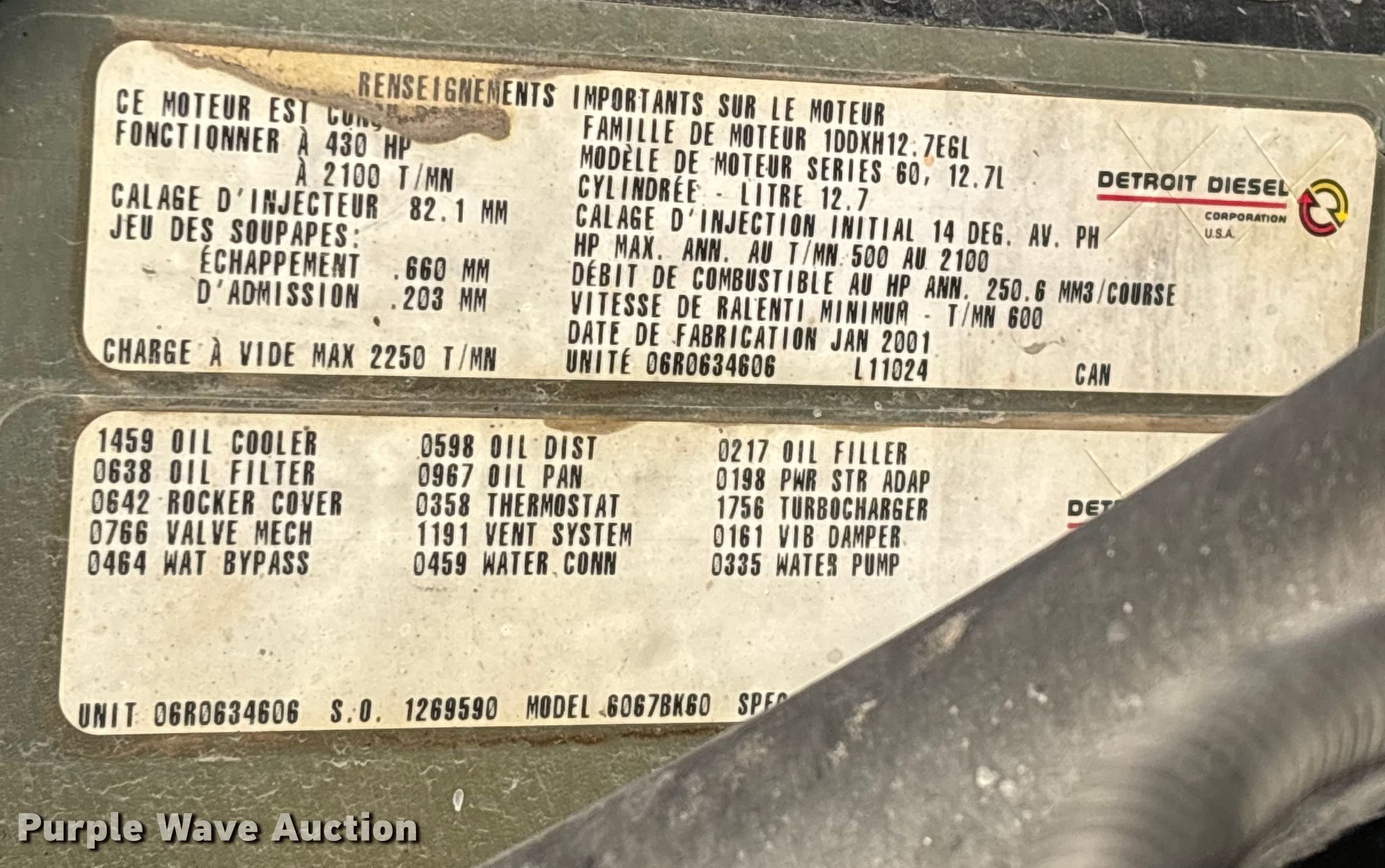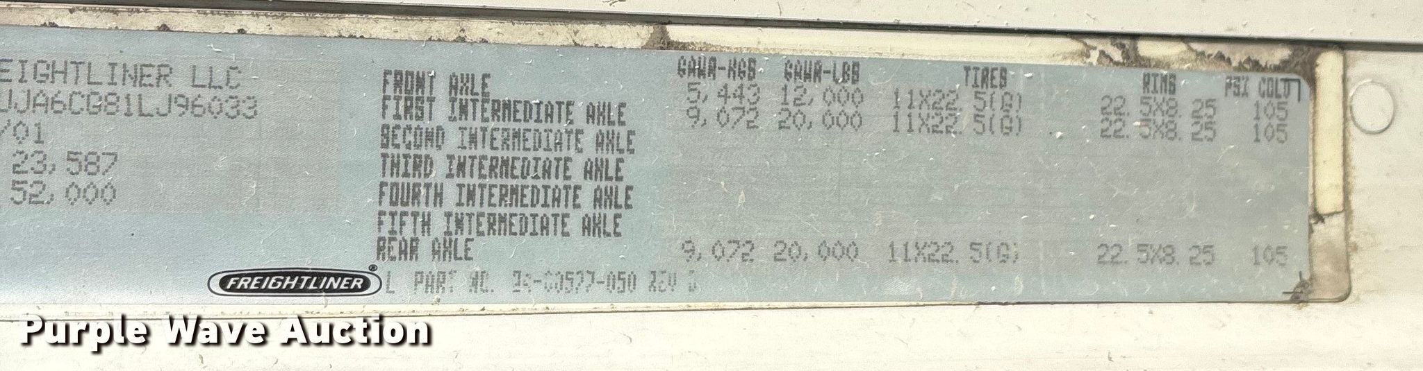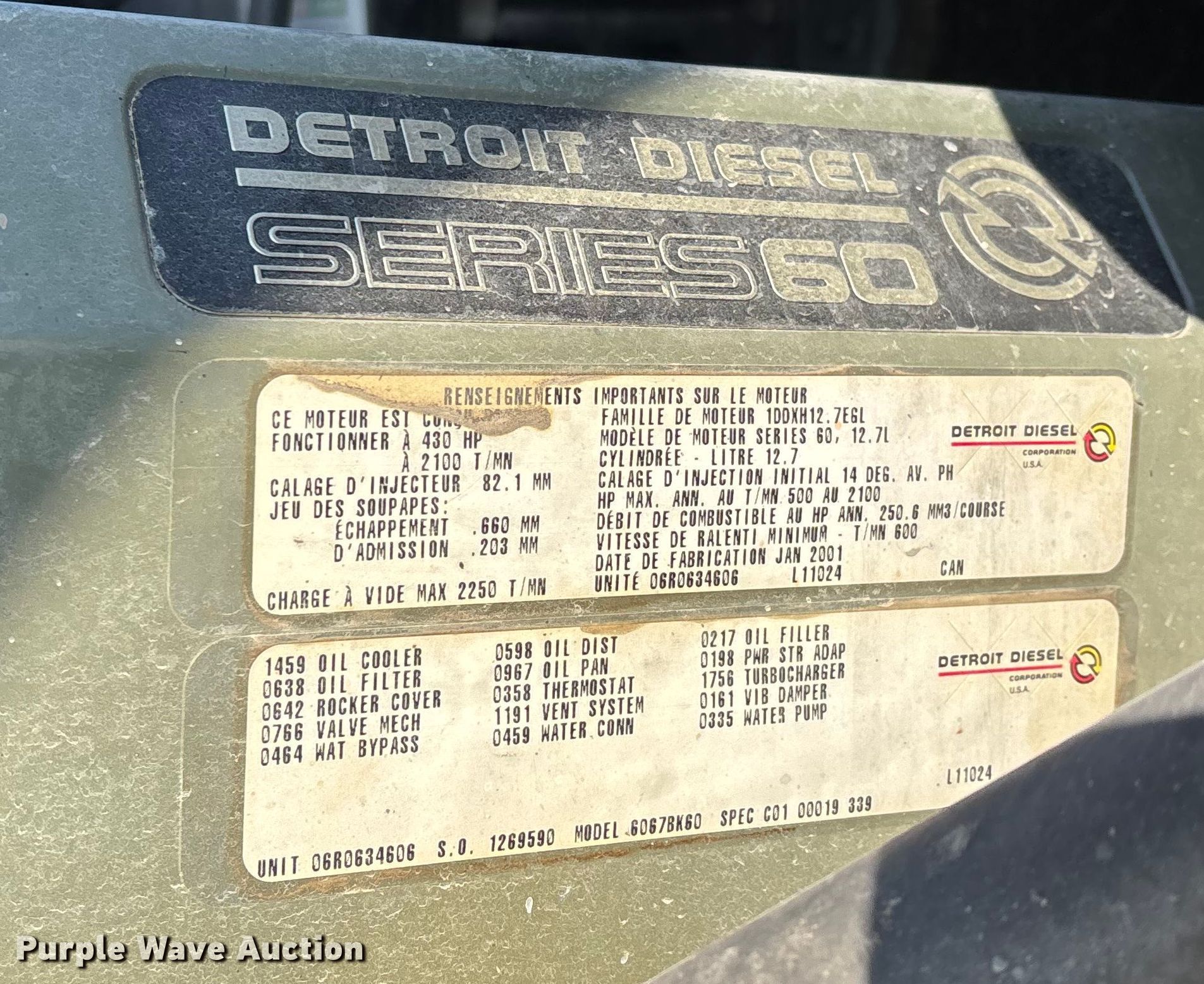 2001 Freightliner Columbia semi truck. Miles: 296,106 on odometer, Hours: 9,157 on meter, VIN: 1FUJA6CG81LJ96033. Engine Detroit Diesel Series 60, Displacement: 12.7L, Cylinders: 6, Fuel type: Diesel, Engine brake. Transmission Manual, Speed: 10. Chassis Axles: Tandem, Differential lock: Inter-axle, Suspension: Air Dump valves, Brakes: Air, GVWR: 52,000 lbs FAWR: 12,000 lbs, IAWR: 20,000 lbs, RAWR: 20,000 lbs. Interior AC, Heat, Cruise control, Air ride cab. Features Deck plate: Aluminum, Fifth wheel type: Air operated, Sliding, Fuel tank: Dual. Tires Size: 295/75R22.5. Notes Windshield chipped or cracked. Minnesota title. Title distribution may be delayed up to 30 days from verification of funds. Citizens Electric. Perryville, MO 63775