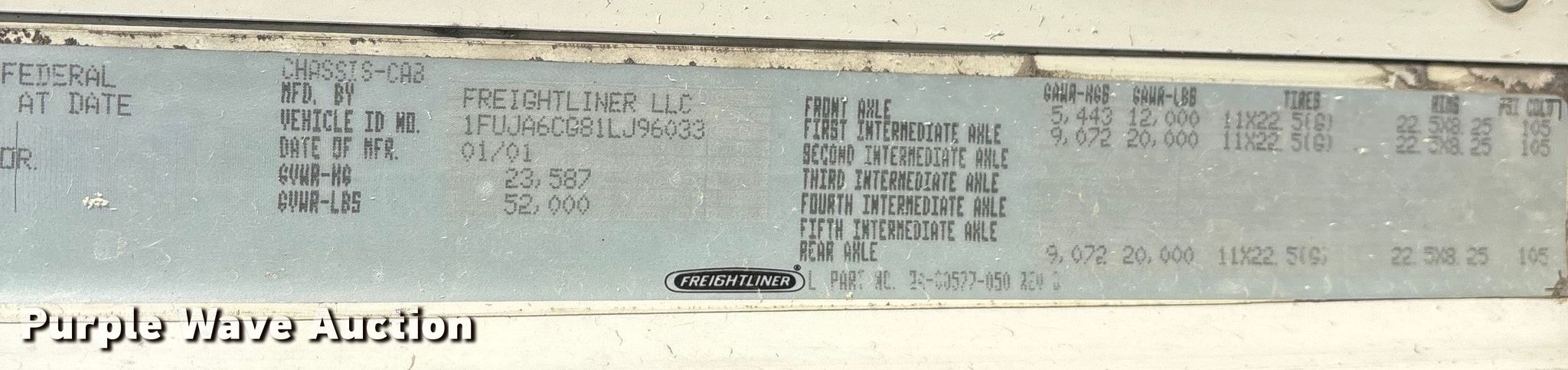 Purple Wave is selling a used Truck Tractor in Missouri. This item is a 2001 Freightliner Columbia semi truck with the following: Miles: 296,106 on odometer, Hours: 9,157 on meter, VIN: 1FUJA6CG81LJ96033