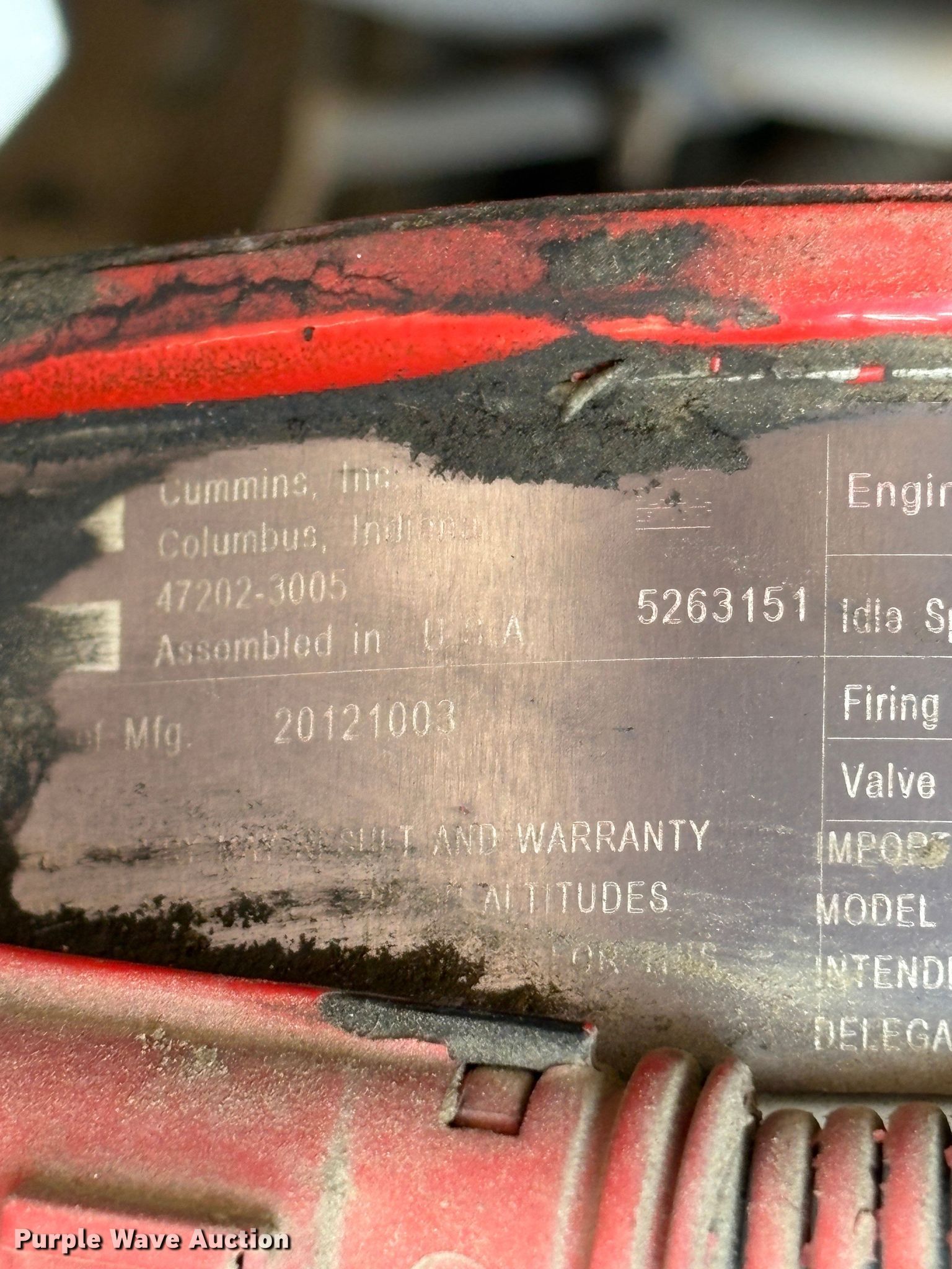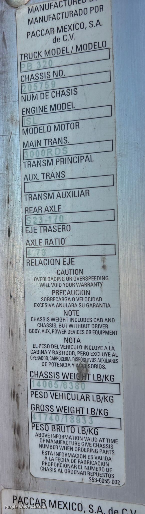 2013 Peterbilt 320 flatbed truck. Miles: Unknown, VIN: 3BPZH58X2DF205759. Engine Cummins ISL, Serial: E64R4YAKD04B494643, Displacement: 8.9L, Cylinders: 6, Fuel type: Diesel, HP: 370. Transmission Allison 3000RDS, Automatic. Chassis Axles: Single, Suspension: Air, Brakes: Air, GVWR: 41,740 lbs. Interior AC, Heat, Heated mirrors, Power windows, Power locks, Cruise control, Auxiliary controls, Brake controller. Features Bed Flatbed, Length: 20' 3", Width: 8', Vanair air compressor Fuel type: diesel, Arrow board, Cummins engine Fuel type: diesel. Tires Front: 385/65R22.5, Rear: 11R22.5. Notes Dead battery, Non-operational unit. Buyer responsible for all aspects of state emissions compliance.. California title. Mileage has not been verified. Exempt will be written in the odometer disclosure on the title. Chrisp Company. Fresno, CA 93725