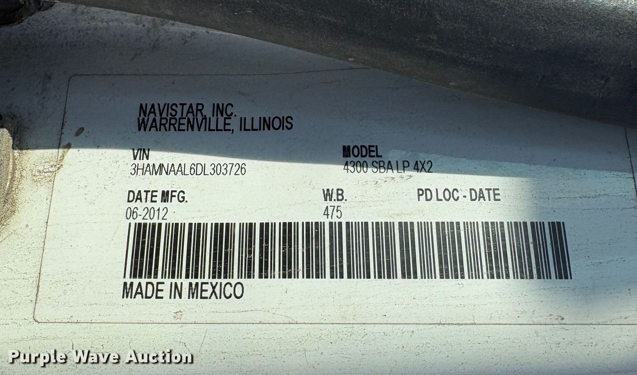Purple Wave is selling a used Truck Chassis in California. This item is a 2013 International 4300 truck cab and chassis with the following: Miles: Unknown, VIN: 3HAMNAAL6DL303726