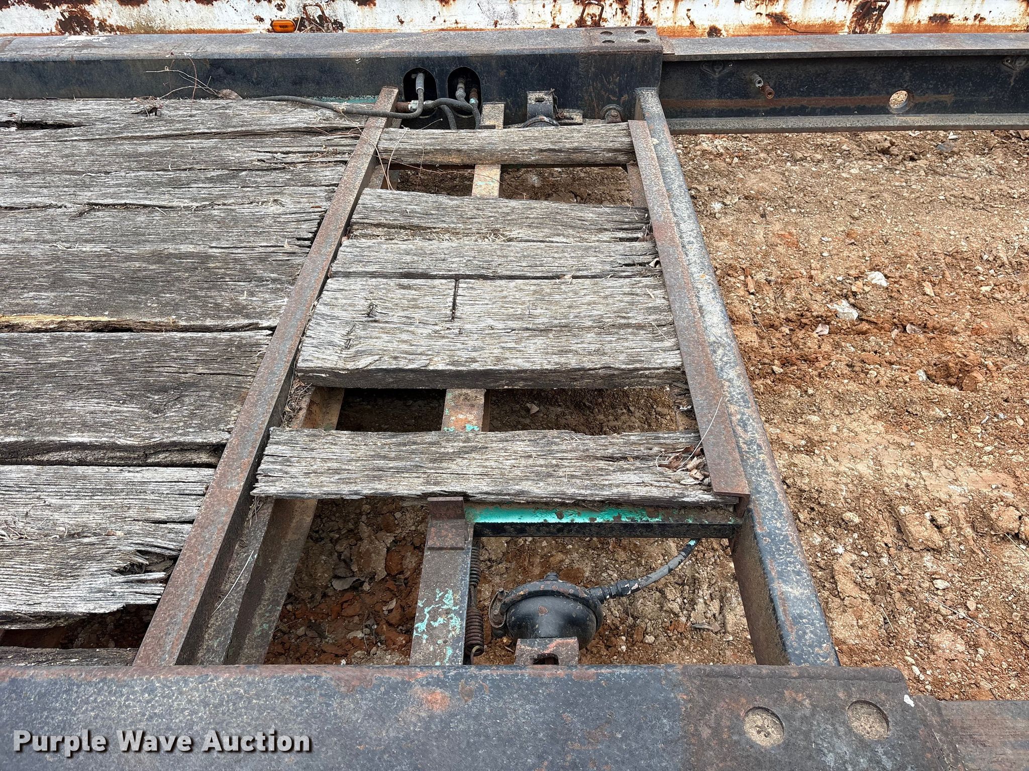 1976 Great Dane 5717GE extendable double drop deck equipment trailer. VIN: 315139, Unit #: 715. Dimensions Overall Length: 42', Width: 8', Deck Length: 27', Width: 7' 9", Top deck length: 10', Rear deck length: 5', Deck height: 17". Features Deck type: Wood. Chassis Landing gear: Dual, Suspension: Air, Brakes: Air. Tires Steel wheels, Size: 275/70R22.5. Notes Deck boards damaged. Oklahoma title. Title distribution may be delayed up to 30 days from verification of funds. CTC Transportation. 3540 Euless South Main Street. Euless, TX 76040
