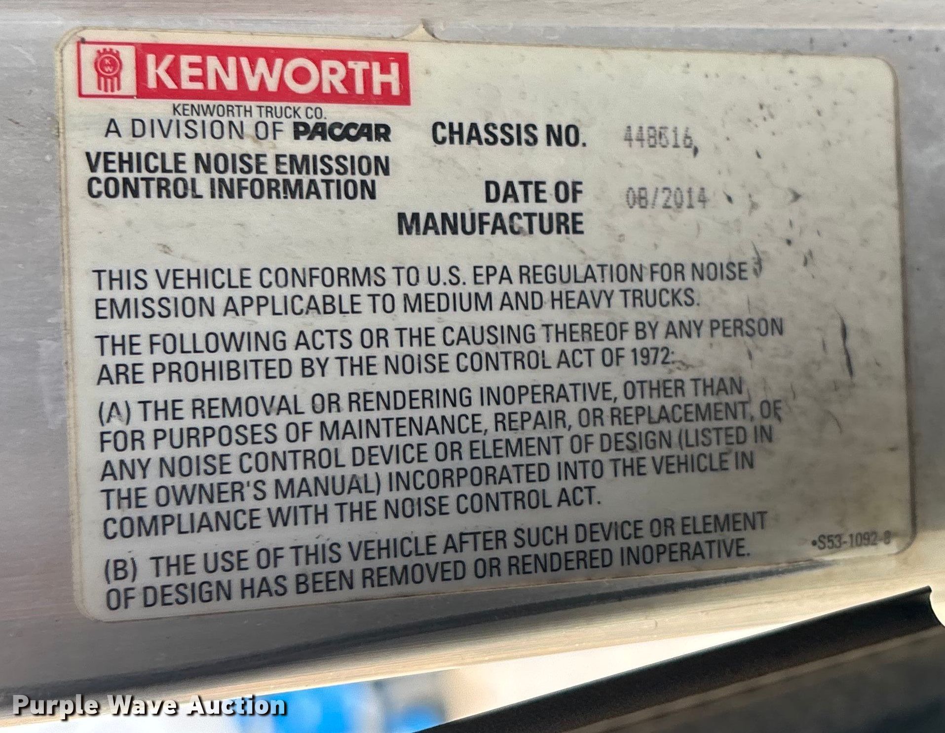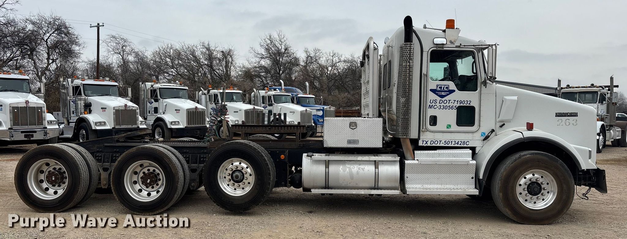 Purple Wave is selling a used Truck Tractor in Texas. This item is a 2015 Kenworth T800 semi truck with the following: Miles: 331,696 on odometer, Hours: 13,039 on meter, Miles or hours may vary, unit still in use, VIN: 1XKDP4TX1FJ448316, Unit #: 263