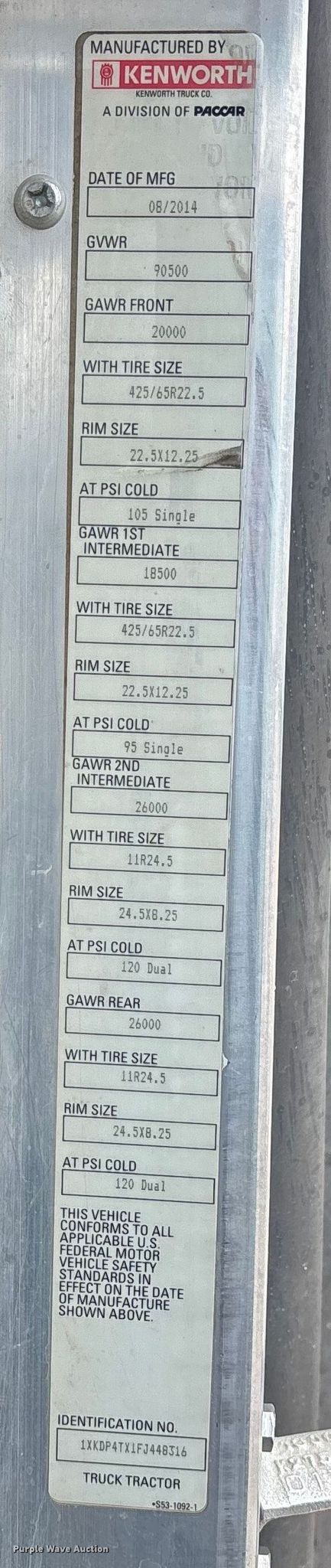 - VIN: 1XKDP4TX1FJ448316