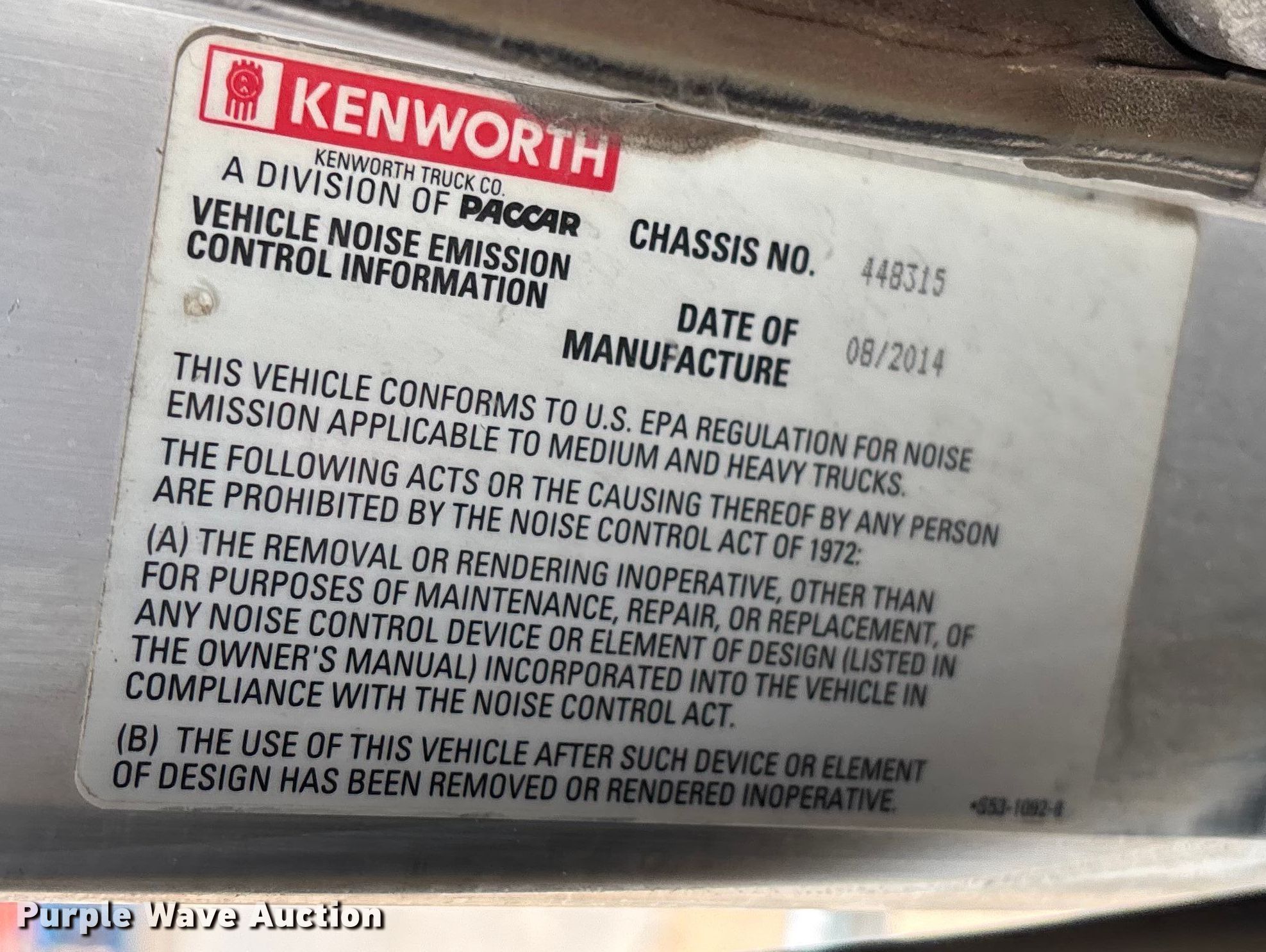 Purple Wave is selling a used Truck Tractor in Texas. This item is a 2015 Kenworth T800 semi truck with the following: Miles: 394,420 on odometer, Hours: 15,995 on meter, VIN: 1XKDP4TXXFJ448315, Unit #: 262
