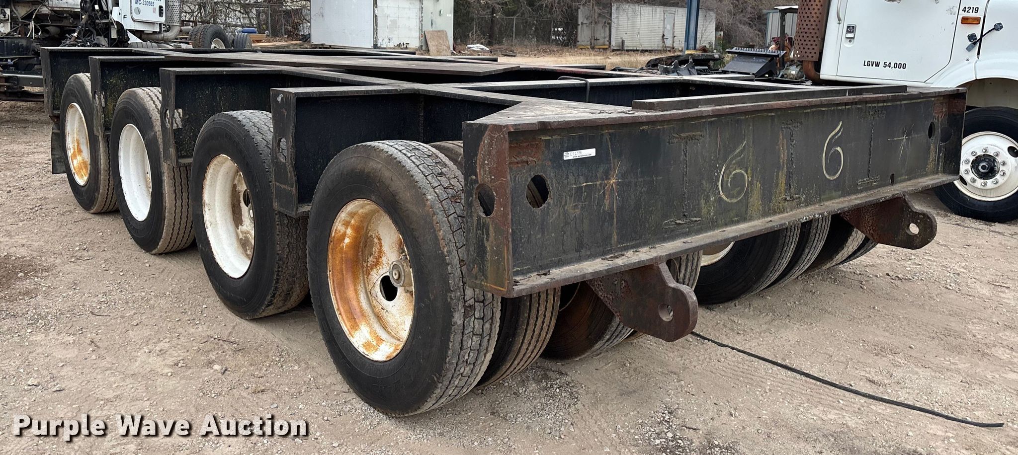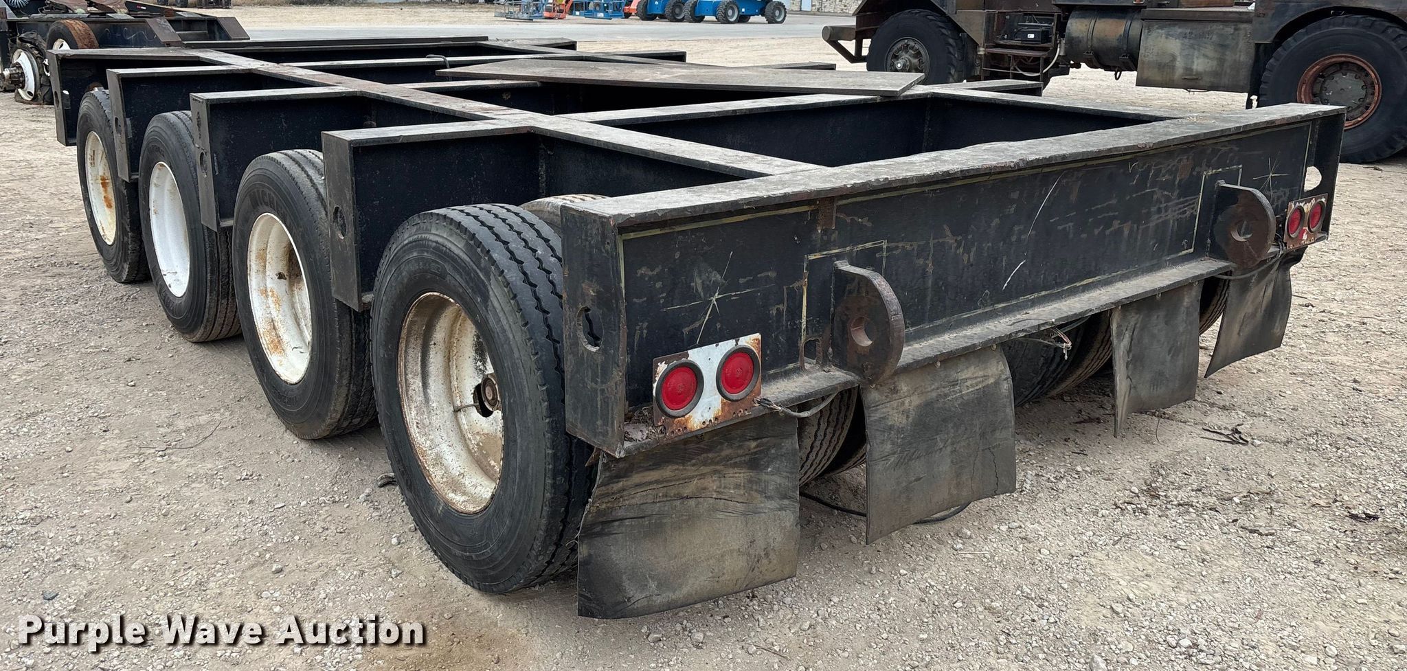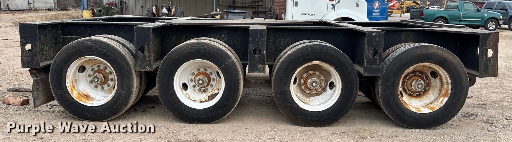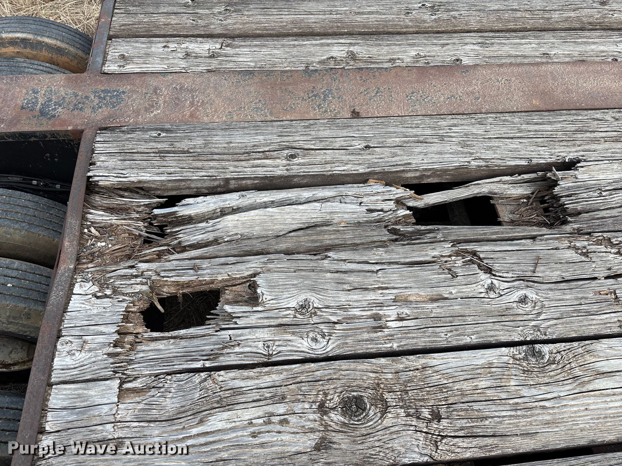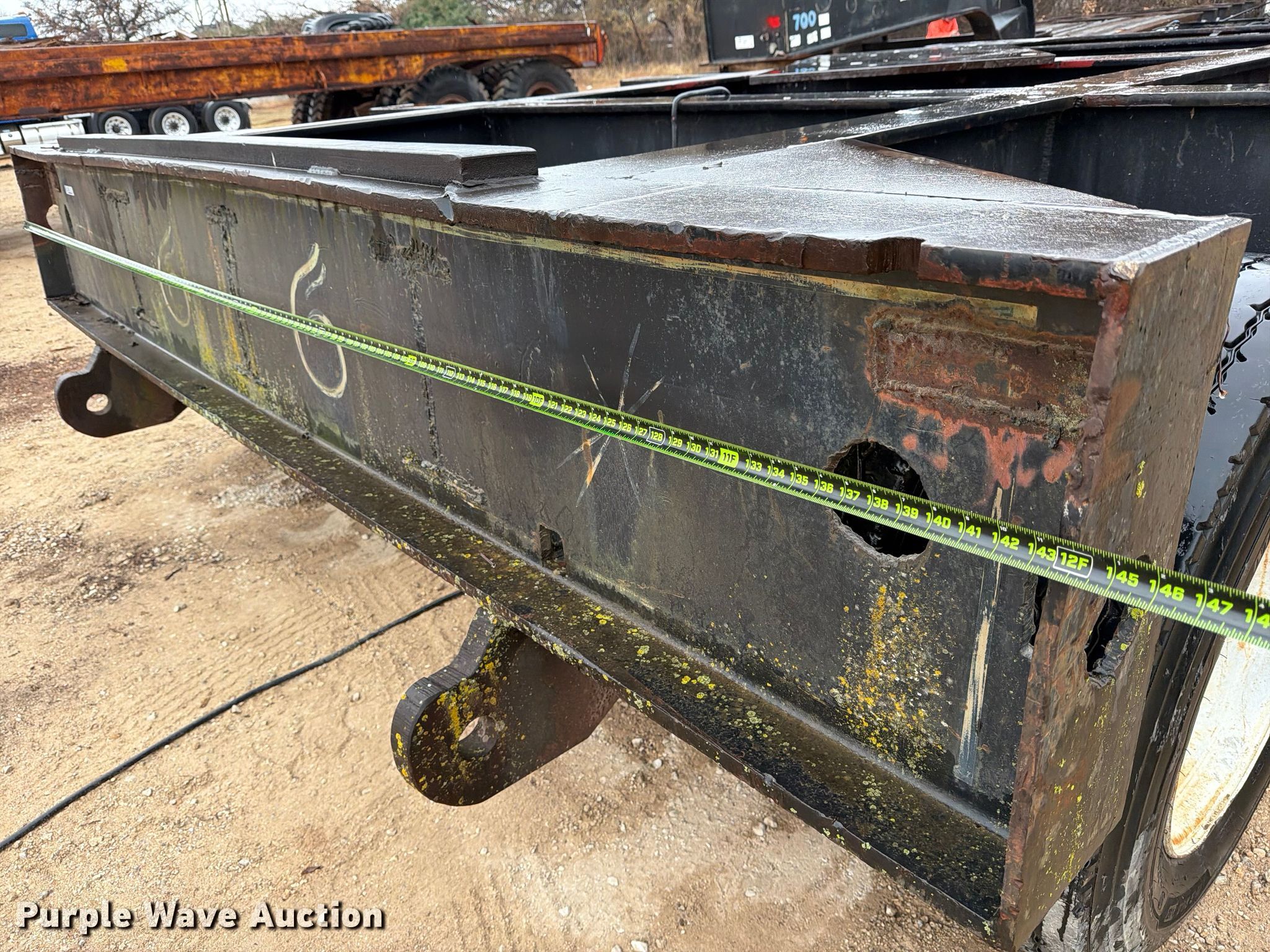 1976 Talbert flatbed trailer. VIN: 4708TALBERT. Dimensions Overall Length: 54', Width: 144", Deck Length: 36' 5", Width: 144", Rear deck length: 19', Deck height: 3' 4". Features Deck type: Steel, Wood, Board size: 252". Chassis Suspension: Walking beam, Brakes: Air, Axles: Quad. Tires Steel wheels, Size: 10.00R15. Notes Tag axle group, Size: 11R24.5, Deck boards damaged. Oklahoma title. Title distribution may be delayed up to 30 days from verification of funds. CTC Transportation. 3540 Euless South Main Street. Euless, TX 76040