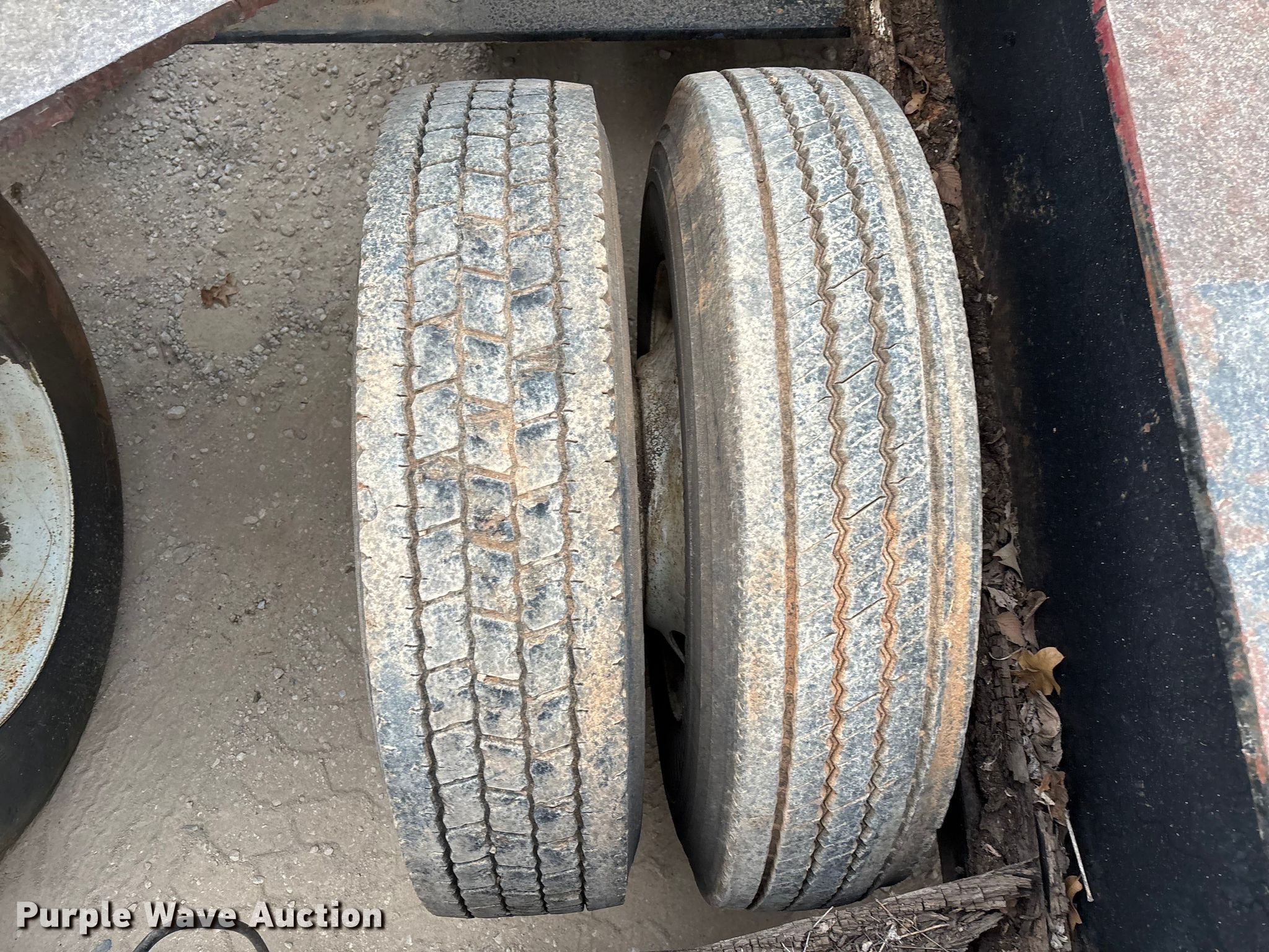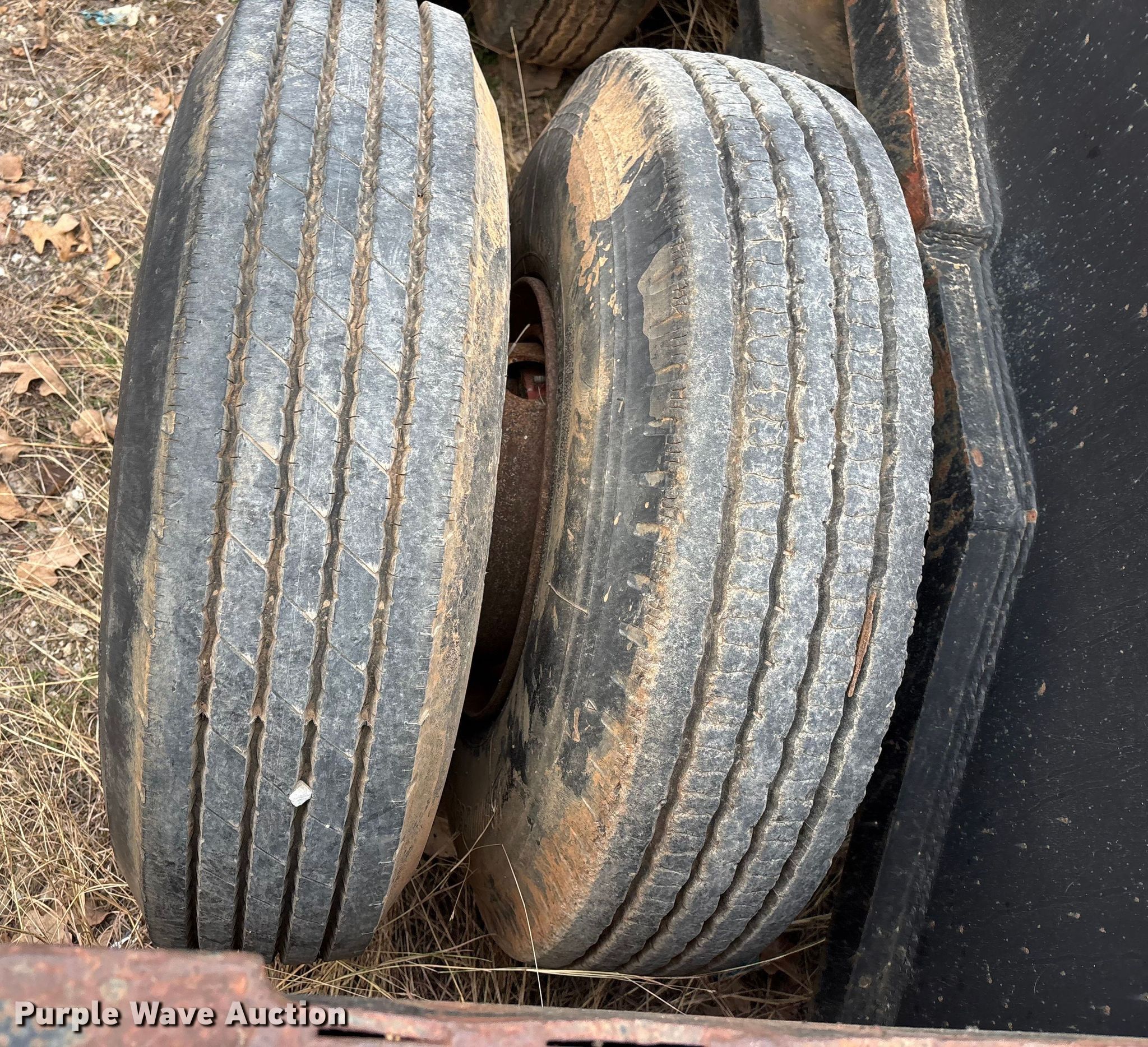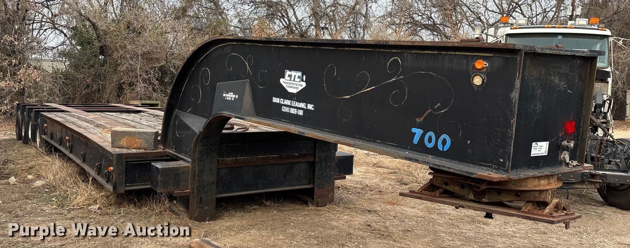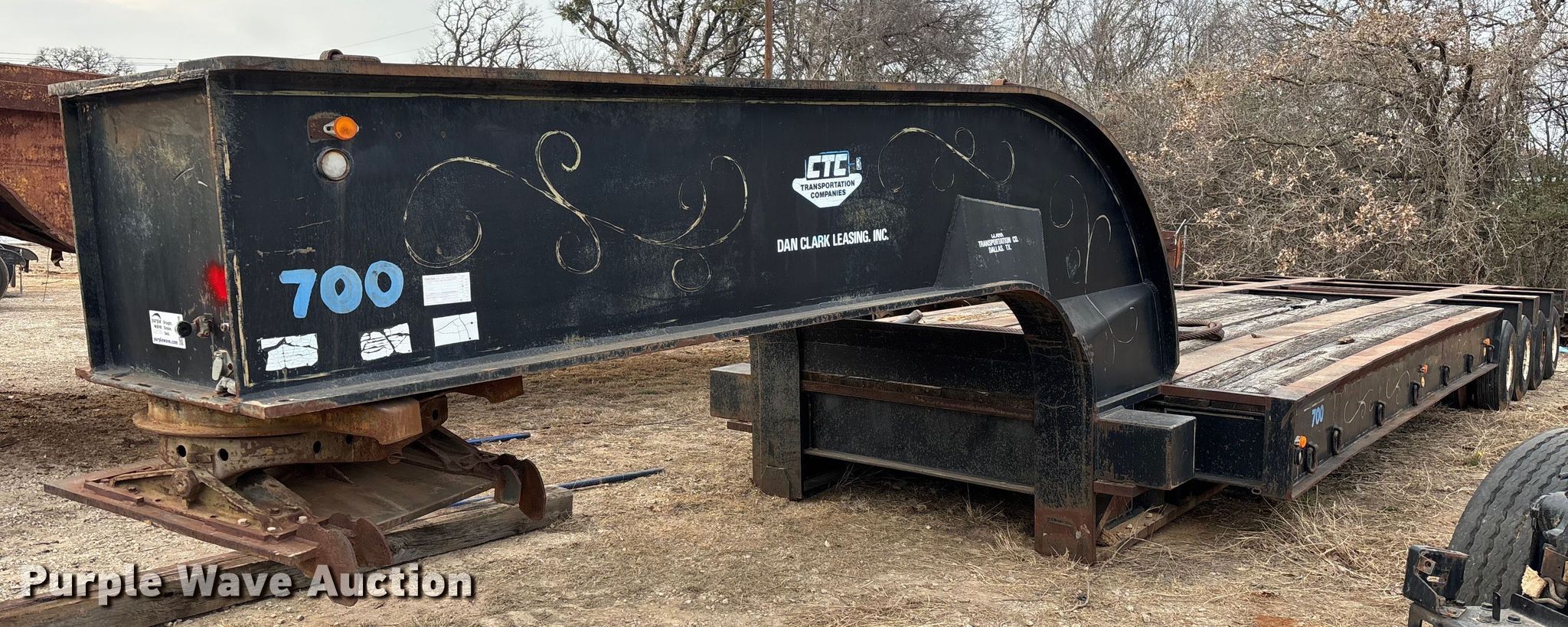 1976 Talbert flatbed trailer. VIN: 4708TALBERT. Dimensions Overall Length: 54', Width: 144", Deck Length: 36' 5", Width: 144", Rear deck length: 19', Deck height: 3' 4". Features Deck type: Steel, Wood, Board size: 252". Chassis Suspension: Walking beam, Brakes: Air, Axles: Quad. Tires Steel wheels, Size: 10.00R15. Notes Tag axle group, Size: 11R24.5, Deck boards damaged. Oklahoma title. Title distribution may be delayed up to 30 days from verification of funds. CTC Transportation. 3540 Euless South Main Street. Euless, TX 76040