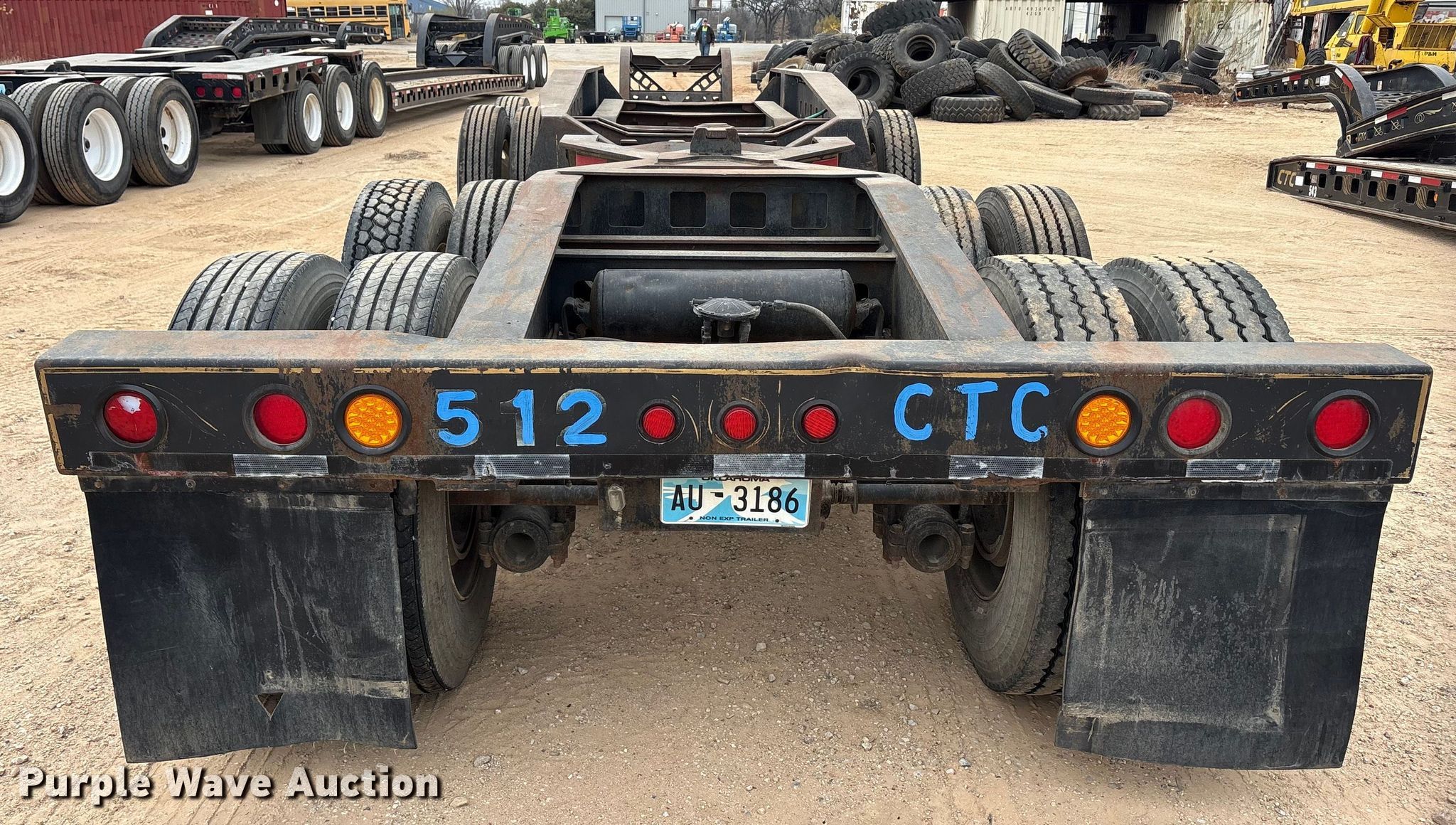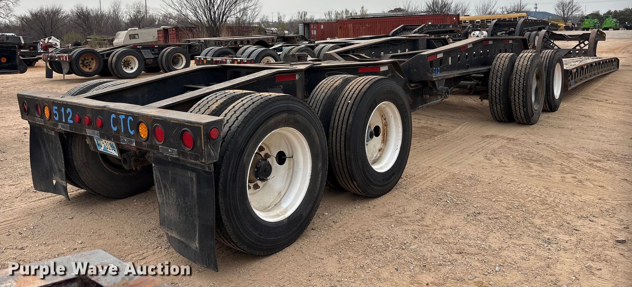 1883 Siebert 80T9A16WR lowboy equipment trailer. VIN: CA83ST11279, Unit #: 512. Dimensions Overall Length: 63' 5", Width: 10', Deck Length: 24', Width: 10', Tail length: 16'. Features Deck type: Wood, Neck type: Detachable. Chassis Suspension: Walking beam, Brakes: Air, Axles: Tandem. Tires Steel wheels, Size: 11R24.5. Siebert stinger axle. Chassis Brakes: Air, Axles: Tandem. Tires Size: 11R24.5. Trailer - Oklahoma title. Stinger - transfer of ownership documentation will be a bill of sale.. Title distribution may be delayed up to 30 days from verification of funds. CTC Transportation. 3540 Euless South Main Street. Euless, TX 76040