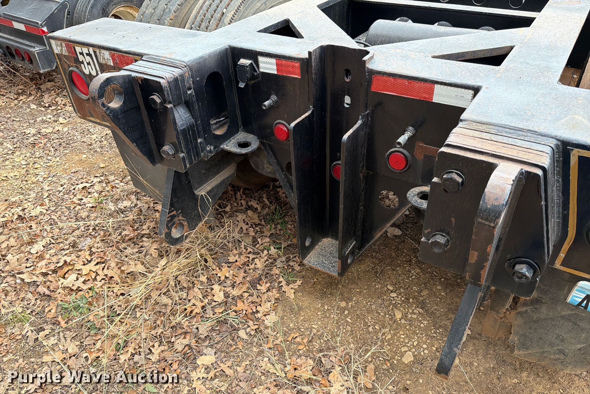 Cozad lowboy equipment trailer. VIN: CC81064, Unit #: 551. Dimensions Overall Length: 51' 5", Width: 99", Deck Length: 25' 8", Width: 96", Rear deck length: 16' 7". Features Deck type: Steel, Wood, Neck type: Detachable. Chassis Suspension: Air, Brakes: Air, Axles: Triple Detachable tag. Tires Steel wheels, Size: 11R24.5. Peerless stinger axle Dimensions Overall Length: 14'. Chassis Suspension: Air, Brakes: Air, Axles: Tandem, GVWR: 21,500 lbs. Tires Size: 285/75R24.5. Trailer - Oklahoma title. Stinger - transfer of ownership documentation will be a bill of sale. Title distribution may be delayed up to 30 days from verification of funds. CTC Transportation. 3540 Euless South Main Street. Euless, TX 76040