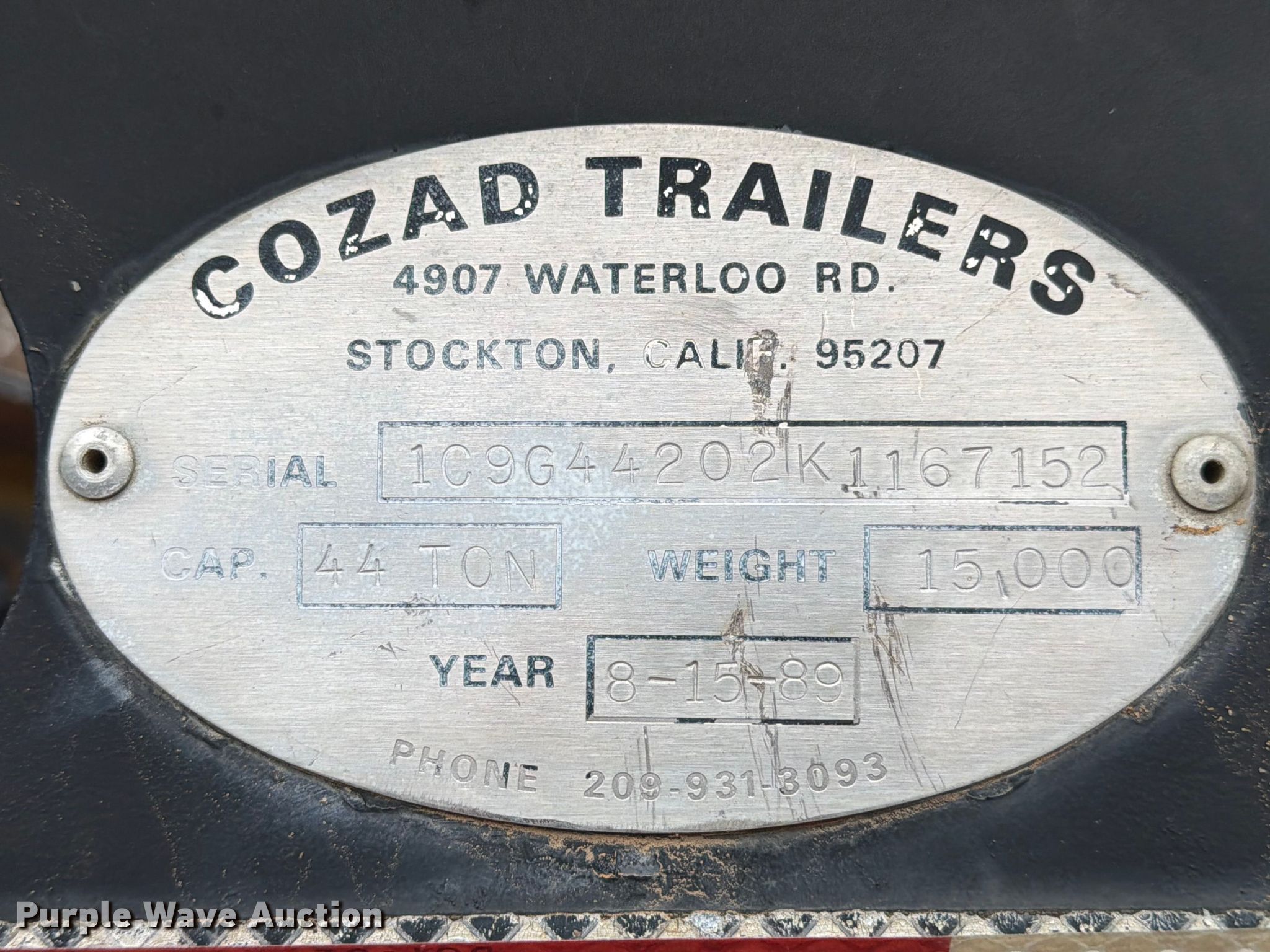 Purple Wave is selling a used Equip. Trailer in Texas. This item is a 1989 Cozad lowboy equipment trailer with the following: VIN: 1C9G44202K1167152, Unit #: 539