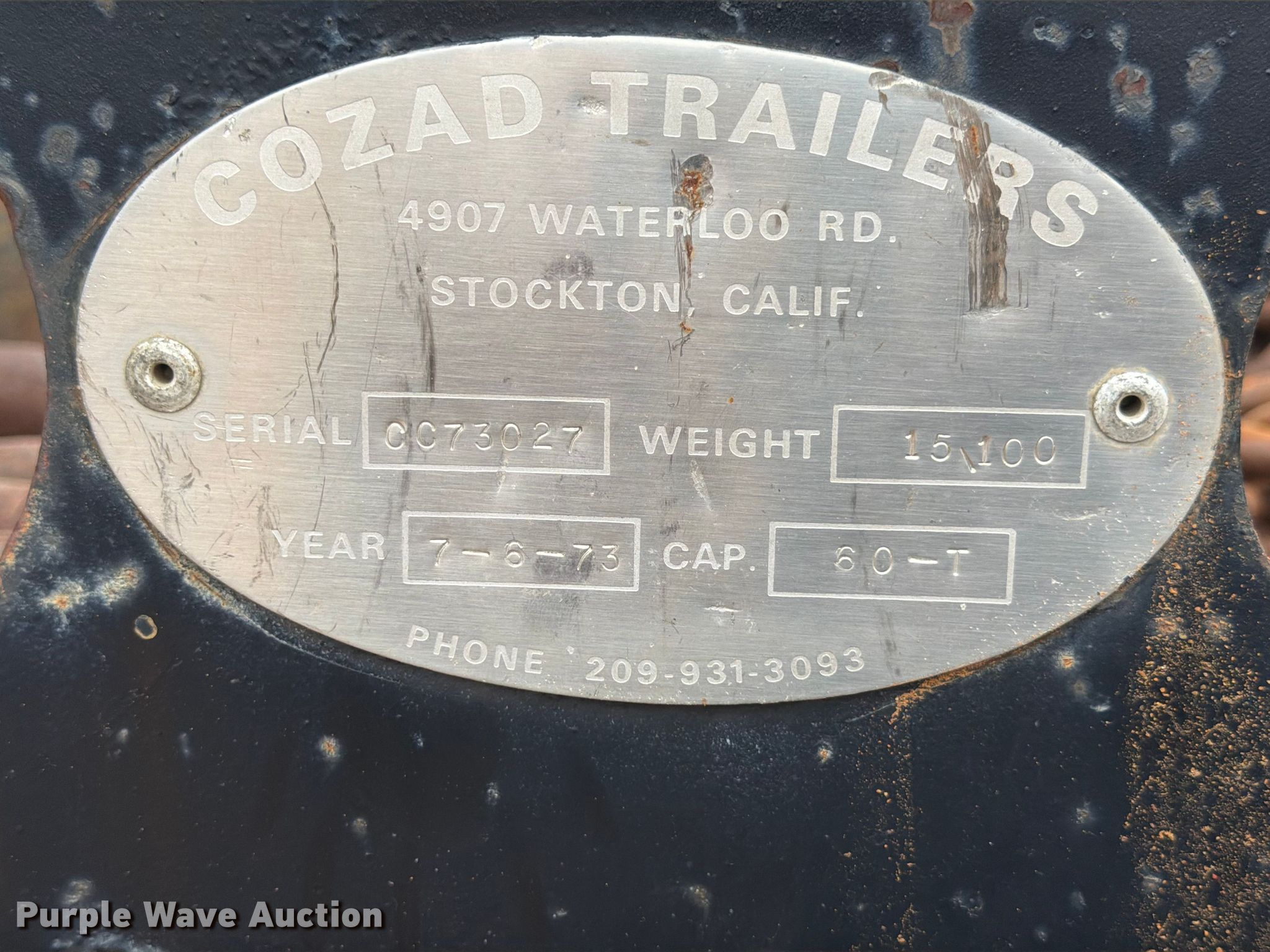 Purple Wave is selling a used Equip. Trailer in Texas. This item is a 1973 Cozad lowboy equipment trailer with the following: VIN: CC73027, Unit #: 549